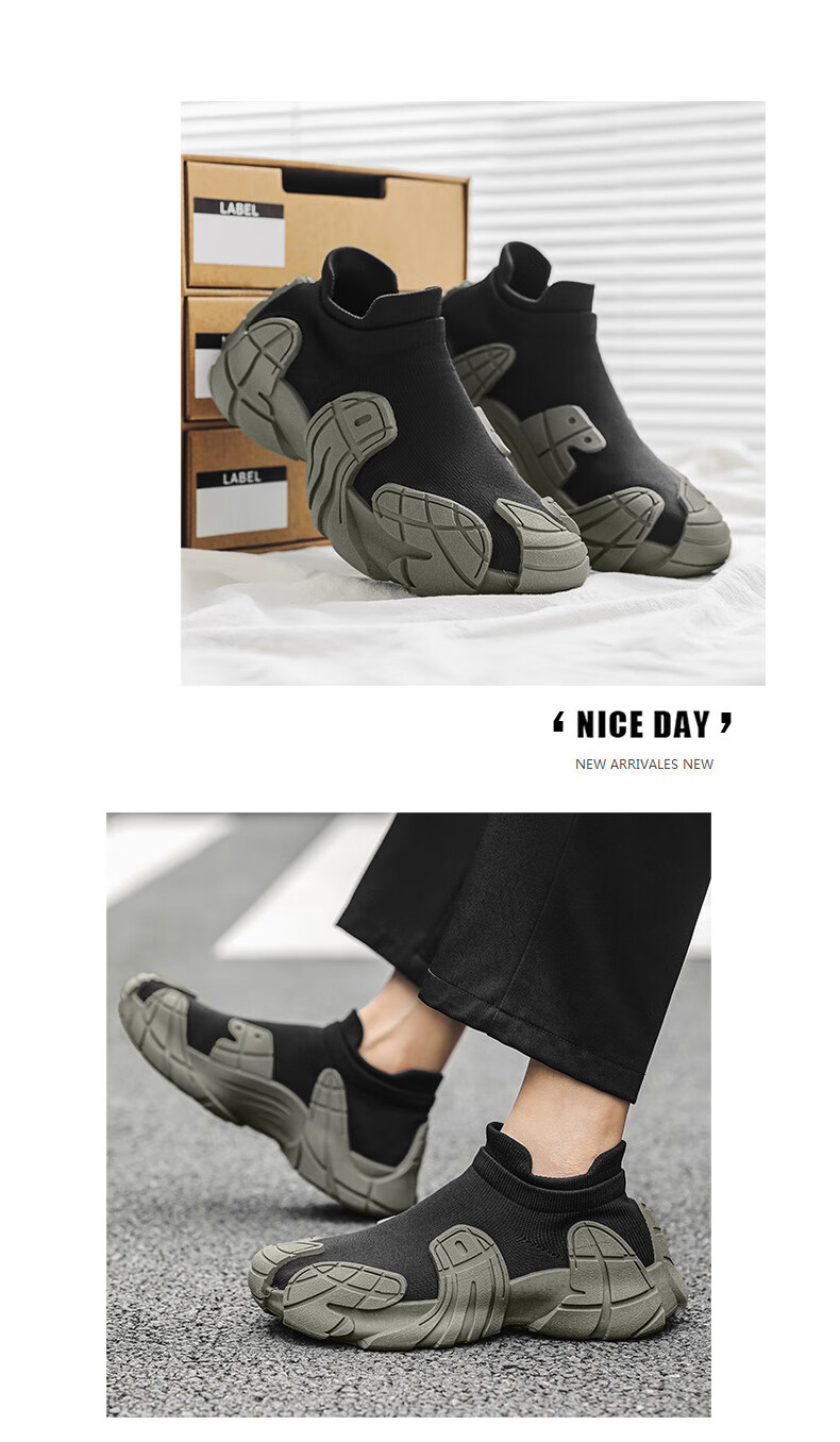 Xianzheyi 2024 nouveau style d'été respirant 45 chaussures pour hommes de grande taille mouche tissé maille chaussettes paresseuses à enfiler chaussures à semelles épaisses chaussures de papa noir boucle élastique 9909 tout noir 41