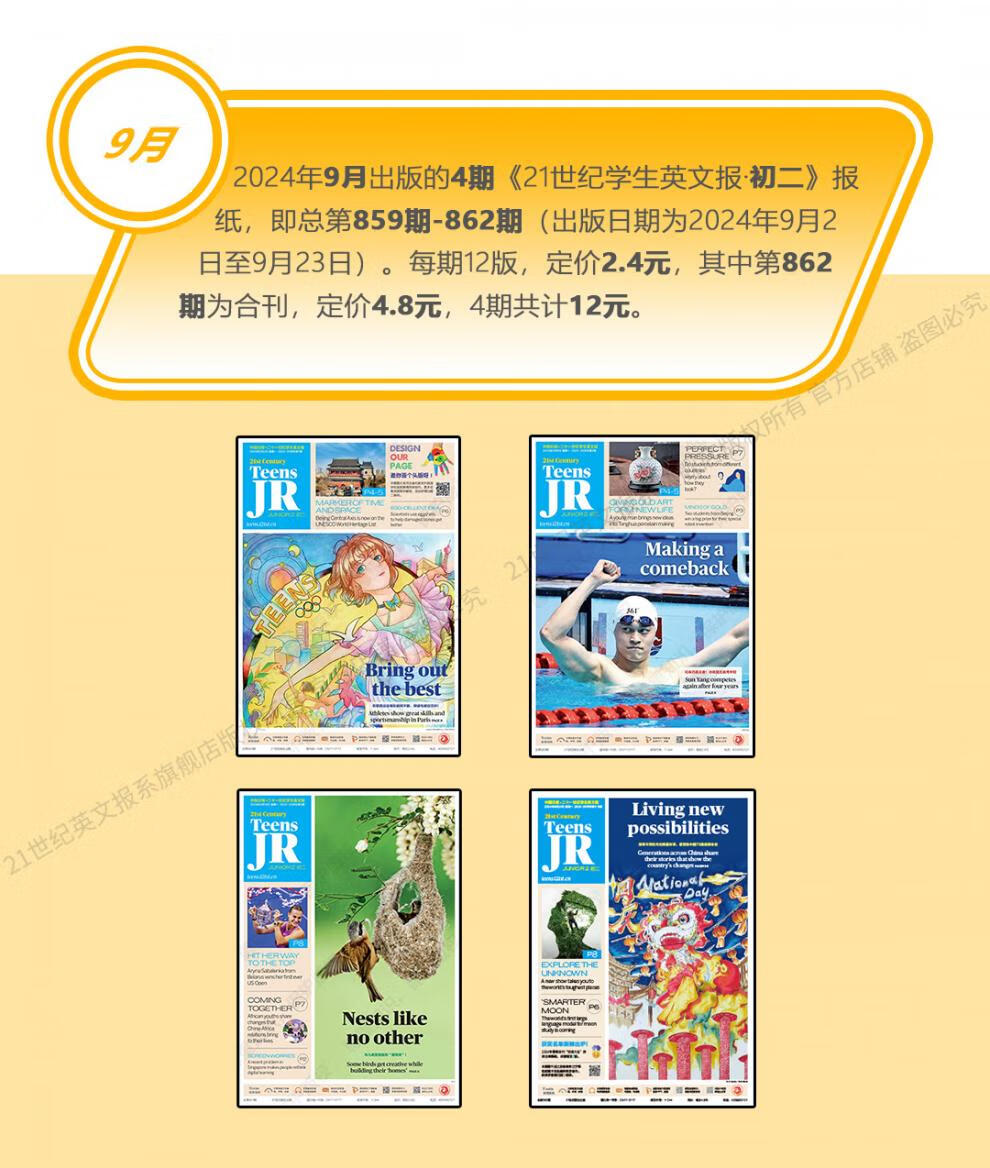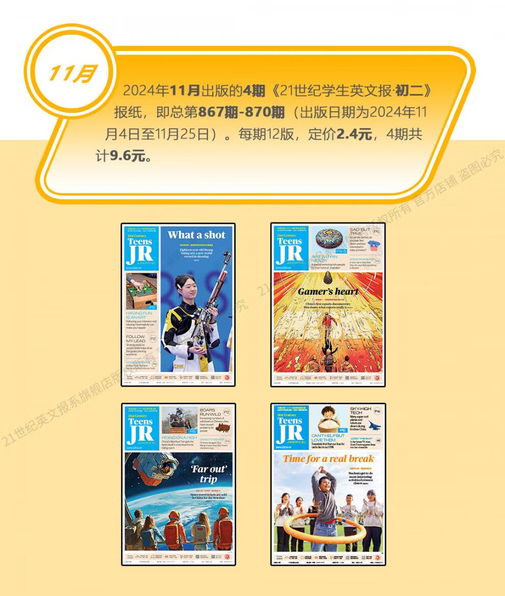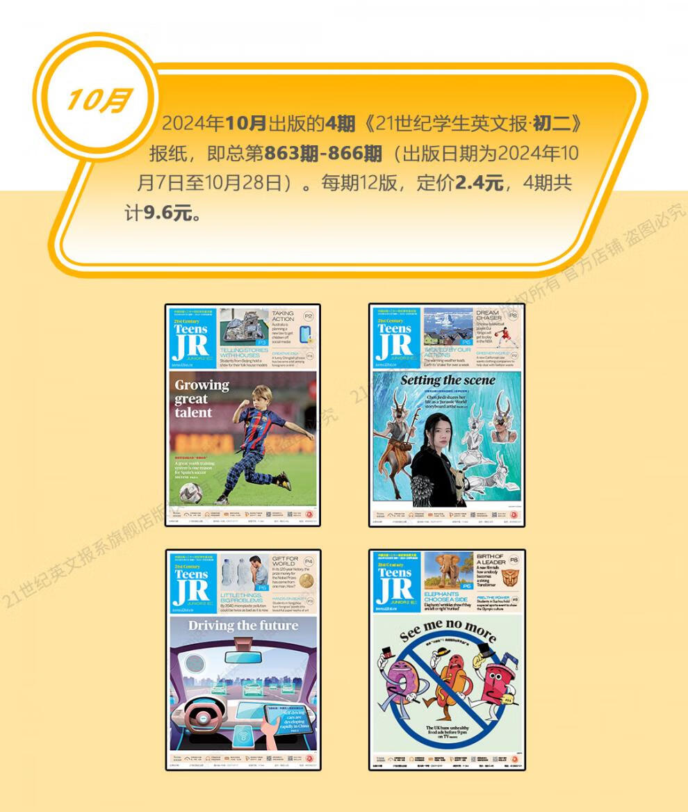 【官方正版】21《二十一世纪学生英文报 》初二版 英语阅读•现货直发-月份自选 2024年10月(总第863至866期)