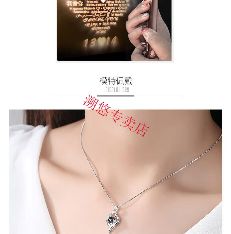 溯悠投影银项链女100种语言定制吊坠锁骨链老婆情人节生日礼物送女友 D695投影彩图版(模块+彩图)
