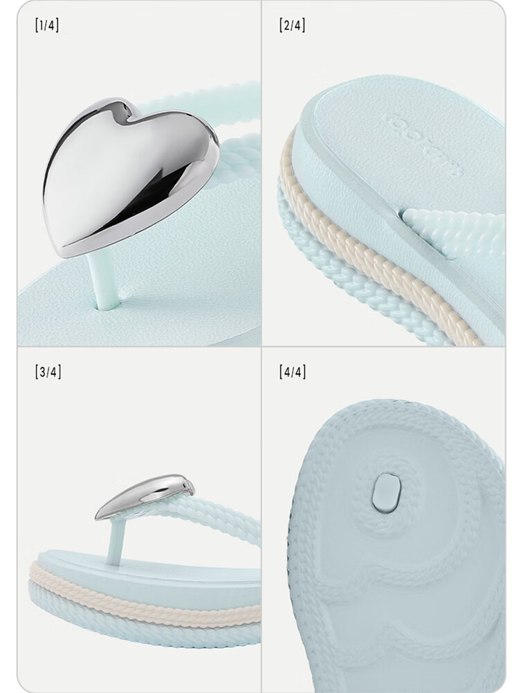 COOLCHAP Sun Qians gleicher Stil 25 Love Spray Flip-Flops für Damen, Sommer, neue rutschfeste Strand-Flip-Flops, Babyblau, 38