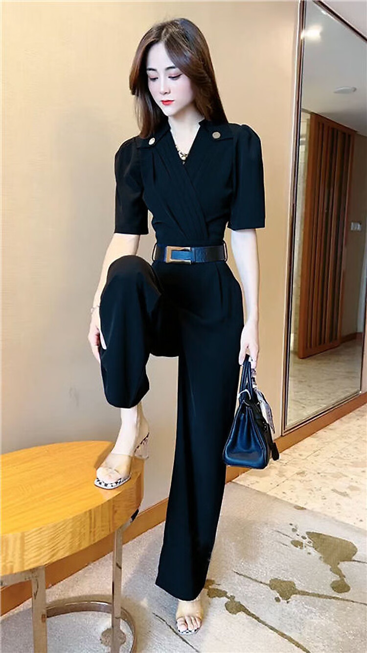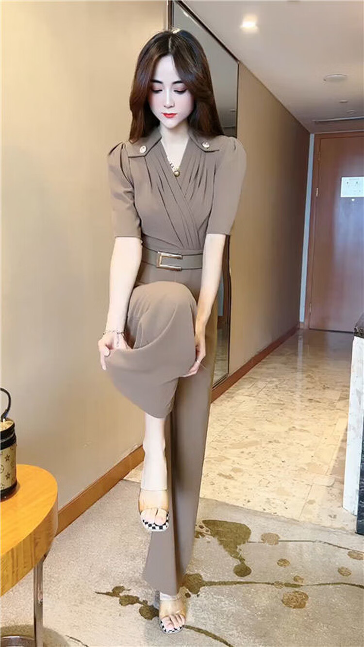 啄木鸟气质时尚连衣裤女夏季新款短袖洋气收腰显瘦阔腿连体裤潮 WH2601#红色 M 95-105斤