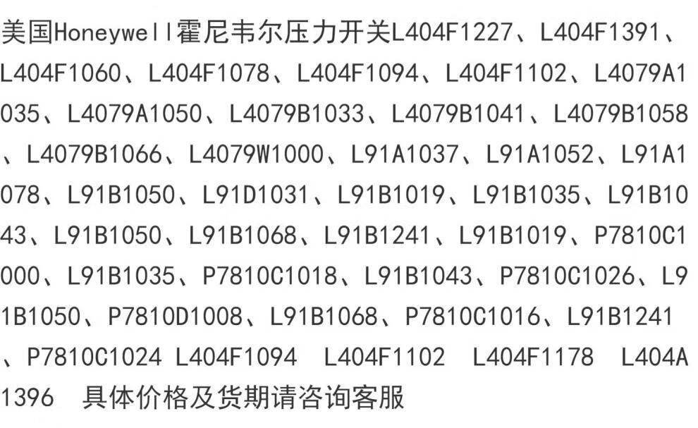 匡建仪表(CONJANT)霍尼韦尔Honeywell压力开关L404F1094    L404F1178  L404A1396 L404F1102