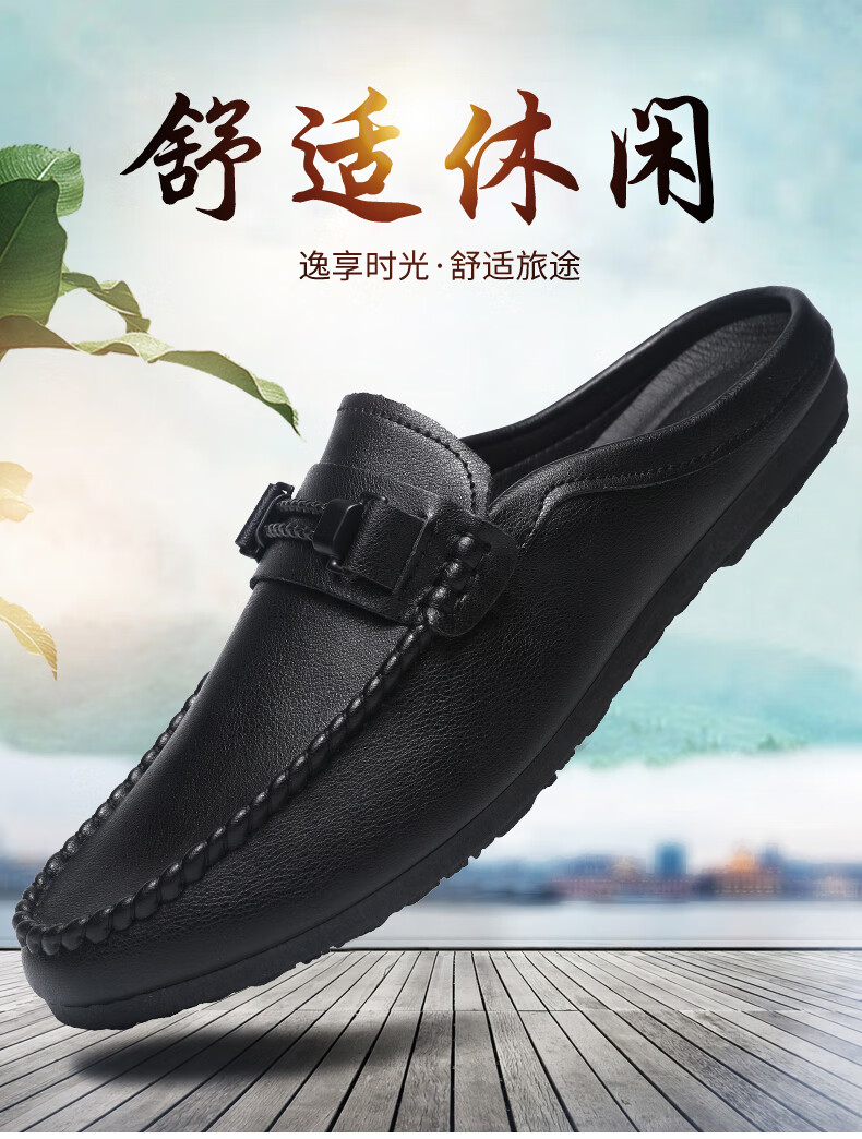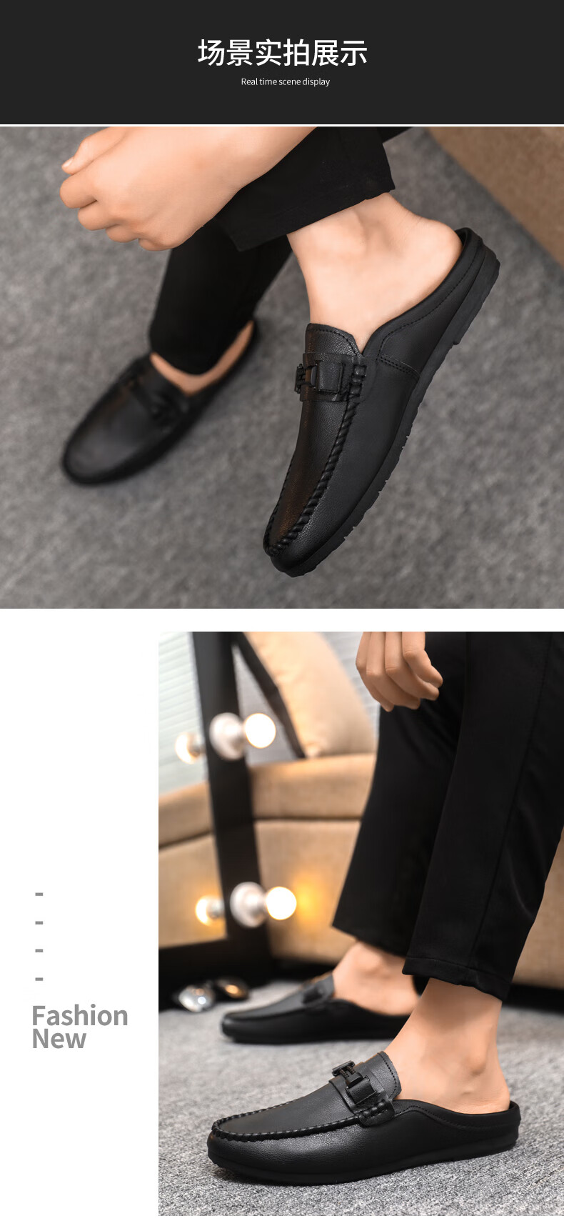 百丽踏系列品牌断码男士软底豆豆鞋低帮休闲皮面感一脚蹬懒人鞋男高端英 YL-D898黑色 39