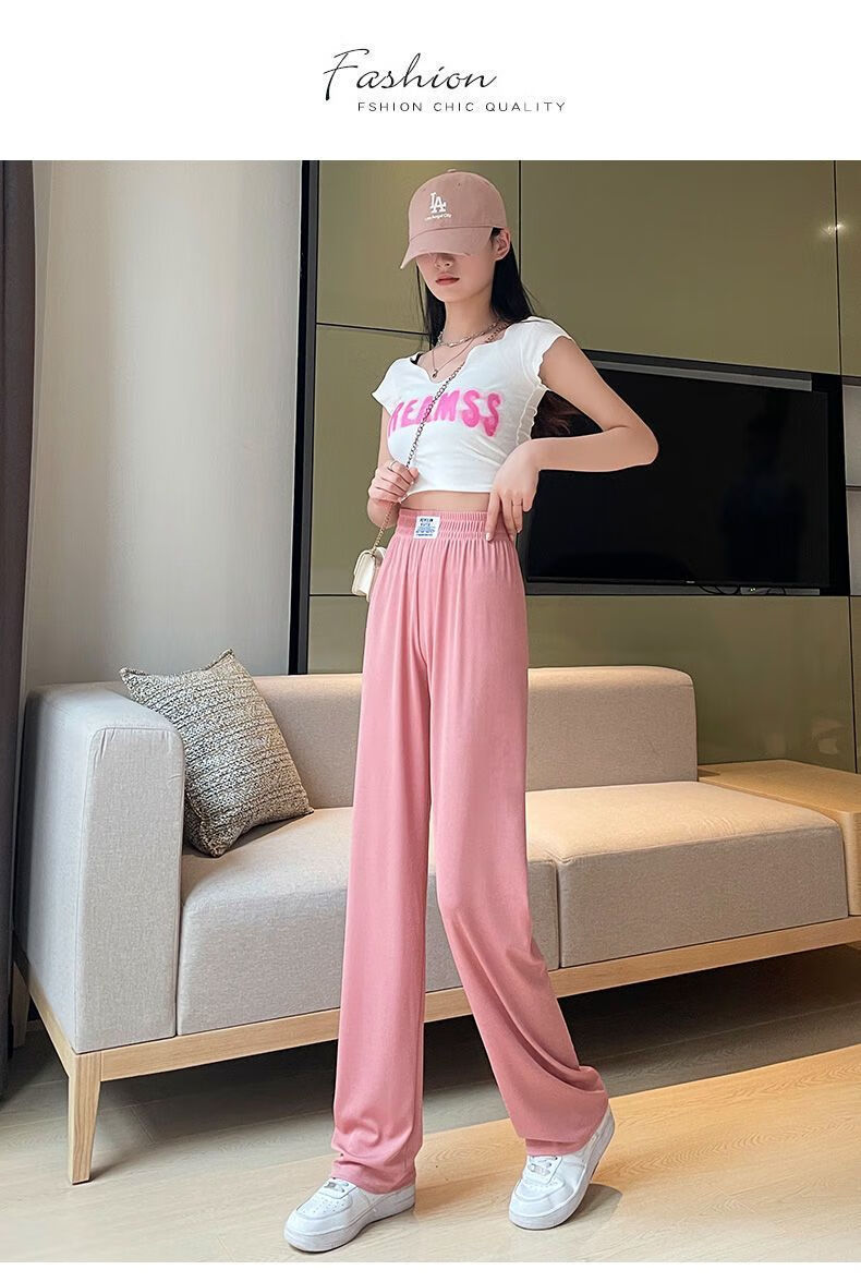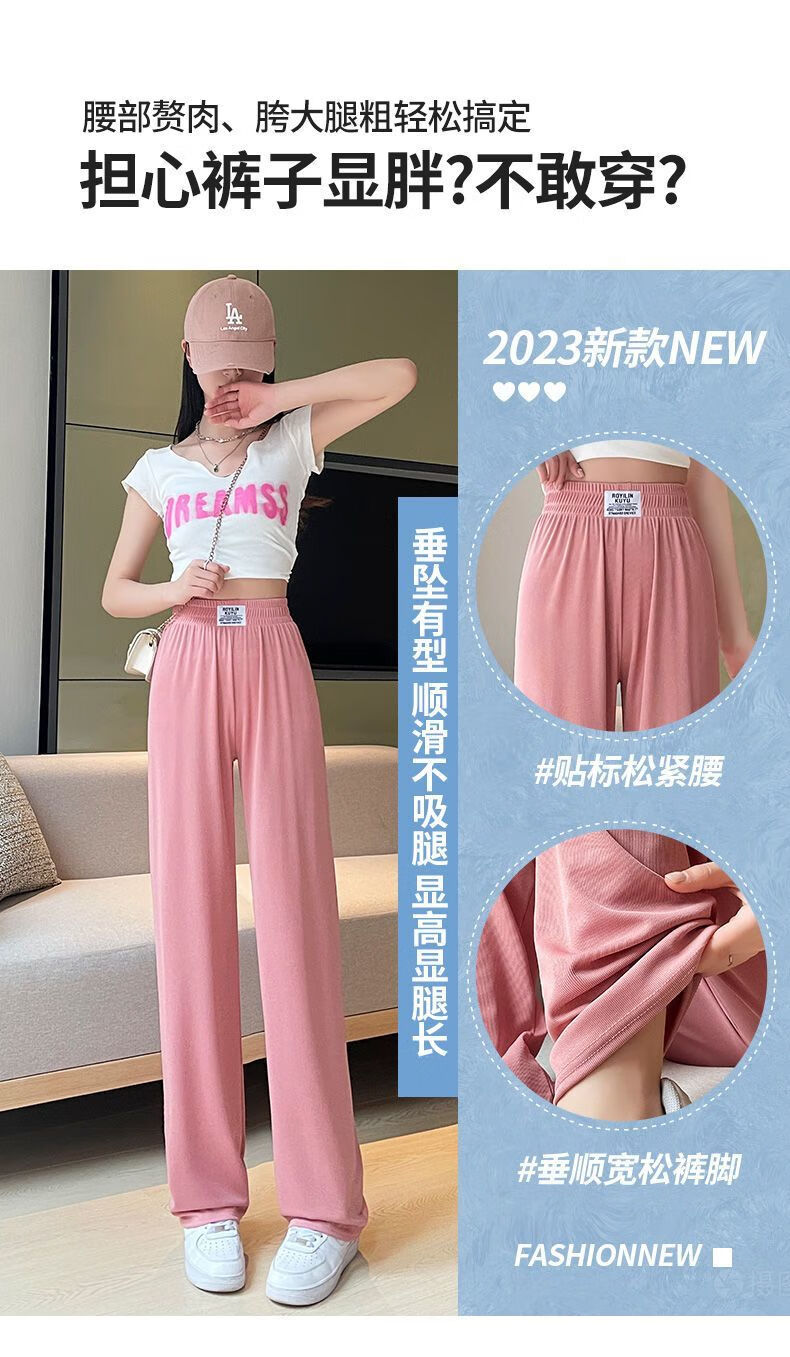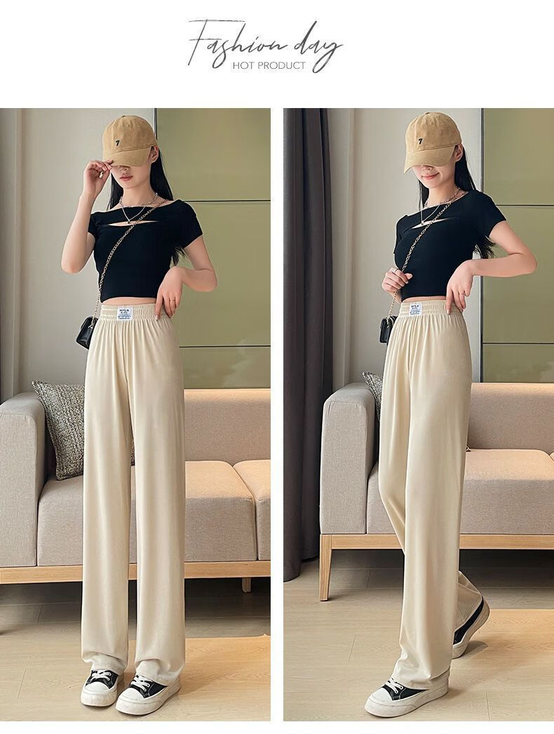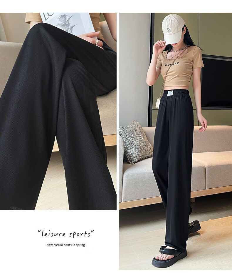 Modal 2025 Nuevos pantalones de pierna ancha de seda de hielo Pantalones rectos drapeados de primavera y otoño para mujer Pantalones de nicho pequeños Pantalones casuales versátiles 9926* Negro XL Recomendado 120-135 Jin Jin es igual a 0,5 kg