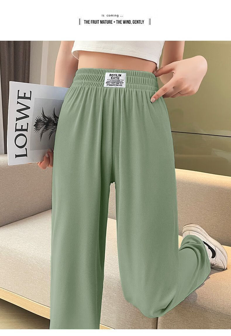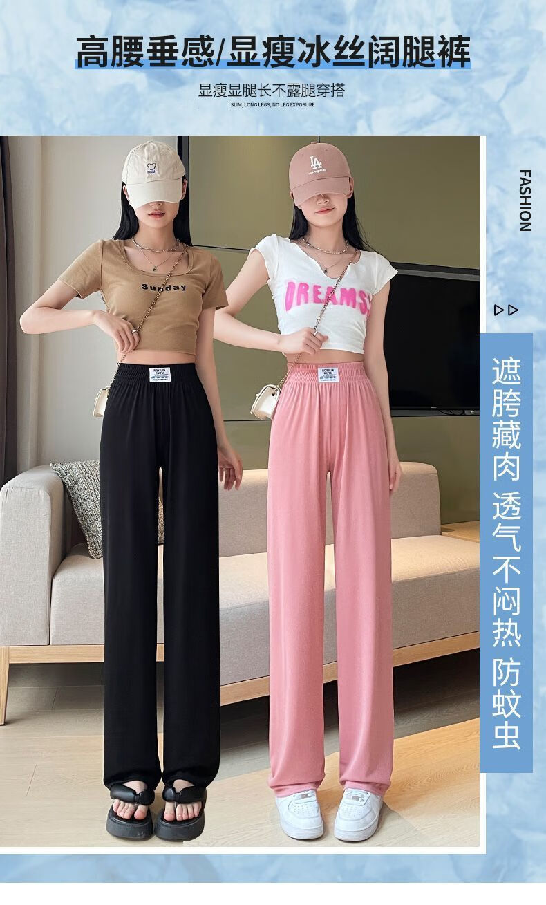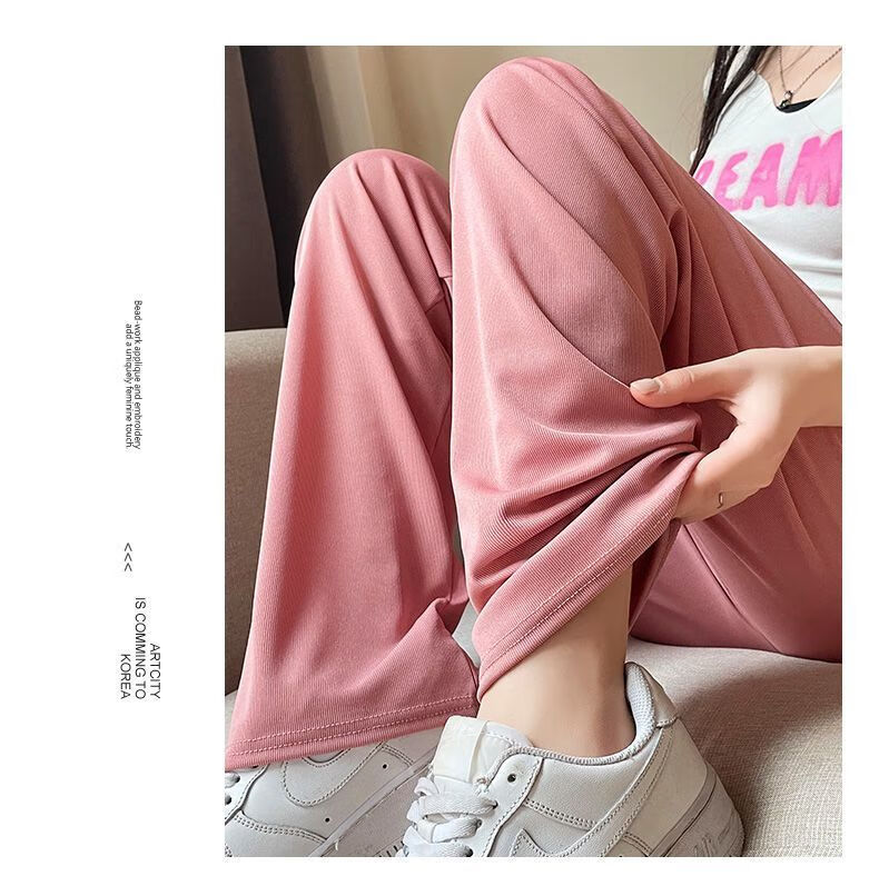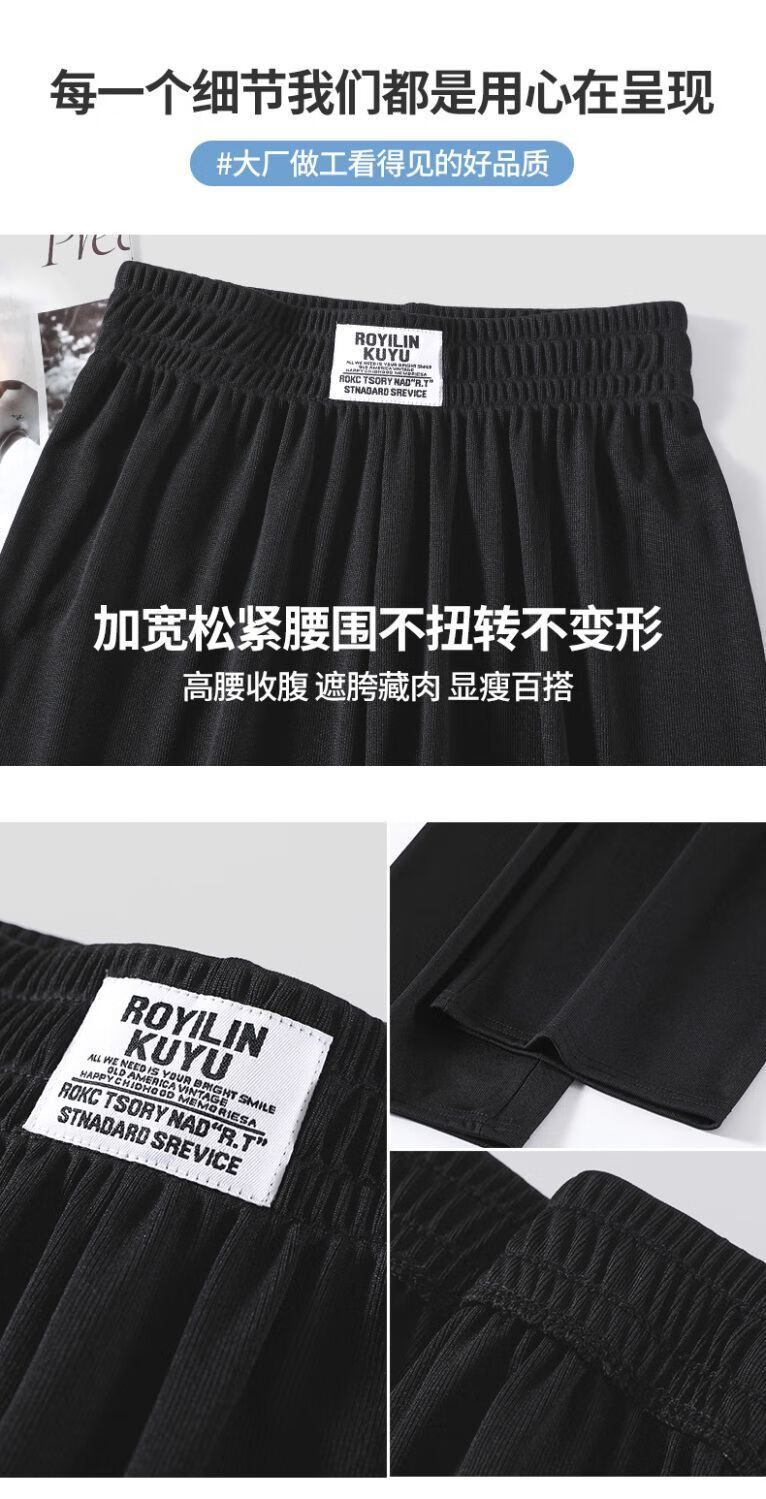 Modal 2025 Nuevos pantalones de pierna ancha de seda de hielo Pantalones rectos drapeados de primavera y otoño para mujer Pantalones de nicho pequeños Pantalones casuales versátiles 9926* Negro XL Recomendado 120-135 Jin Jin es igual a 0,5 kg