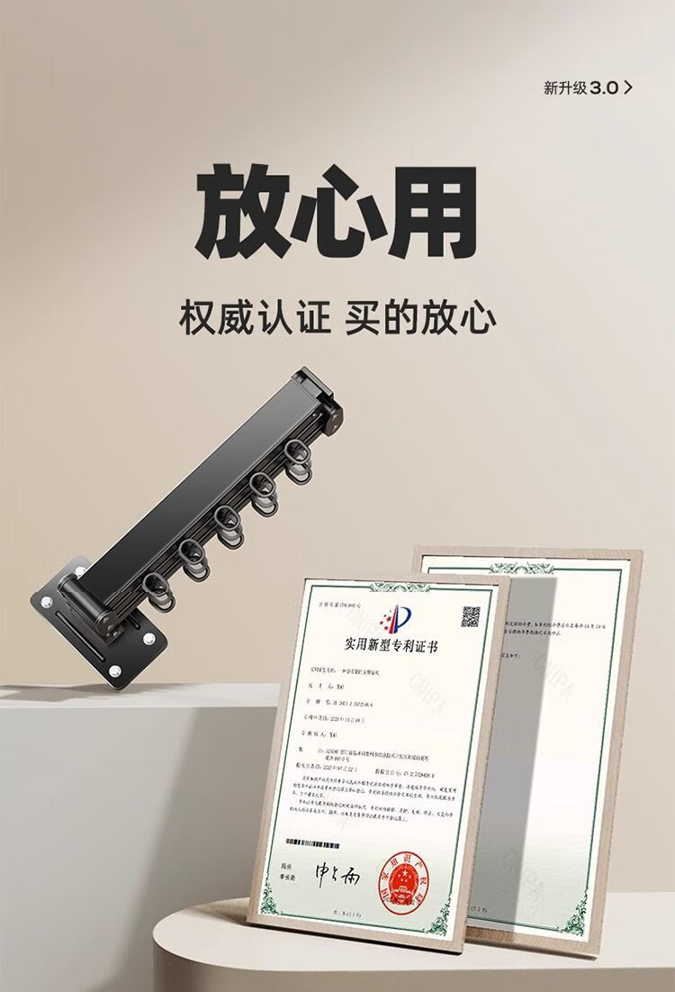 1290 Verdickter, unsichtbarer, zusammenklappbarer Wäscheständer für den Haushalt, wandmontierter Wäscheständer für den Innenbereich ohne Stanzen, dunkles Nachtglas * Zweiteilig – mit Teleskopstange-600.M Nr. 12138* Wäscheständer mit doppeltem Installationszubehör