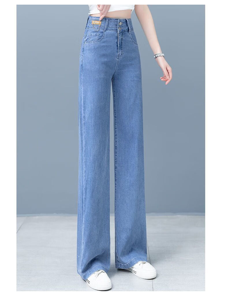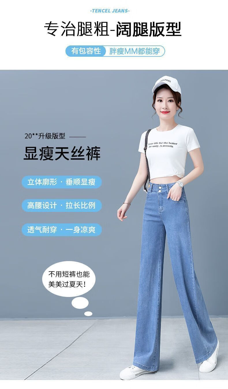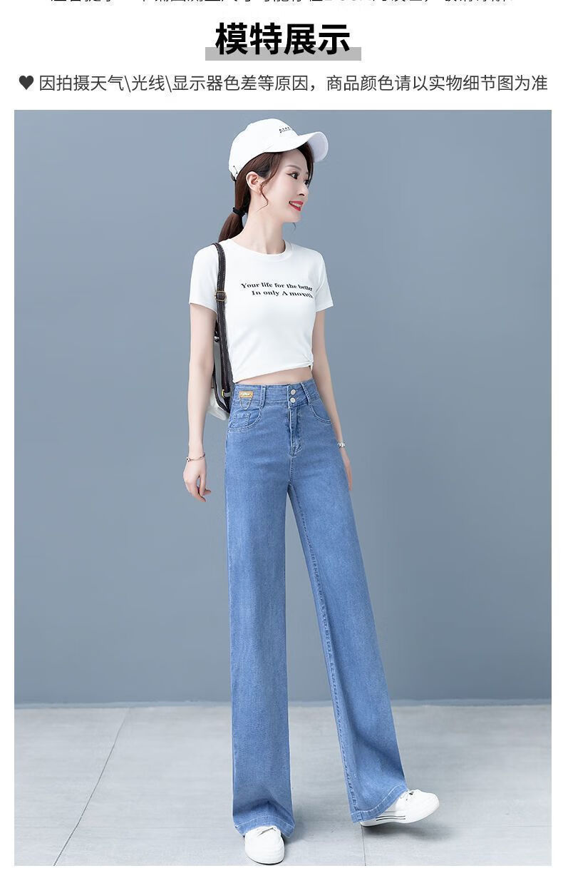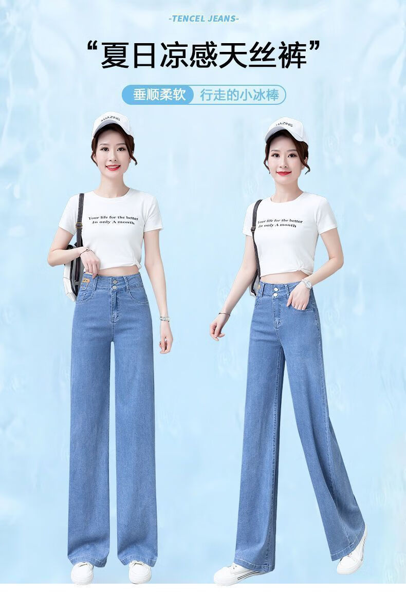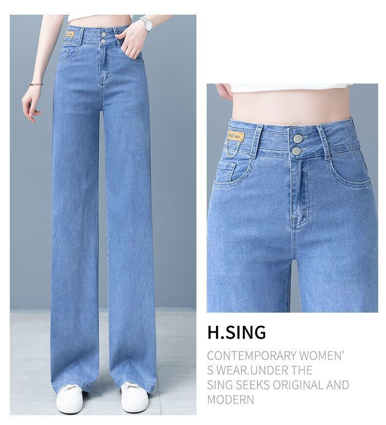 AEMAPE Sommer dünne Tencel Jeans Damen 2025 neue lose weite Beinhosen hohe Taille schlanke beliebte gerade Hosen 878 blaue Hose 27 empfohlen 90-100Jin Jin entspricht 0,5 kg