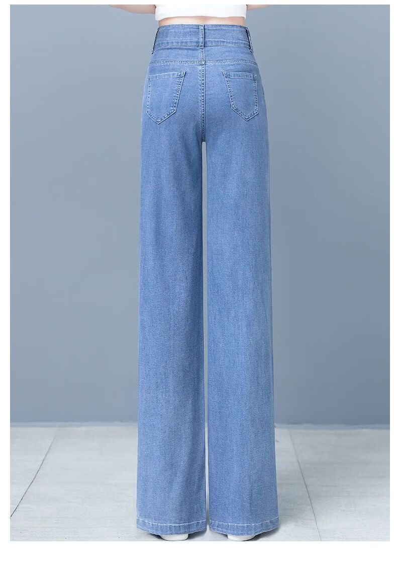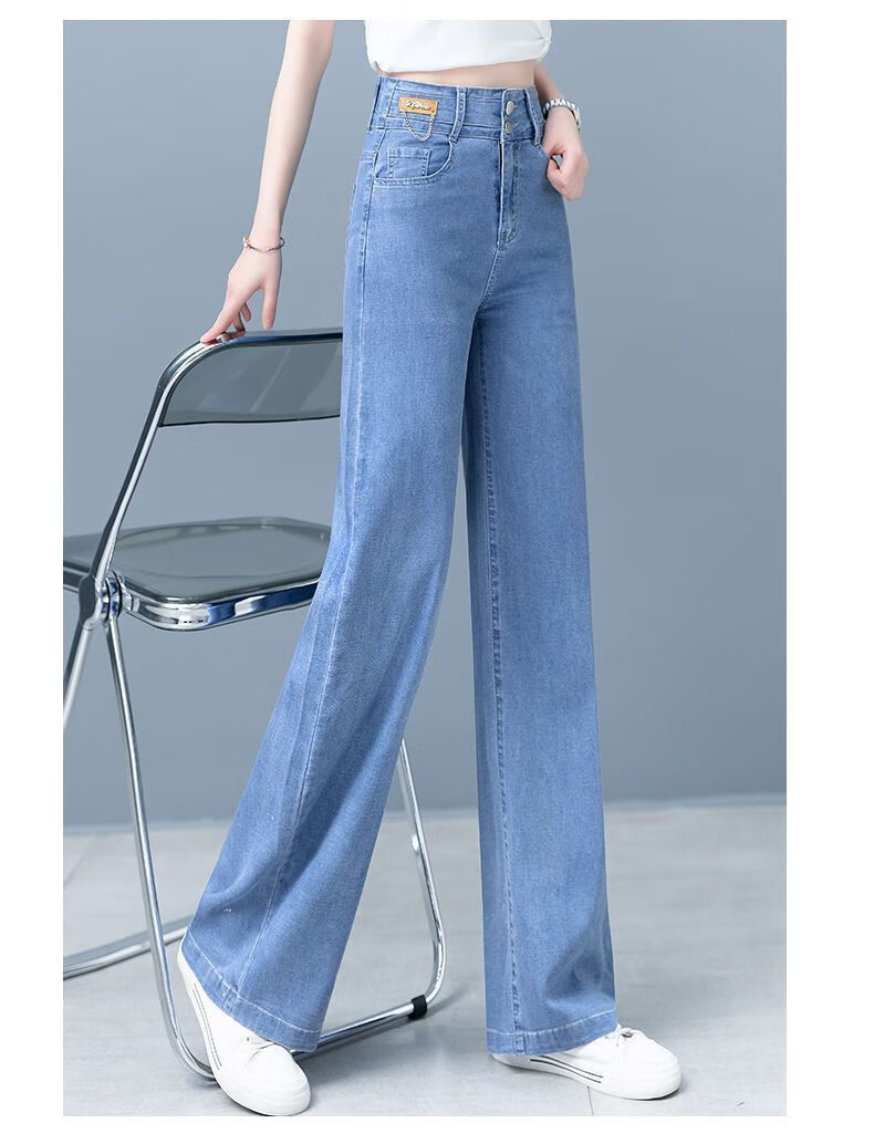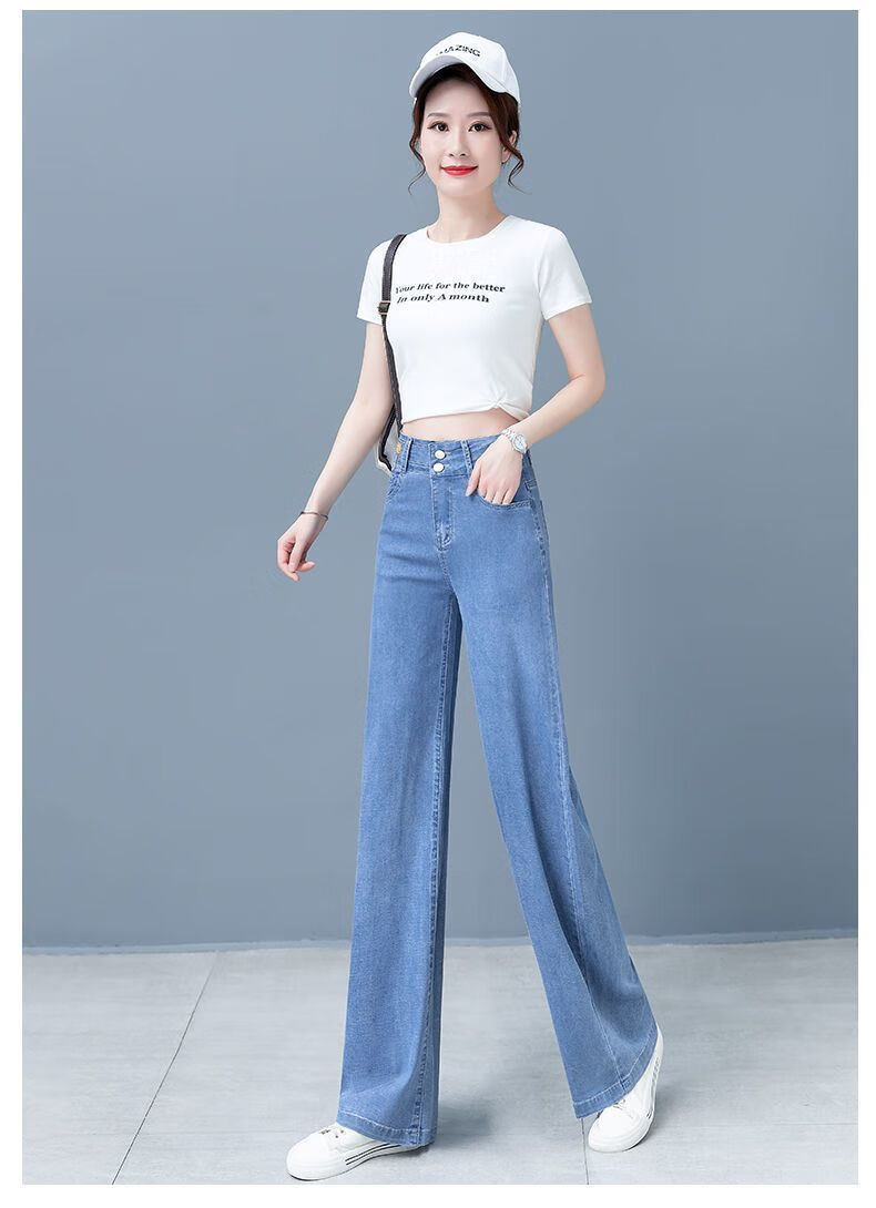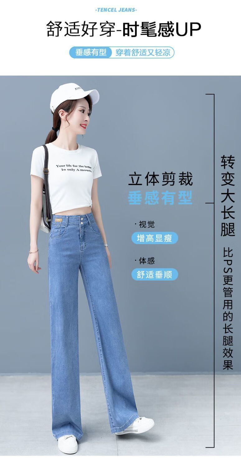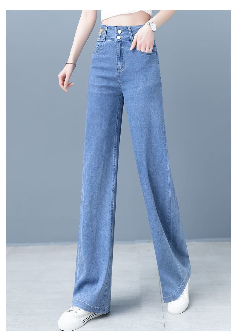AEMAPE Sommer dünne Tencel Jeans Damen 2025 neue lose weite Beinhosen hohe Taille schlanke beliebte gerade Hosen 878 blaue Hose 27 empfohlen 90-100Jin Jin entspricht 0,5 kg