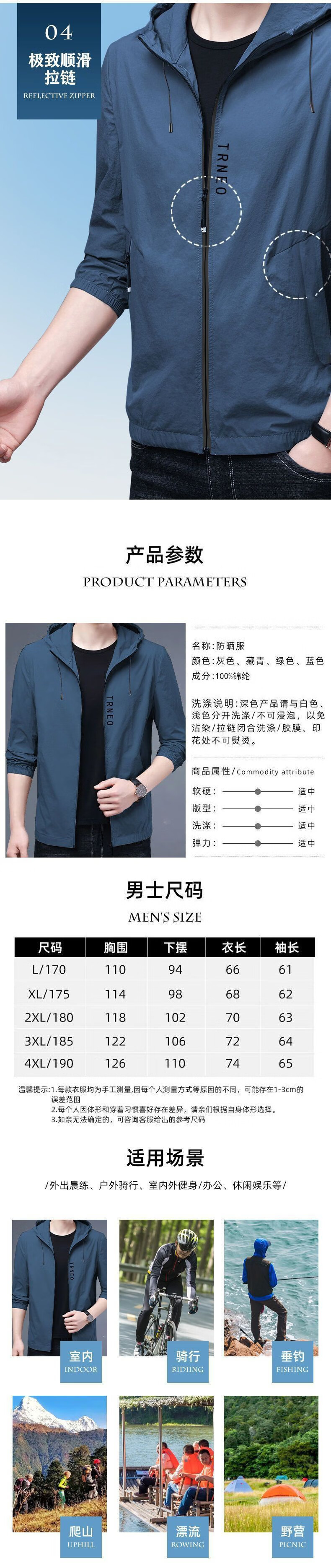 驴狐夏款冰丝连帽防晒上衣男夏季薄外套时尚百搭薄款遮阳皮肤衣男 【遮阳】—FS71—蓝色 XL 适合【120—138斤】