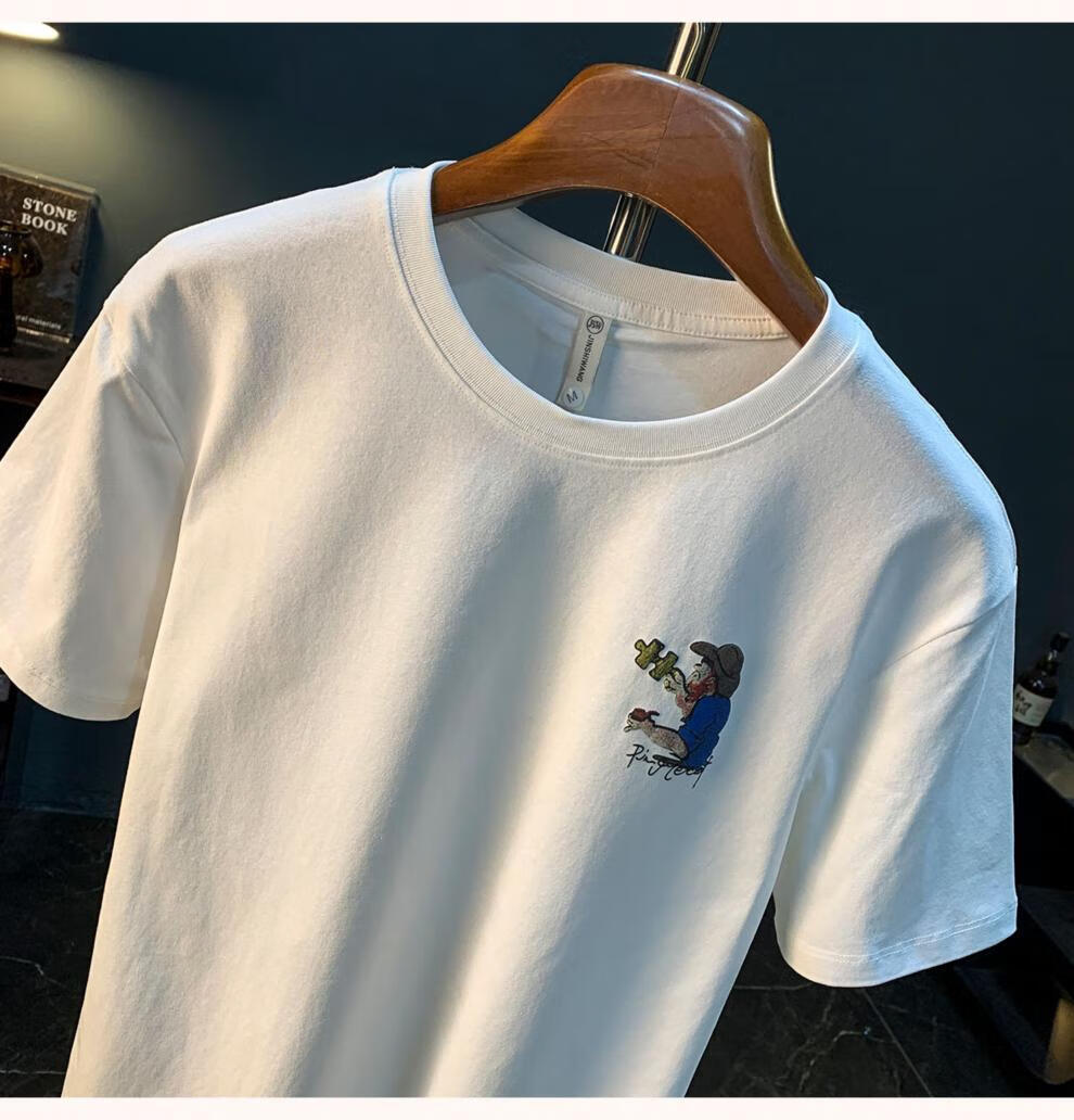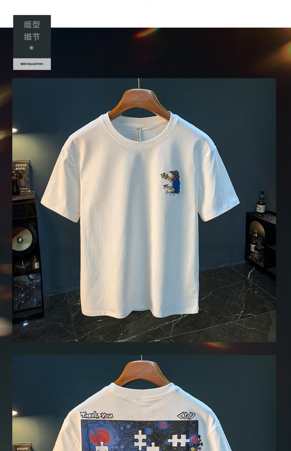 罗蒙(ROMON)印花男款T恤潮流抽象艺术感夏季短袖大码宽松精梳棉舒适T恤衫 白色 【JSW9926】 M 适合90-108斤穿