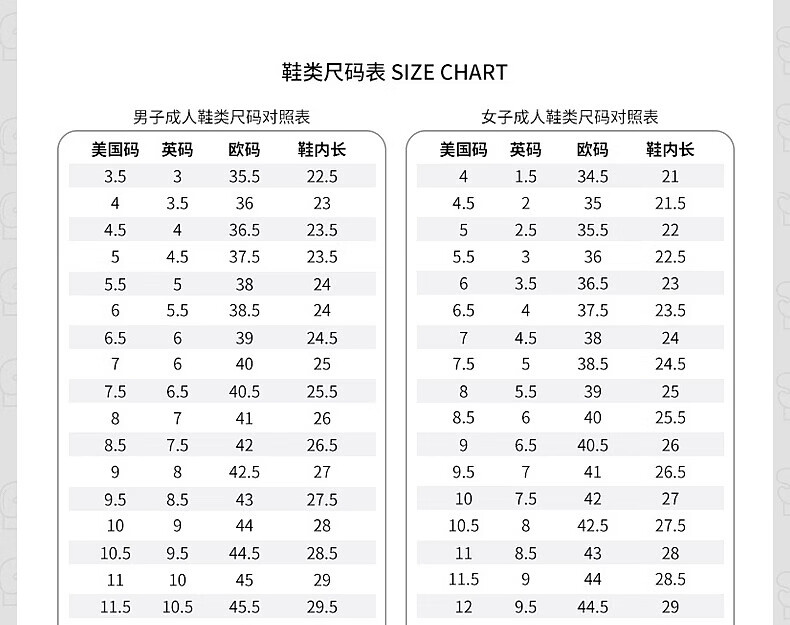 China (cm) 36 - 37 38 - 39 40 - 42 43 - 44 45 - 47