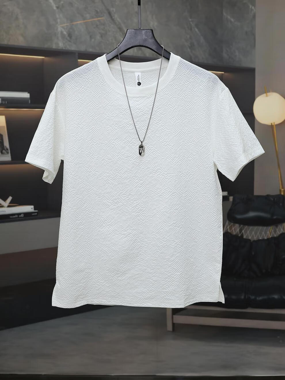 皮尔卡丹(pierre cardin)2025男士夏季新款肌理感微宽松下摆开叉百搭透气短袖T恤针织新款 9909白色 M 建议90-105斤