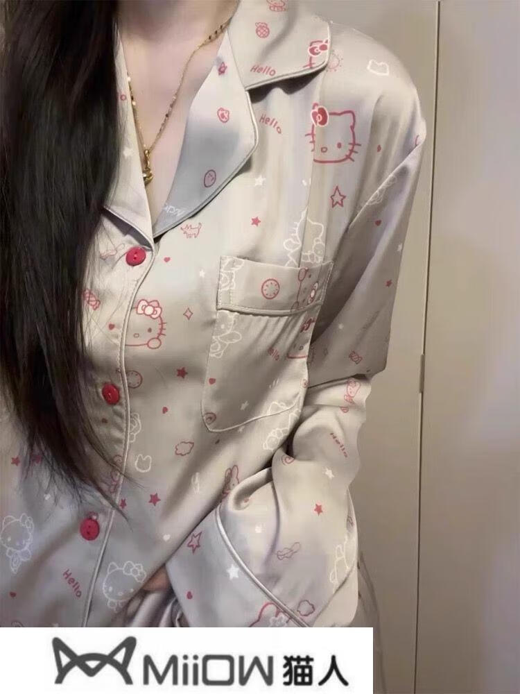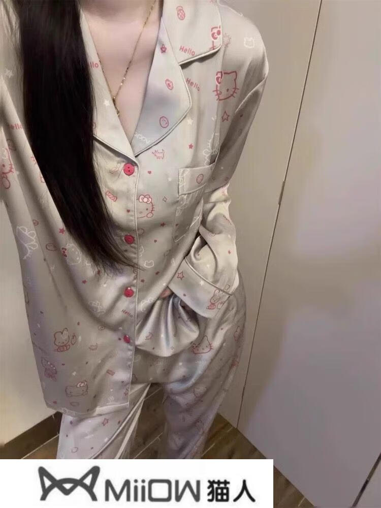 猫人(MiiOW)2025年夏季新款凯蒂猫睡衣女士长袖长裤开衫家居服两件套装新 834-3#双长黑色KT猫 XL