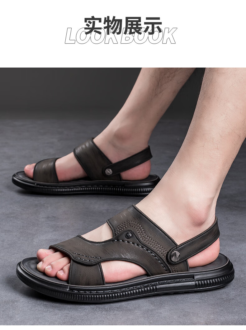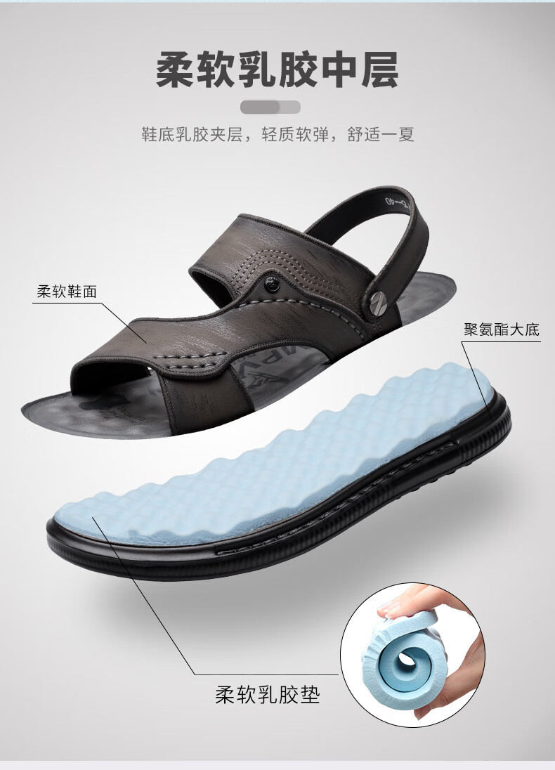 凉鞋男夏季新款男士凉拖鞋户外两用乳胶防滑越南休闲沙滩鞋 9715 黑色 41