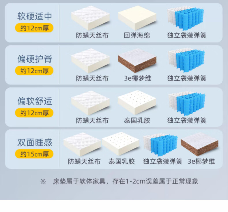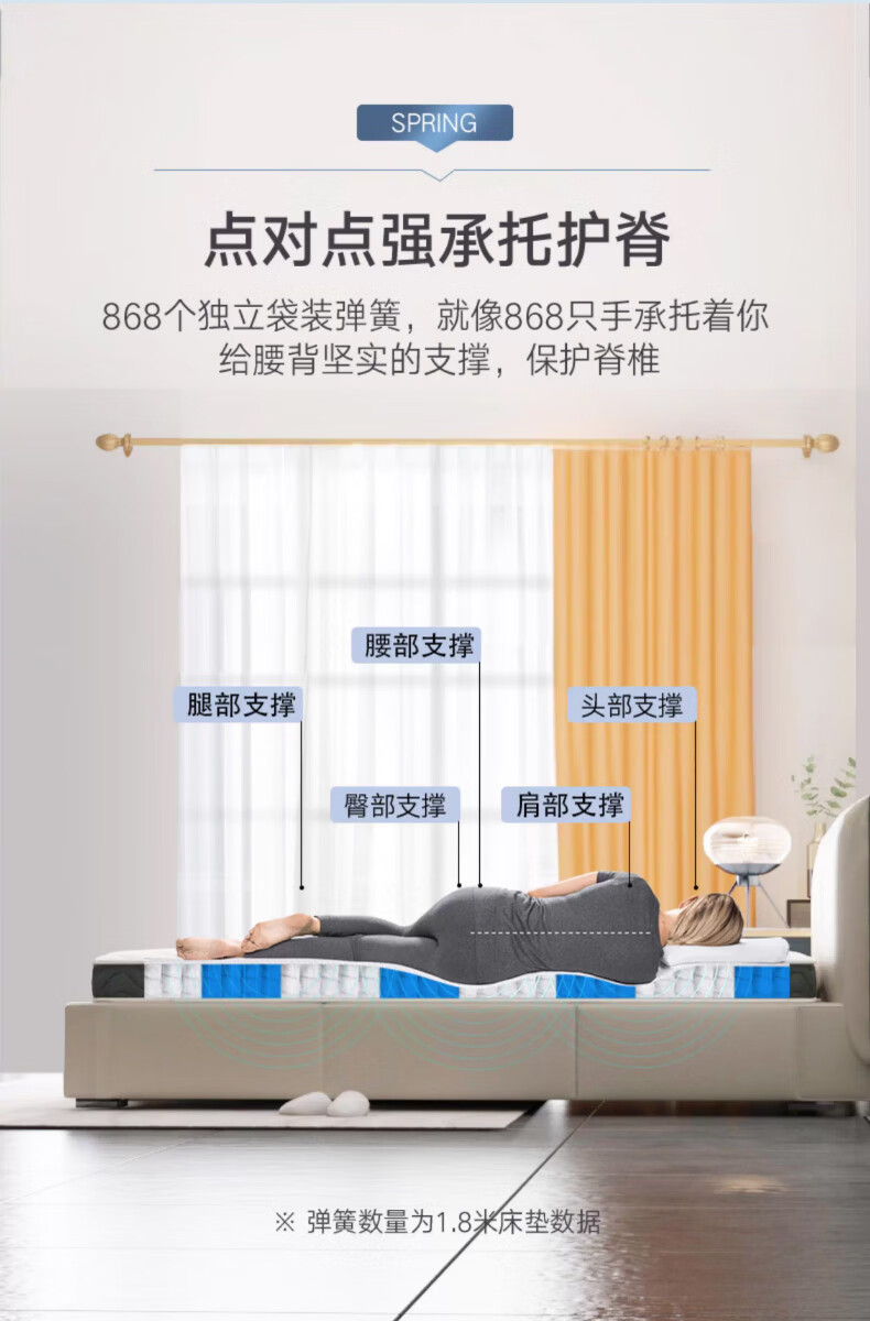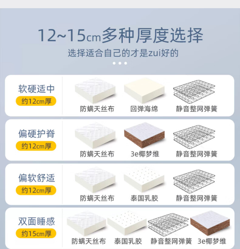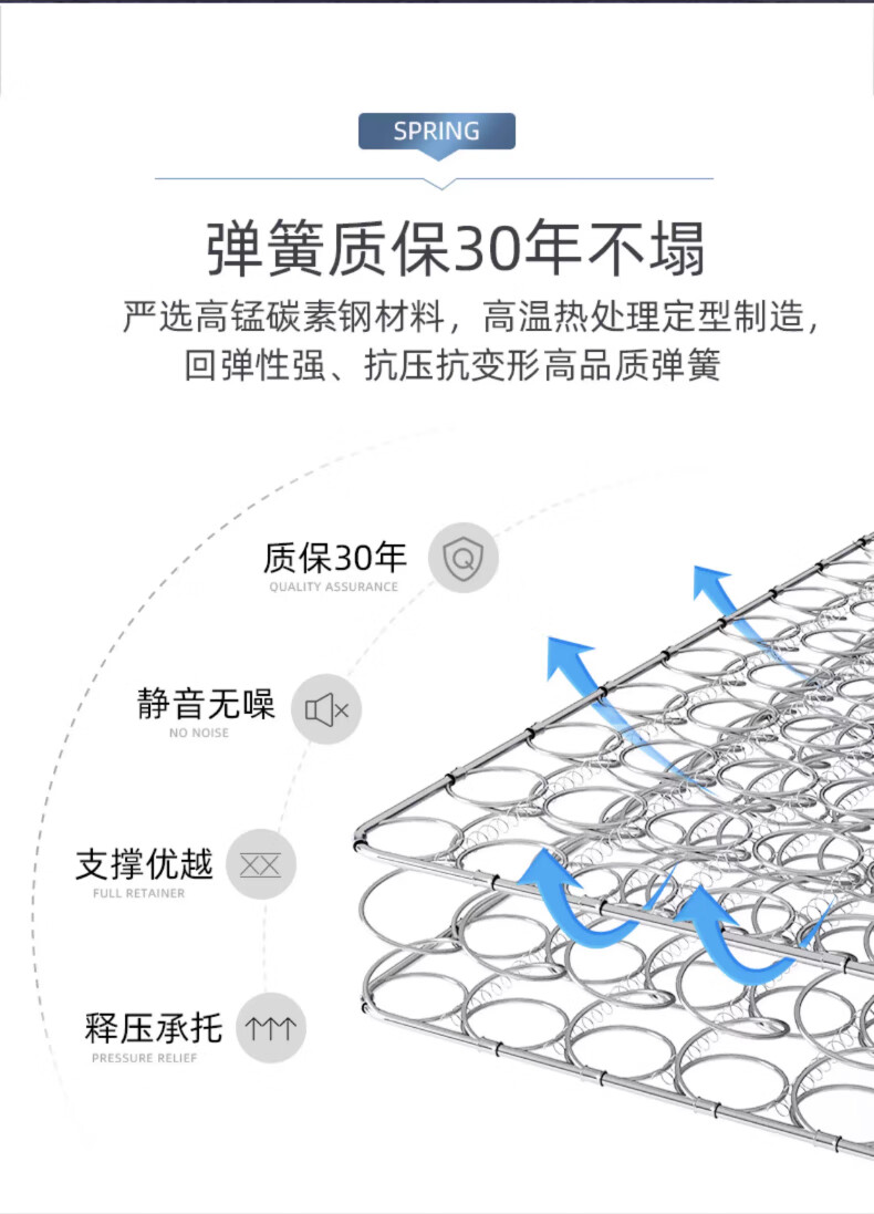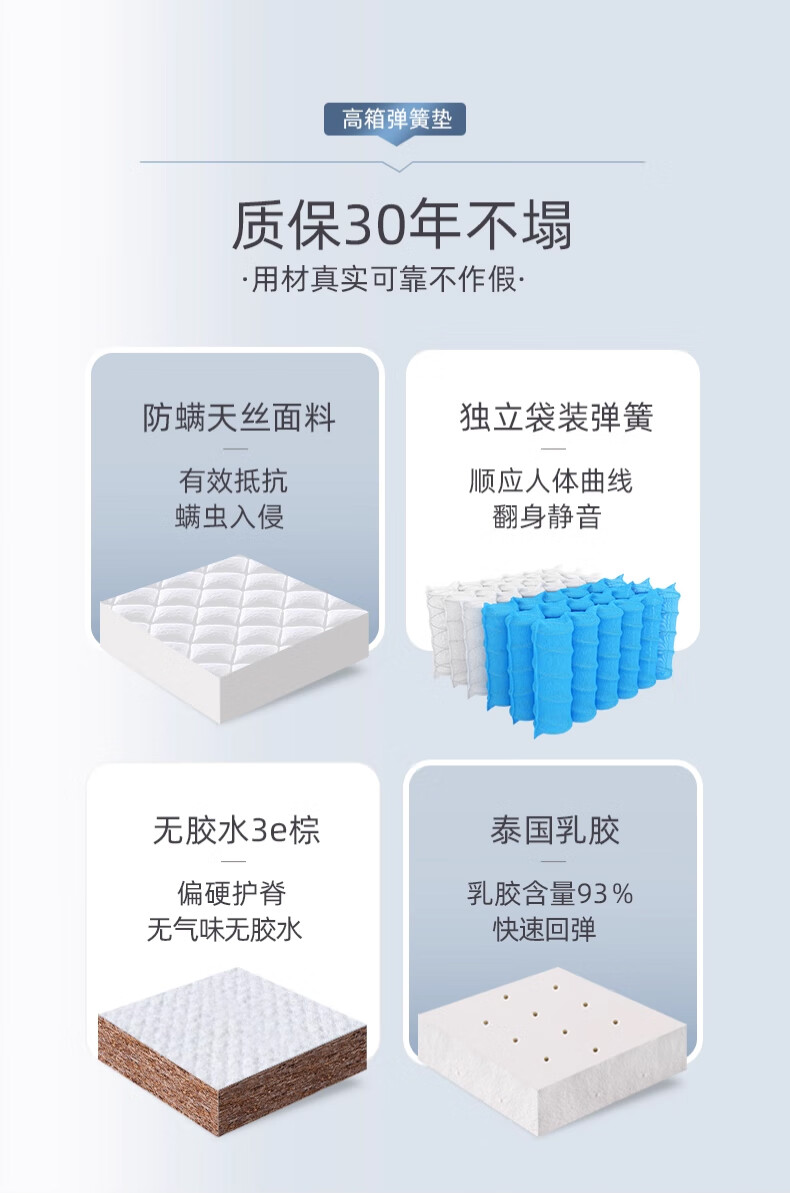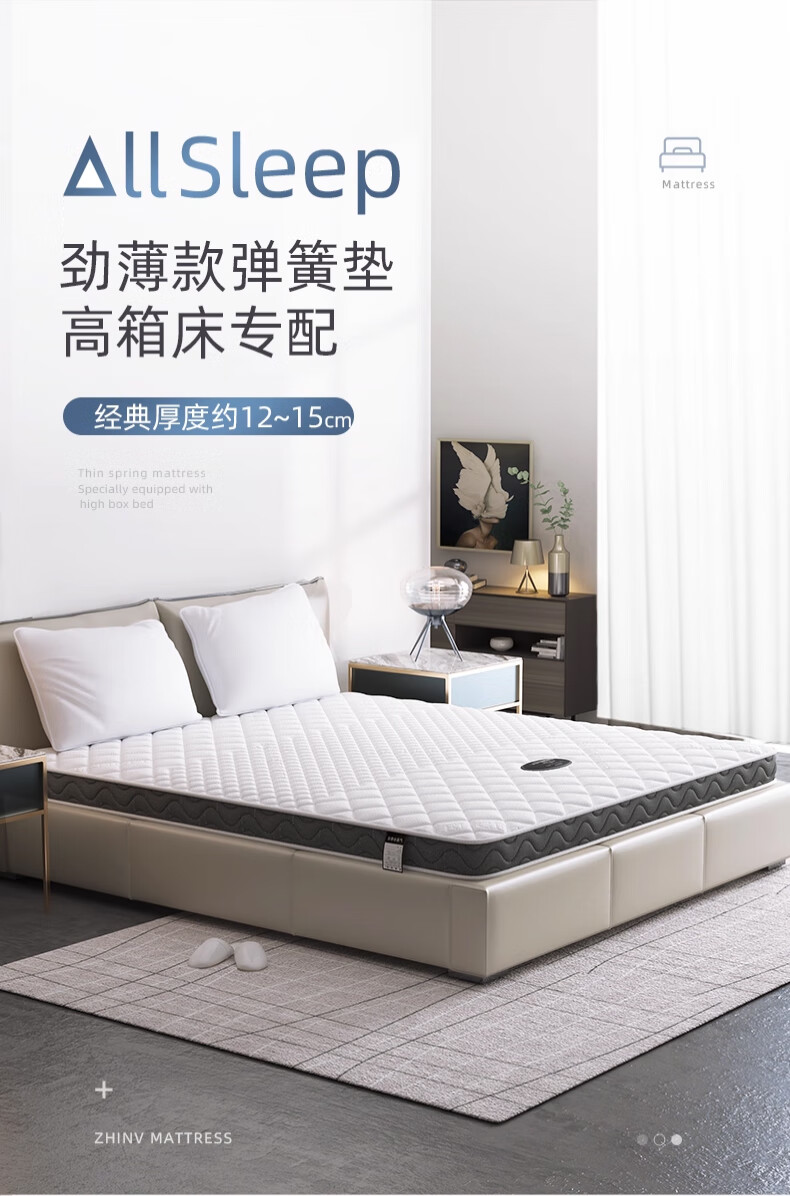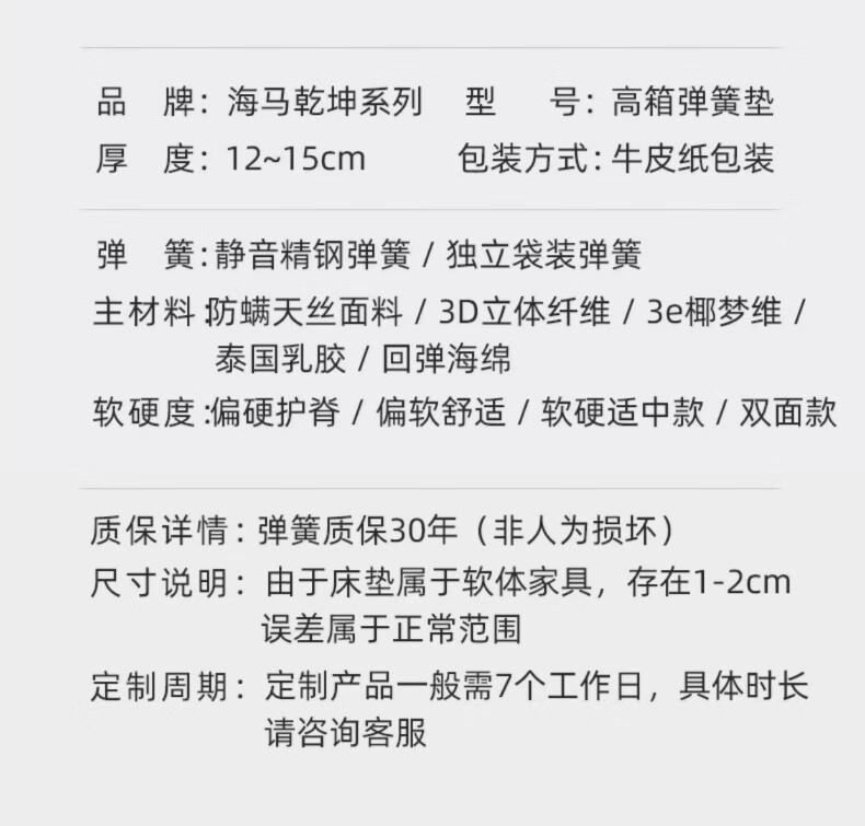 海马乾坤 弹簧床垫 防螨透气弹簧薄款 1.8米x2米乳胶垫1.5米x2米高箱床垫 15cm:防螨面料+静音弹簧 1350mm*2000mm