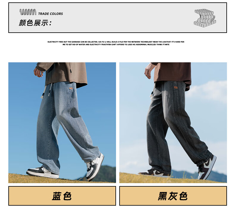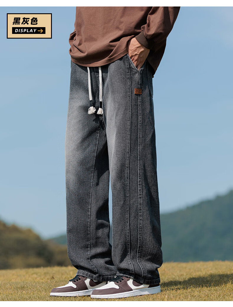 JEEP SPIRIT2025 nouveau jean américain pantalon ample droit à jambes larges pour hommes printemps et automne pantalon décontracté drapé à motif ciel étoilé 9854 noir gris régulier M (recommandé 95-110 Jin Jin équivaut à 0,5 kg)