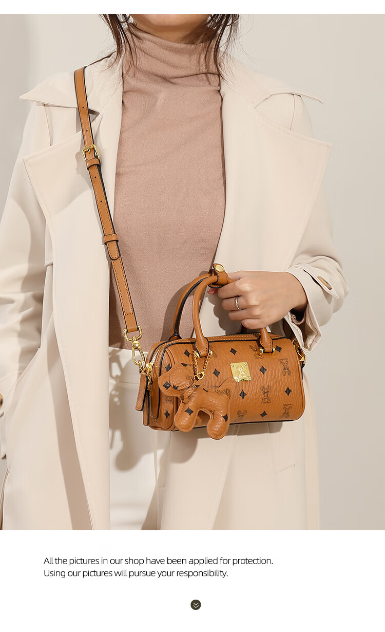 CALCULAT&KEENCK女包真皮波士顿枕头包包女2025新款今年流行单肩斜挎手提小包 粉色小号1396
