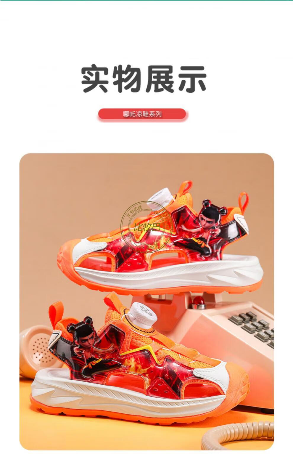 比牧巴(PIMPA)哪吒男童包头凉鞋2025夏季新款儿童透气软底防滑小学生男孩沙滩鞋 M983黑桔 31