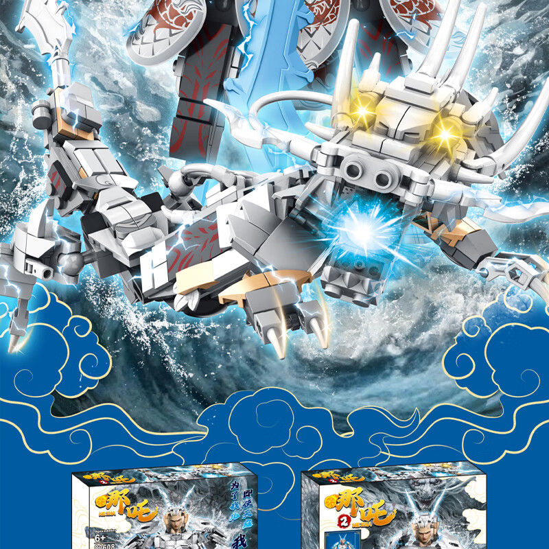 LEGO es compatible con los bloques de construcción Ao Guang del Rey Dragón del Mar de China Oriental LEGO Nezha 2 The Devil Boy llega al mundo juguetes periféricos de ensamblaje para niños Semi-mecánicos Ao Bing (1342PCS)