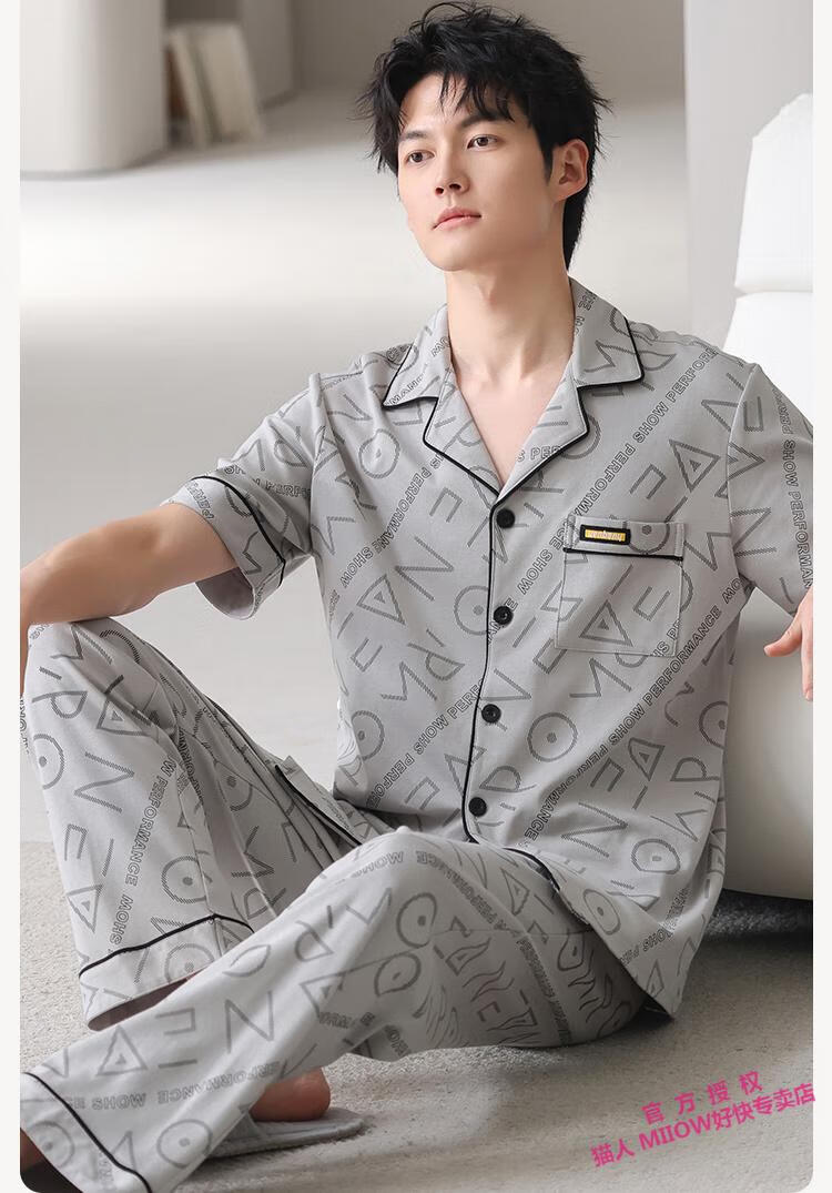 MiiOW Pijamas para Hombre Verano Algodón Fino Manga Corta Solapa Casual Suelto Juvenil Conjunto De Ropa para El Hogar De Gran Tamaño Q9857 L