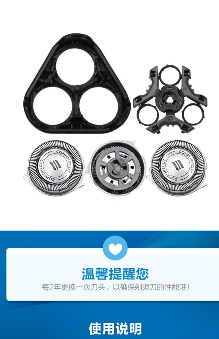 适用适配飞利浦剃须刀刀片S1000刀头s1010s1020s1050s1060网配件SH30 3个装 (3刀片+3刀网)