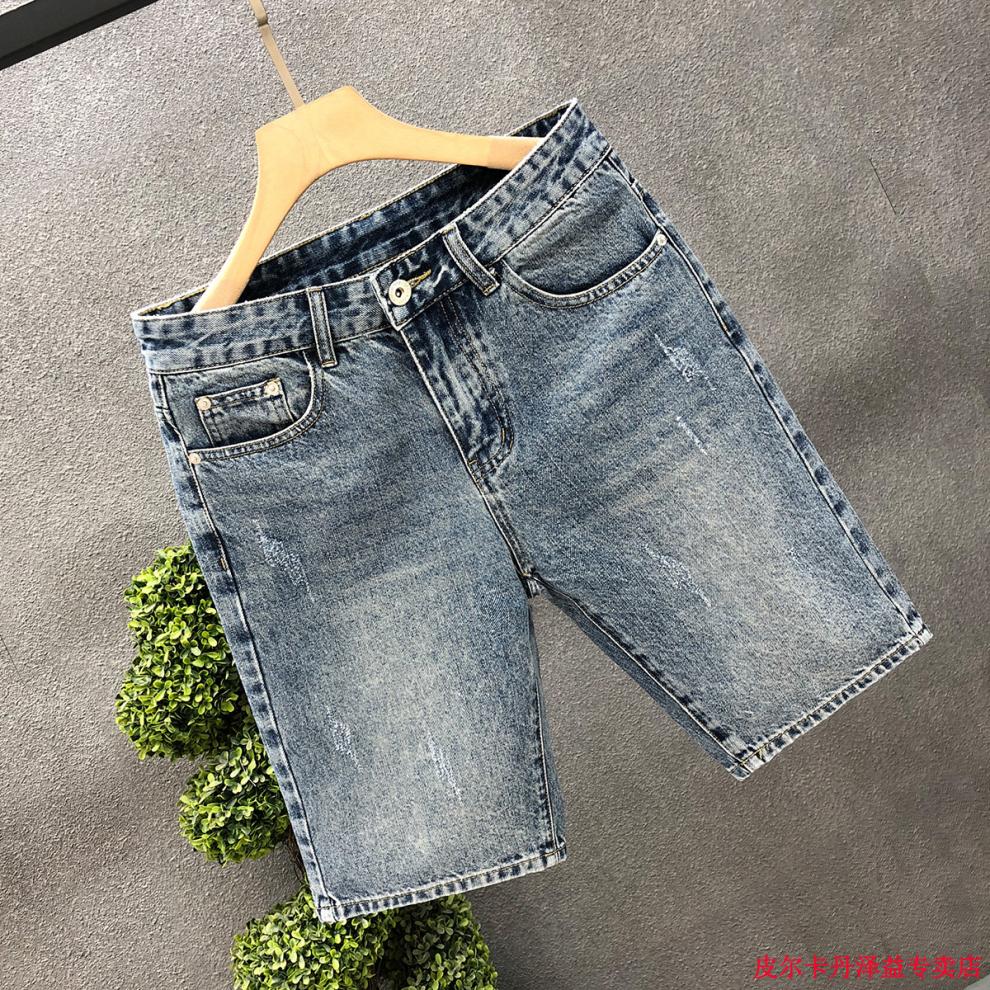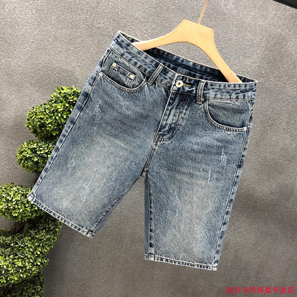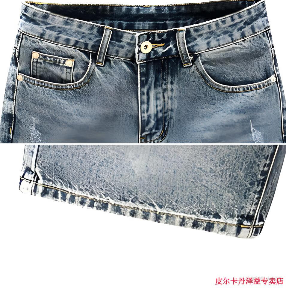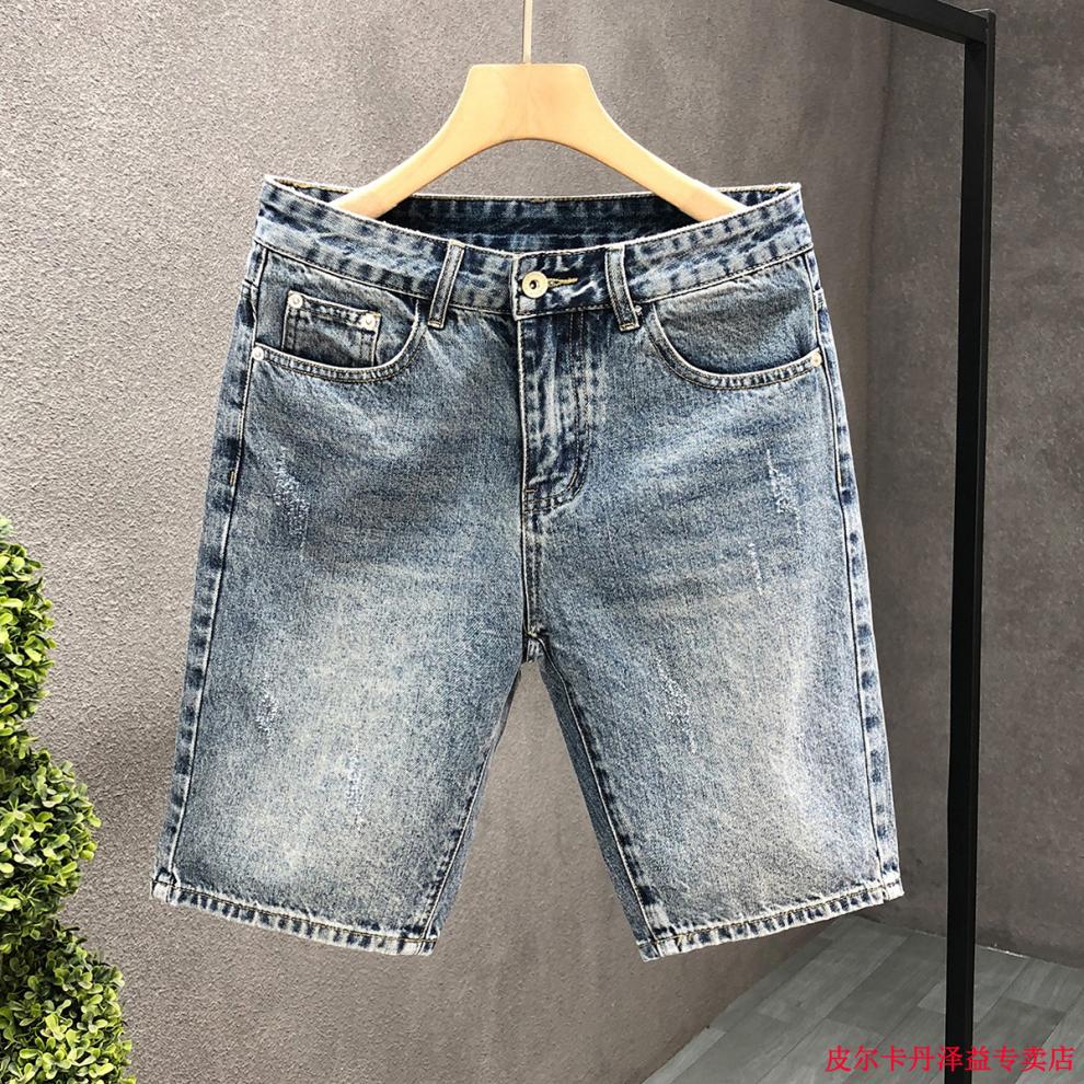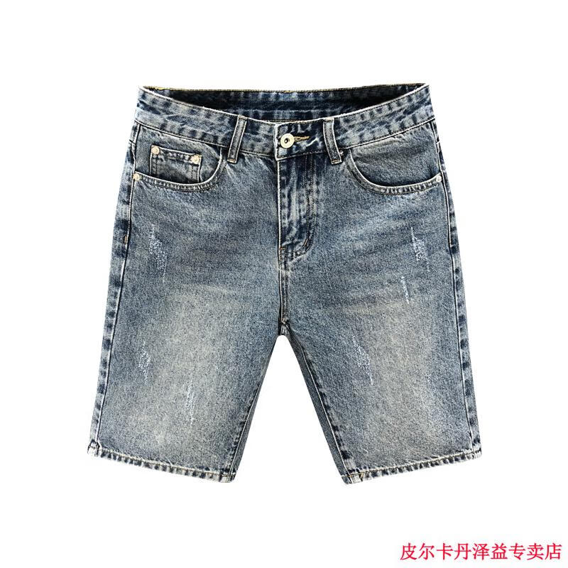 皮尔卡丹(pierre cardin)2025新款复古蓝色牛仔短裤男士夏季潮流休闲五分裤外穿中裤子针织 K844 蓝色 28