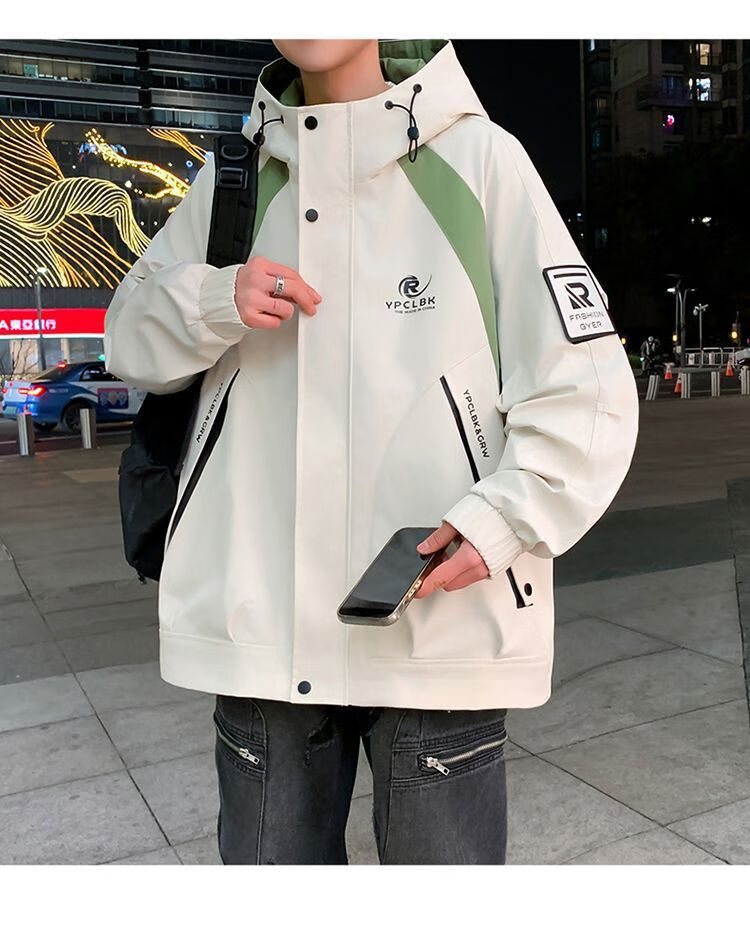 常缕竺 春秋季夹克外套男青少年韩版连帽男装时尚百搭学生 春秋683款白蓝 【款】 2XL 建议【140-155斤】