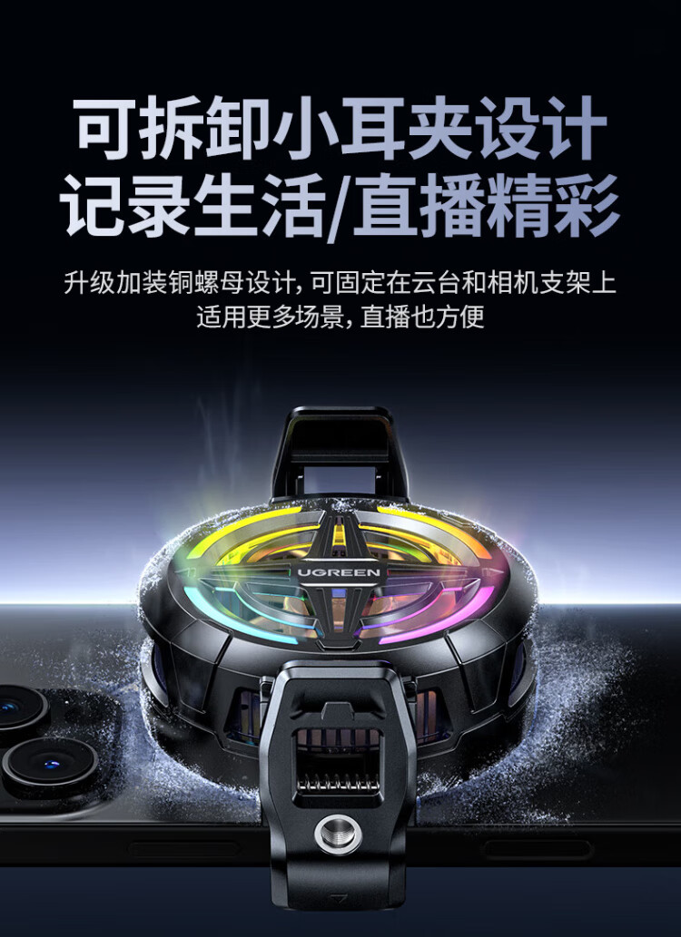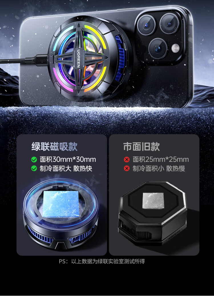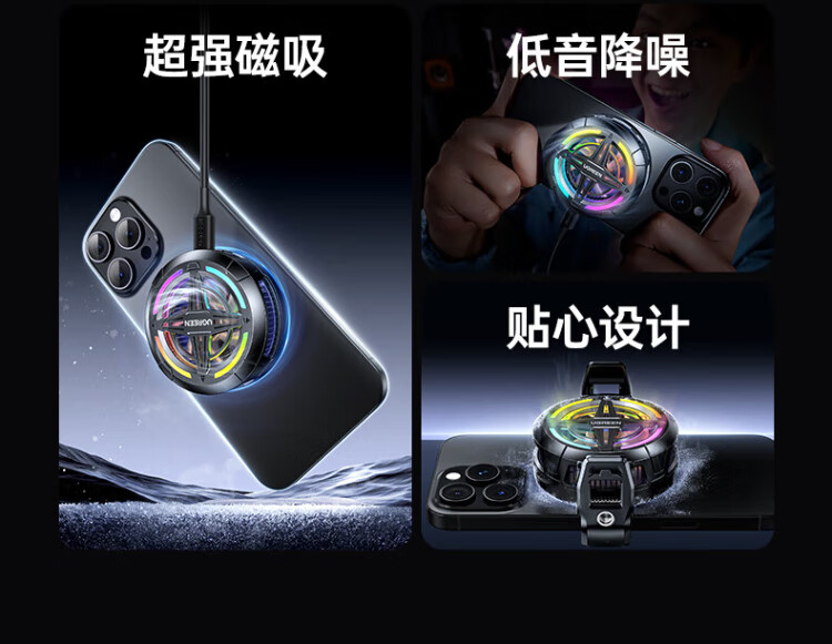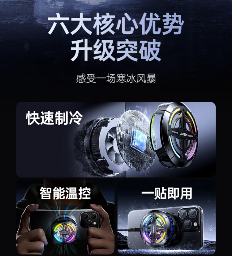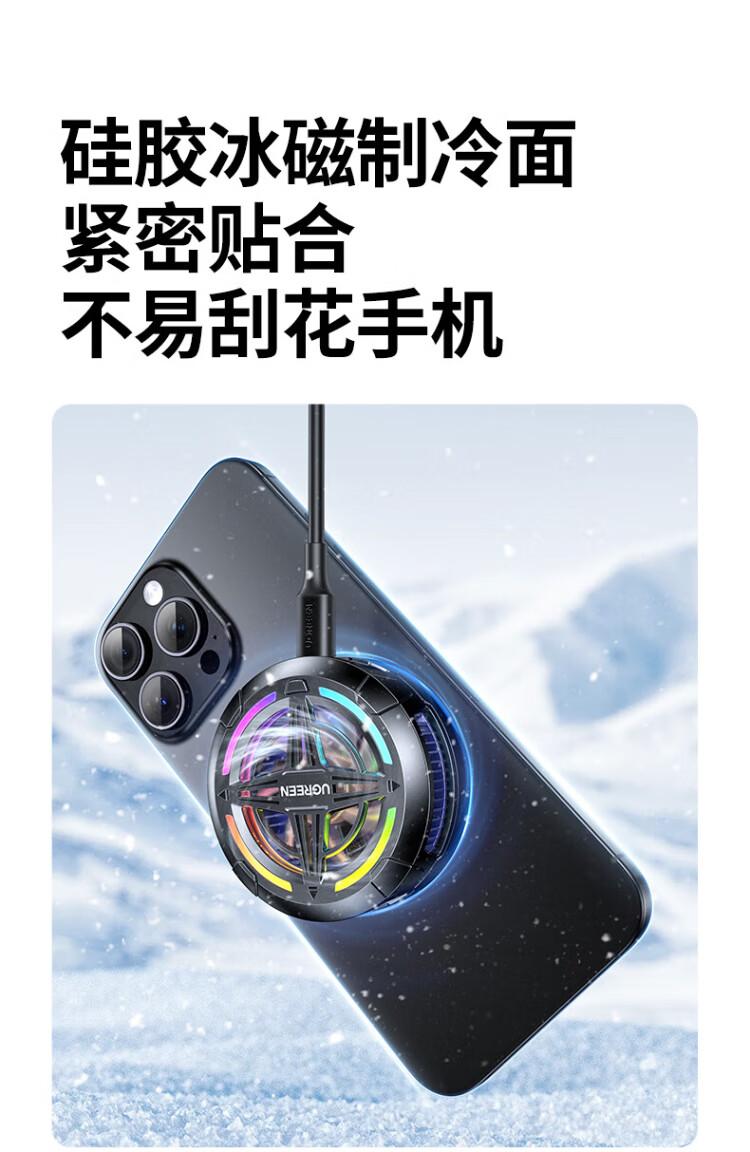 绿联手机散热器 专用磁吸半导体制冷新款降噪降温控轻音背夹电竞直播平板ipad适用安卓苹果手机 疾速降温/低音降噪