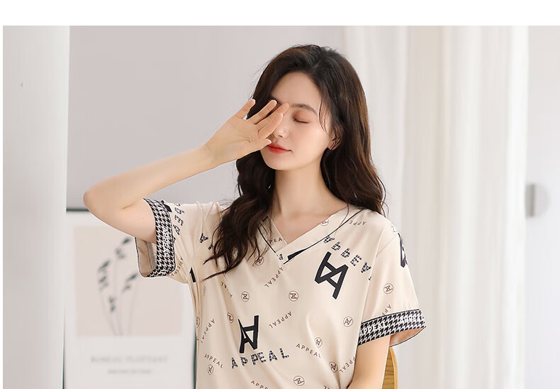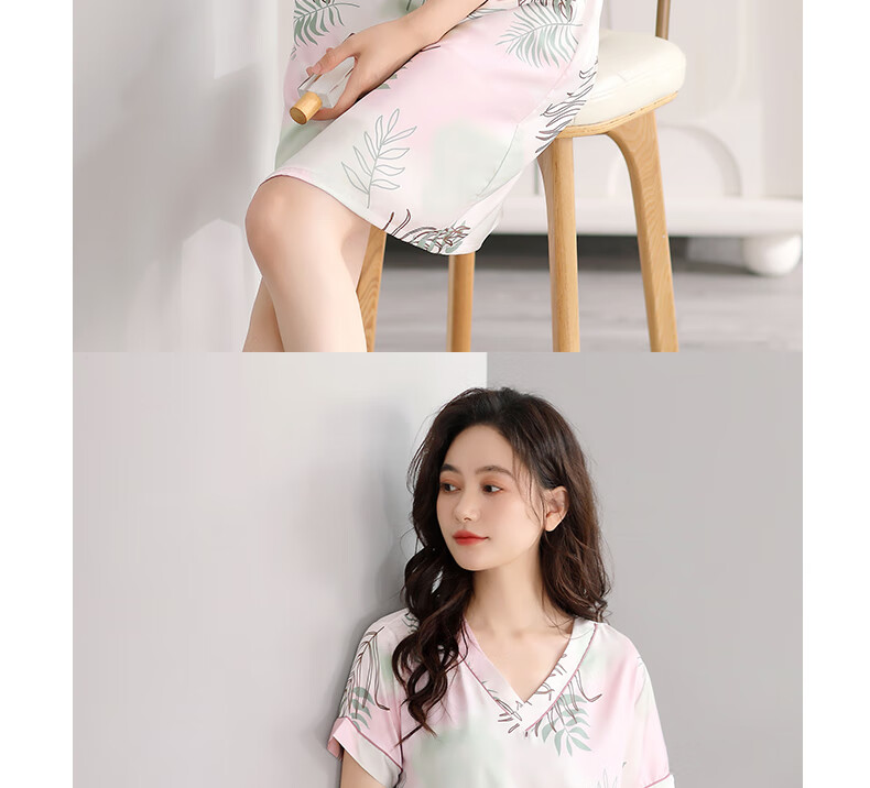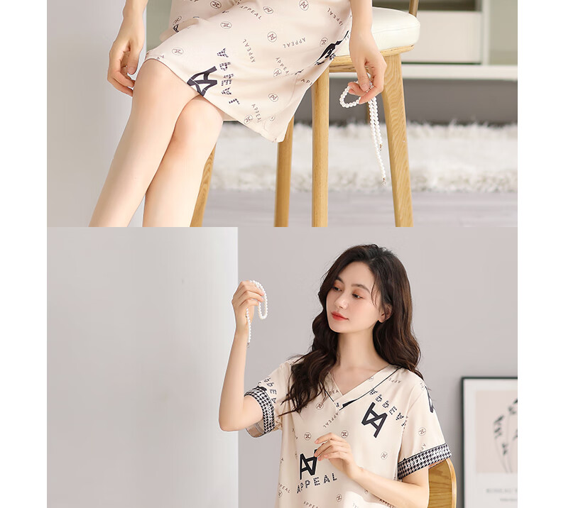莫代尔睡裙女士夏季冰丝短袖睡衣裙薄款夏天2025新款仿真丝绸夏款连衣裙 9926奶茶杏 M