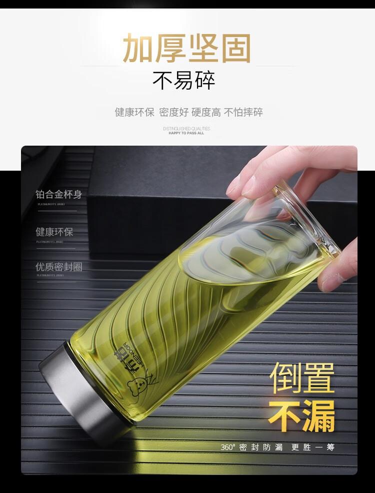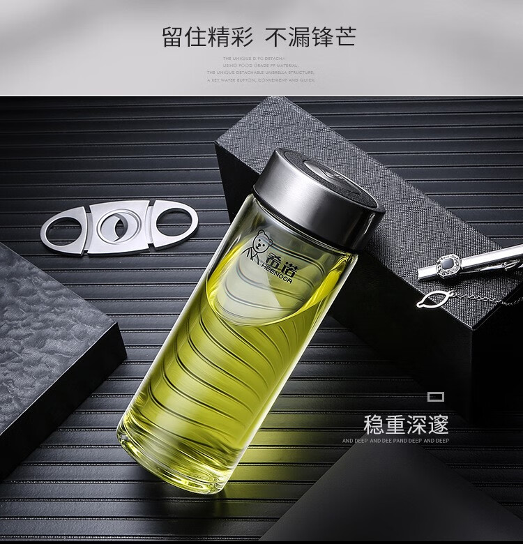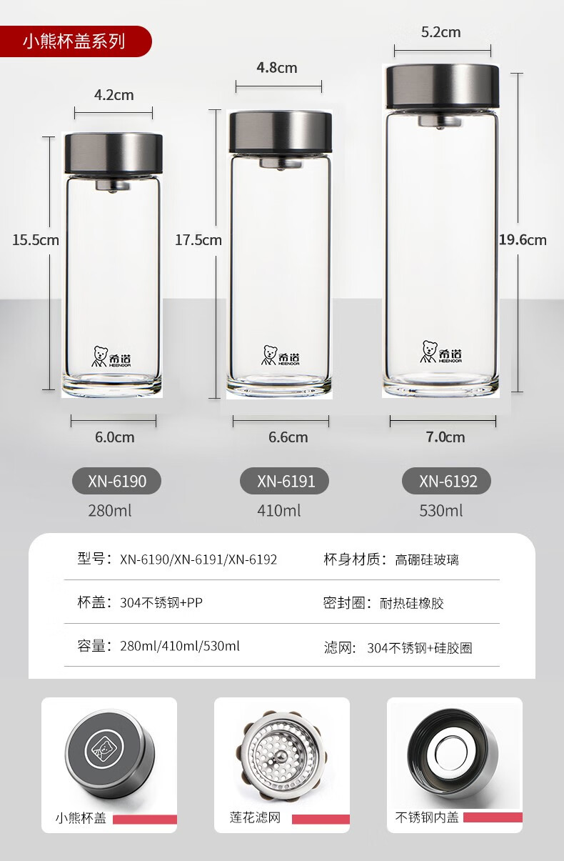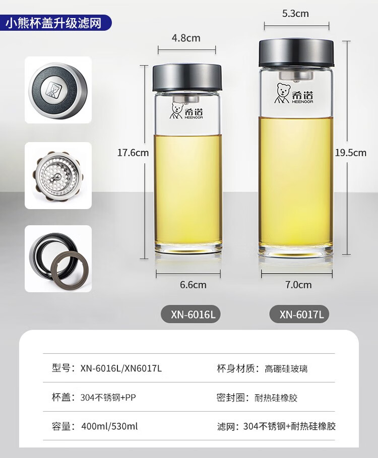 Xino einschichtiges Glas verdickter Business-Auto-Wasserbecher neue tragbare hitzebeständige transparente Teetasse für Herren xn6191-410 ml neuer Bärendeckel mit Filter