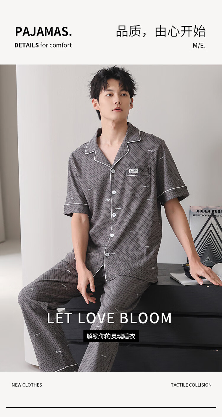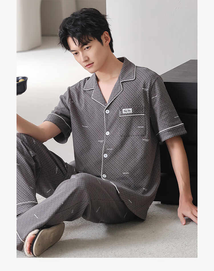 男士睡衣春秋款长袖休闲家居服大码套装 N9857 180 XL