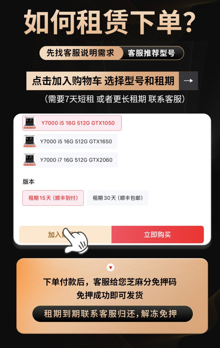 Deposit-free rental of Lenovo Rescuer, rental of game laptop, computer rental, long-term rental, short-term rental, editing, business office, 95 new Y7000 i5 16G 512G GTX1050, 7-day rental period