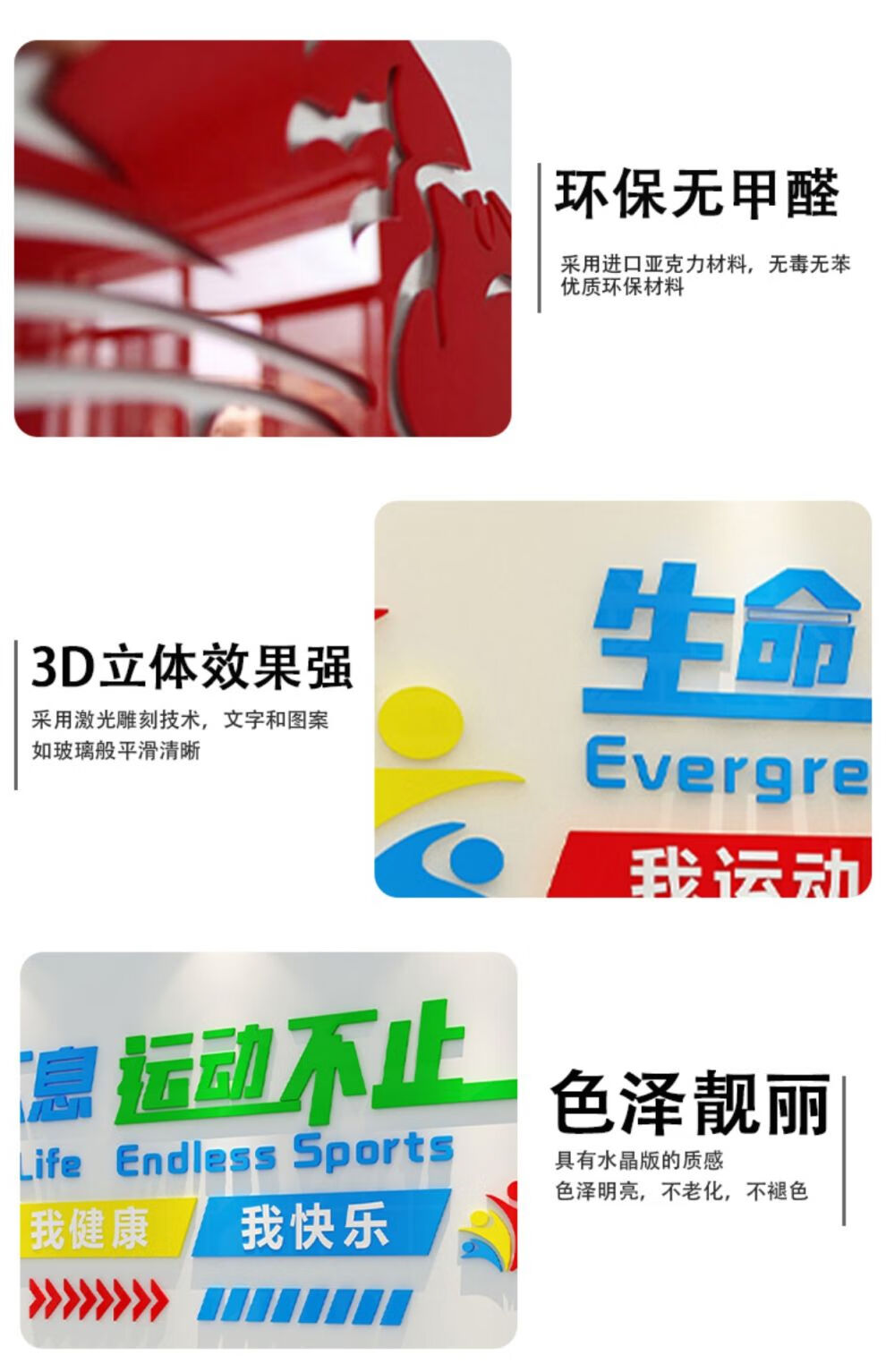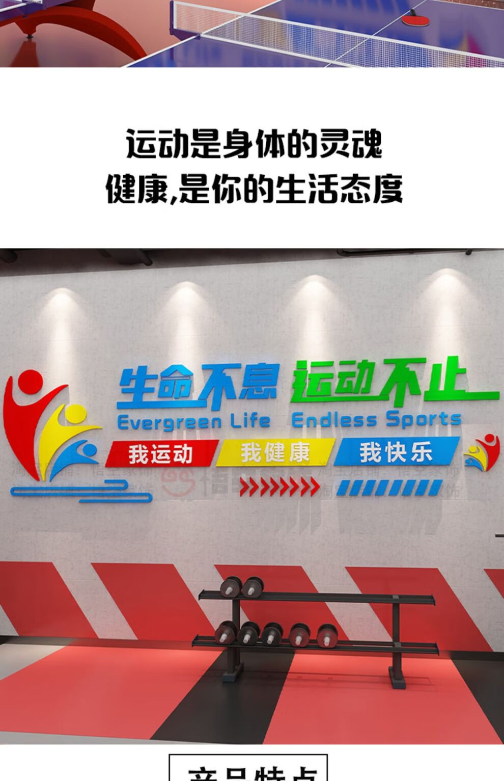 Peinture décorative de placage de mur de culture sportive affiche de salle de tennis de table intérieure en trois dimensions 3D thème de slogan inspirant 16851 la vie ne s'arrête pas_les sports ne s'arrêtent pas-Zhonghuang + tian small