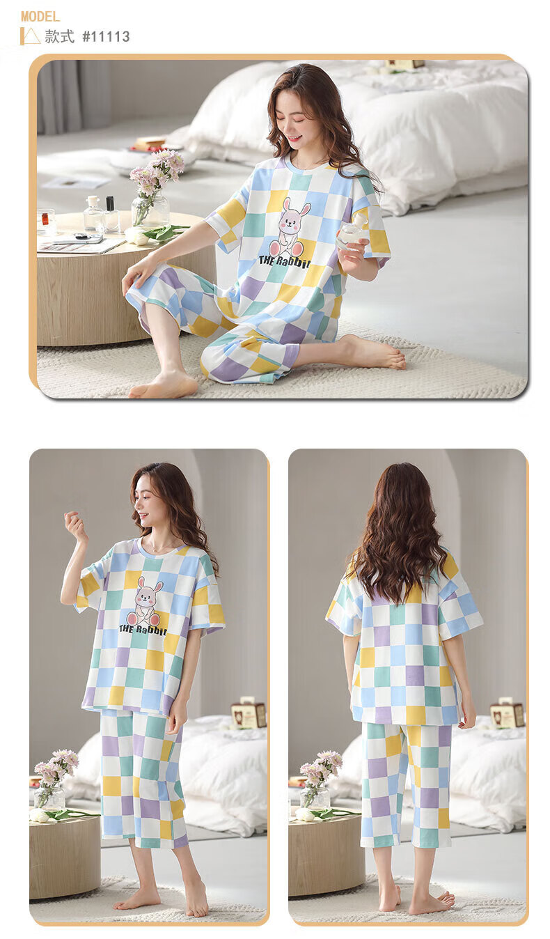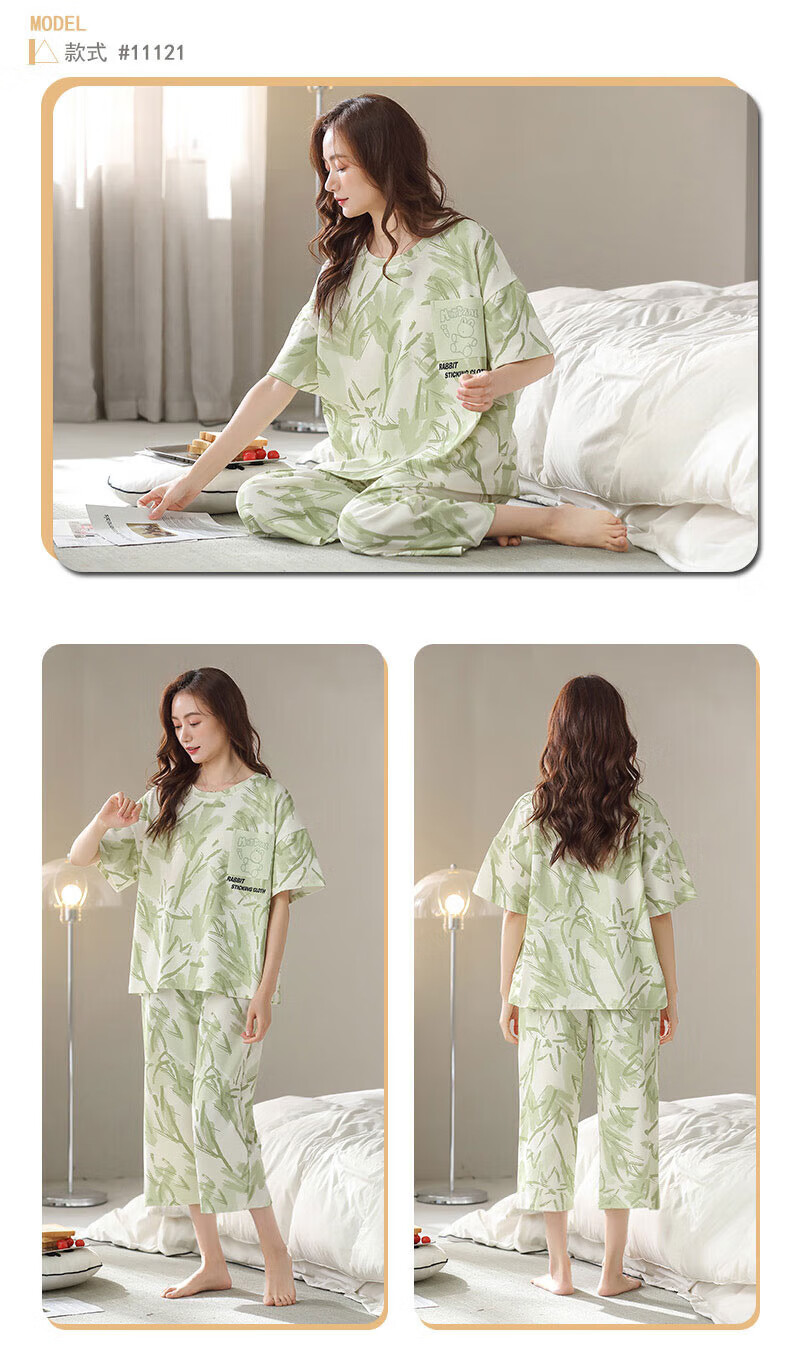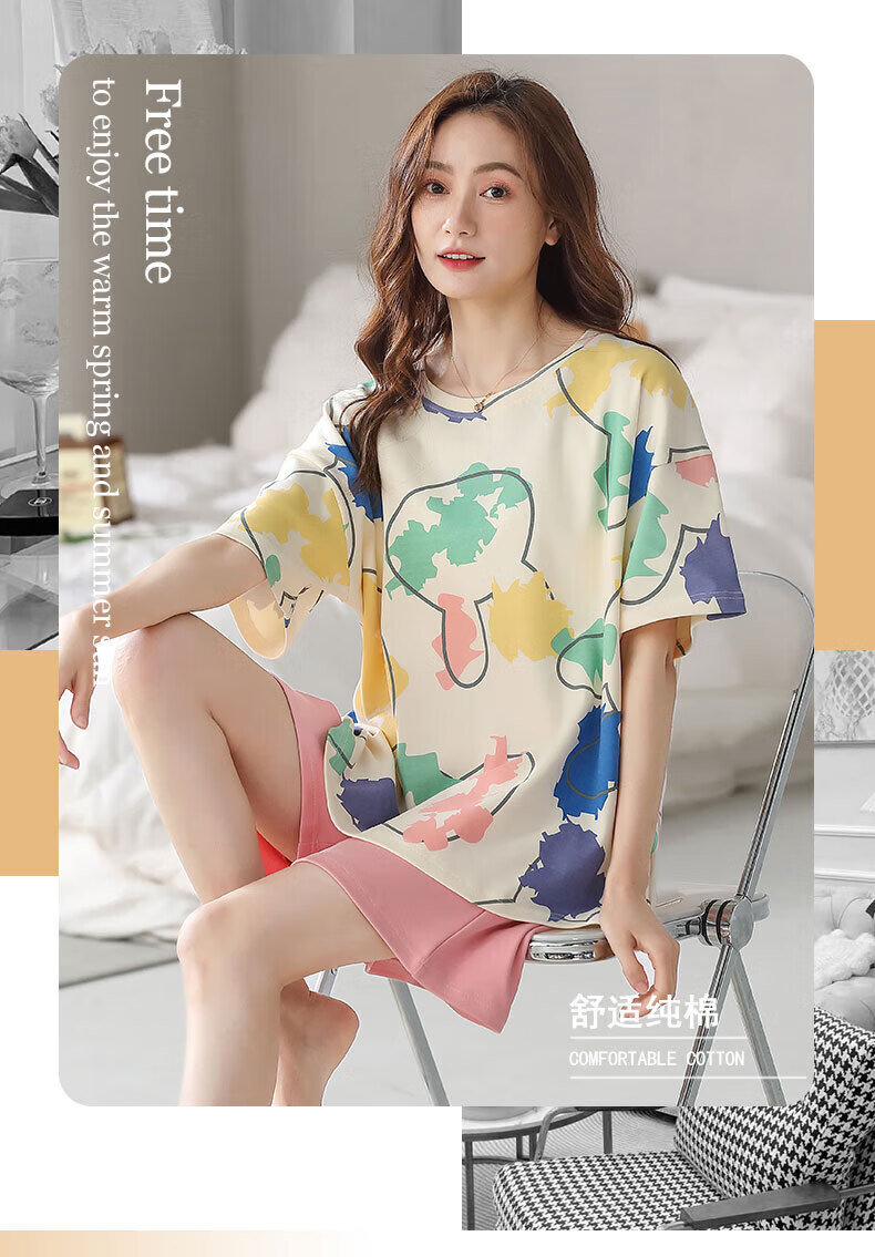 PurCotton全面时代2025年新款睡衣女夏季纯棉短袖两件套夏天条纹家居服 yzt9859 M  女款建议80100斤