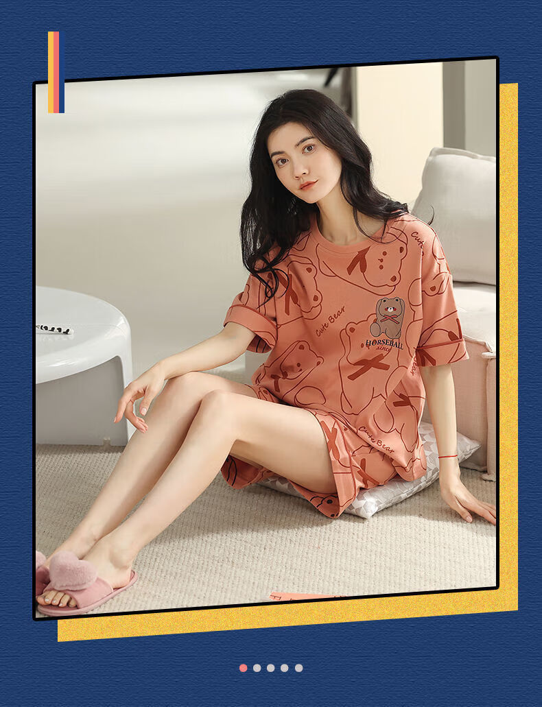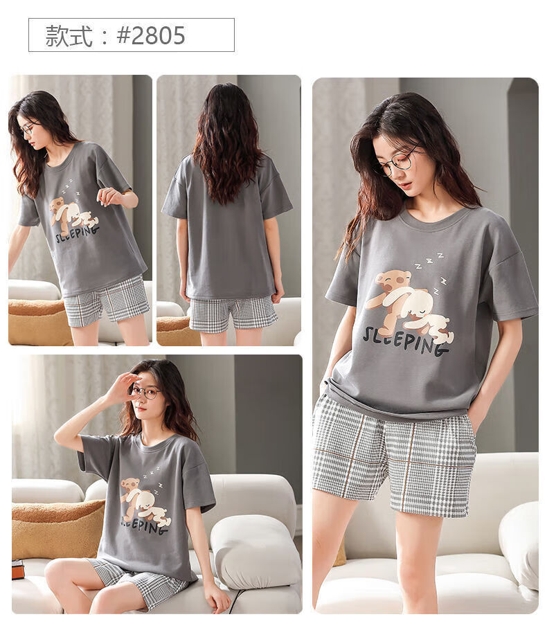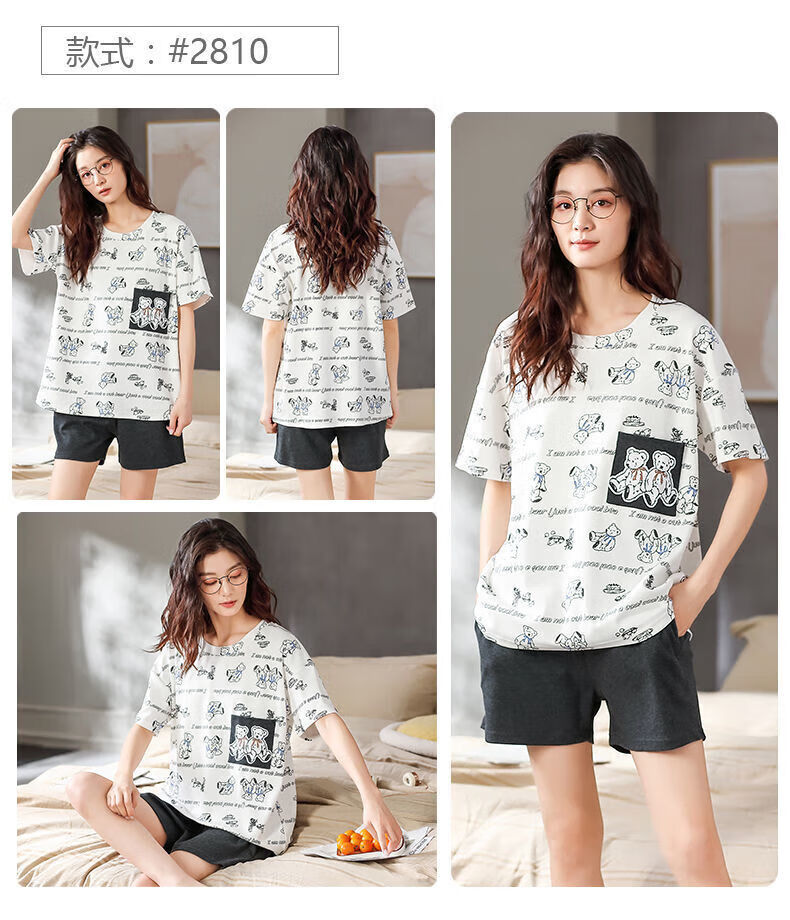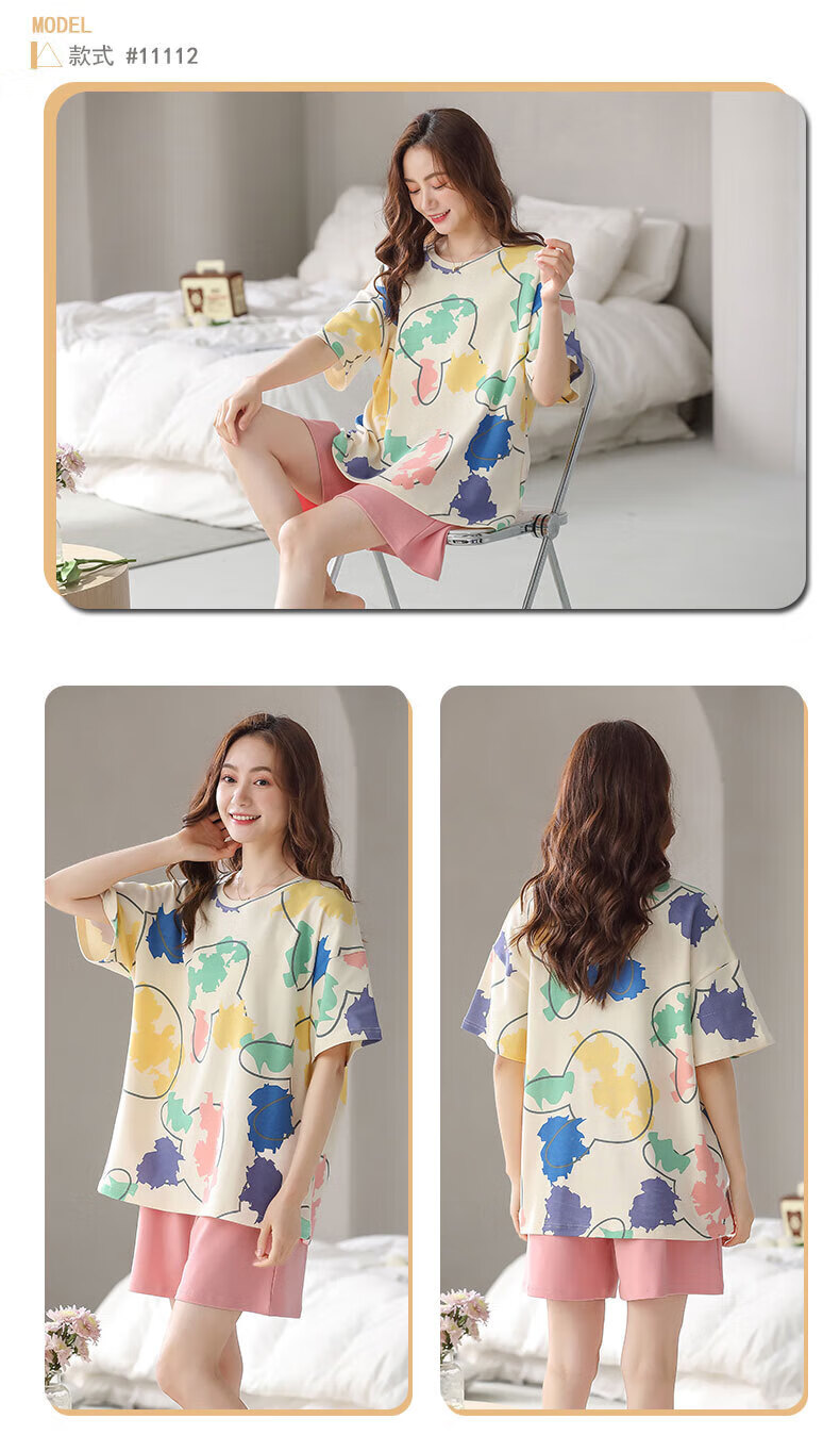 PurCotton全面时代2025年新款睡衣女夏季纯棉短袖两件套夏天条纹家居服 yzt9859 M  女款建议80100斤