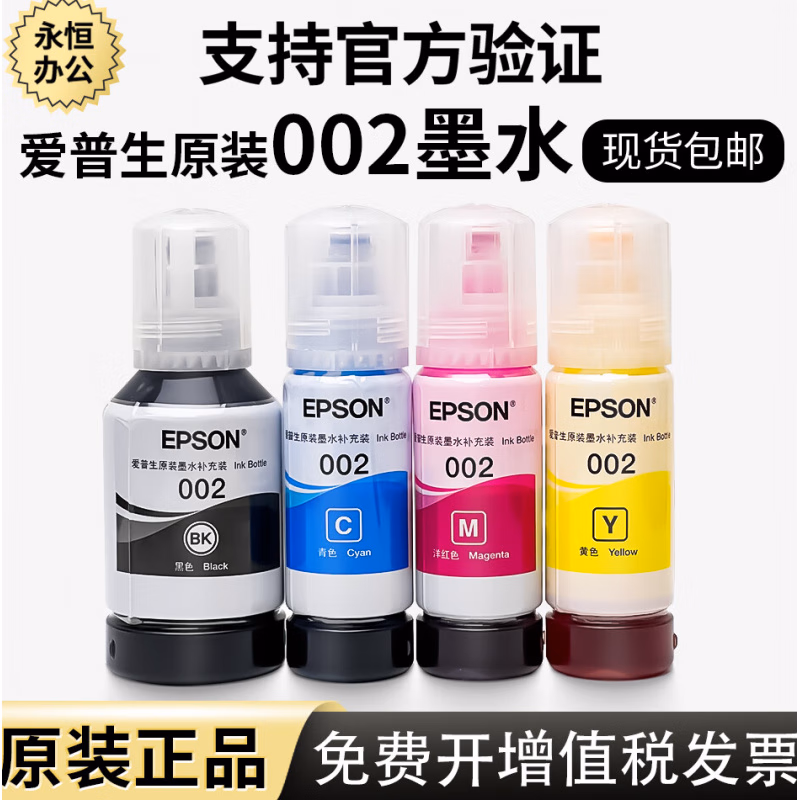 爱普生002墨水原装l4168l4269l4266l6178l6189l4169l4268打印 黑色官方验证
