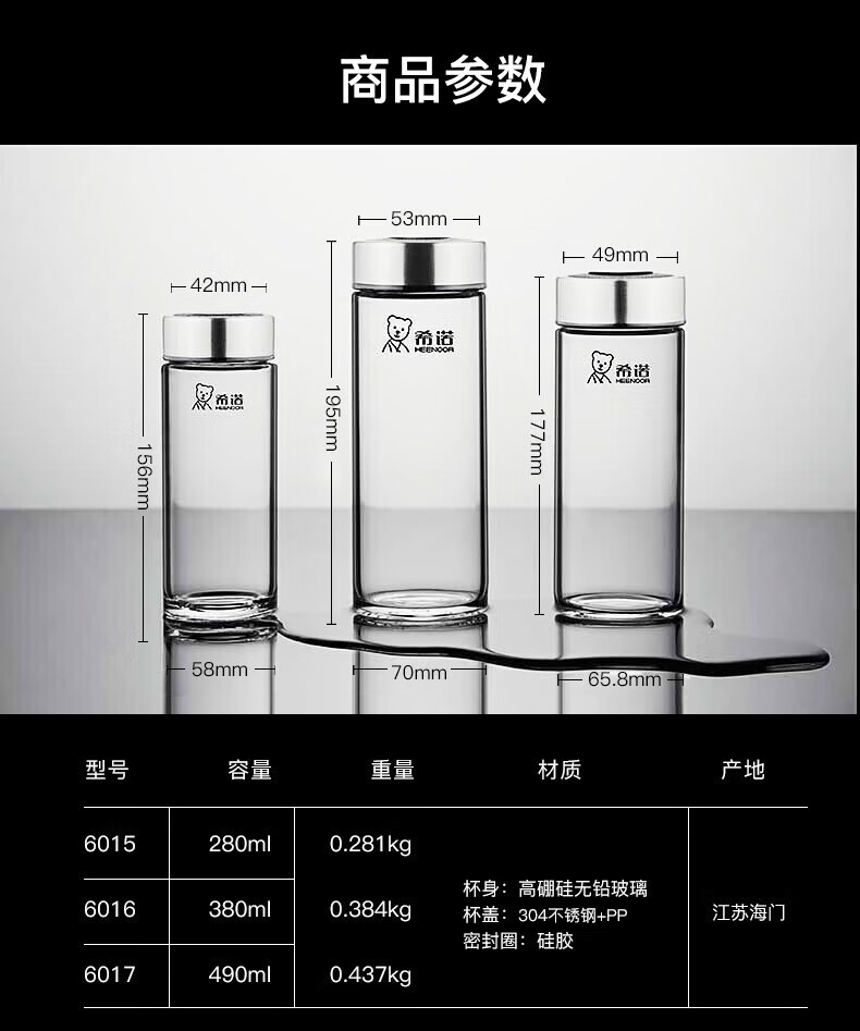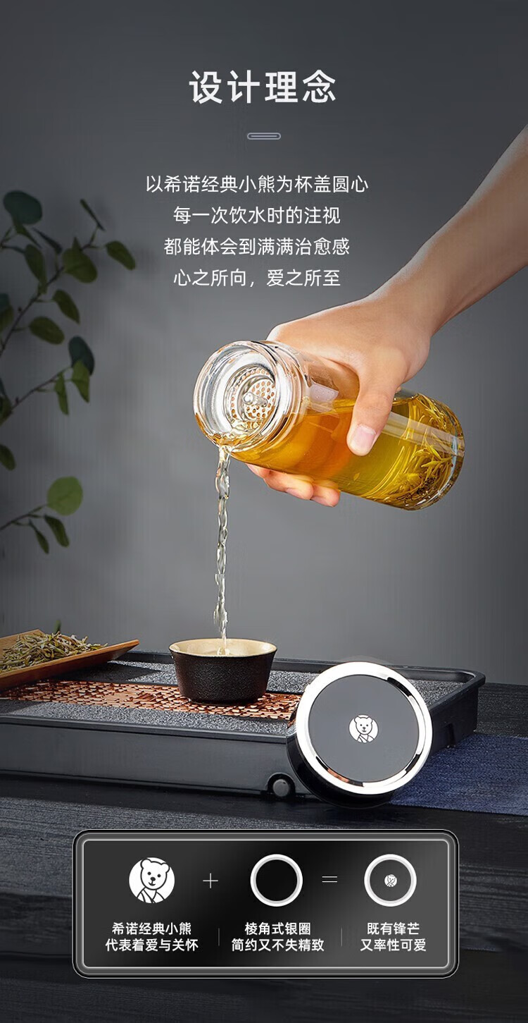 希诺(heenoor)官方舰旗店希诺单层玻璃杯便携加厚耐热水杯简约家用大容量泡茶杯 提环杯盖-695ml-大容量 带滤网