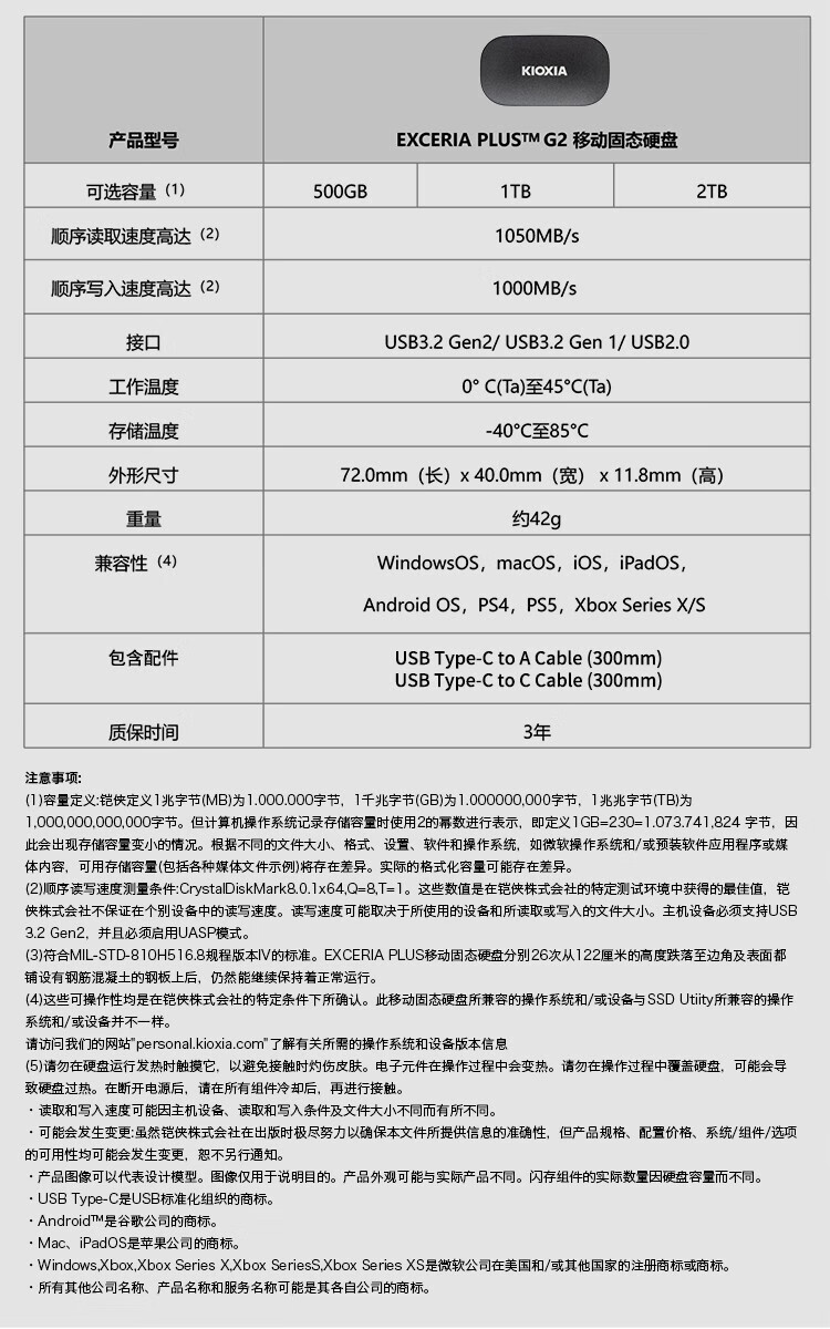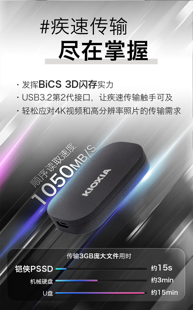 铠侠(Kioxia) Nvme 移动固态硬盘 (PSSD)XD20 XD10极至光速 传输速度1050MB/S XD20 2TB 标配