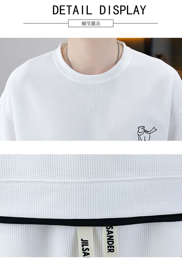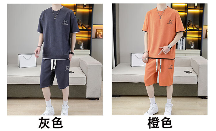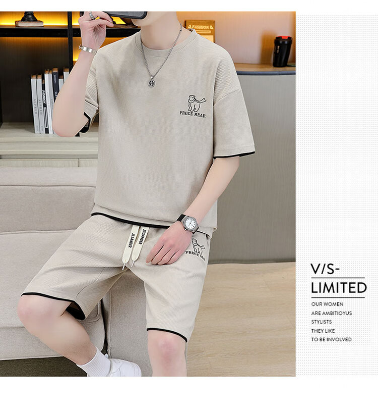 罗蒙休闲运动套装男士华夫格夏季短裤男搭配透气短袖T恤男装套装 【套装】6182灰 3XL (建议175-195斤)