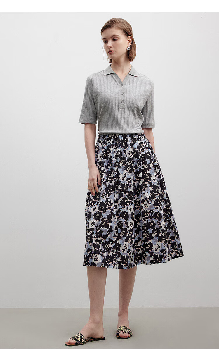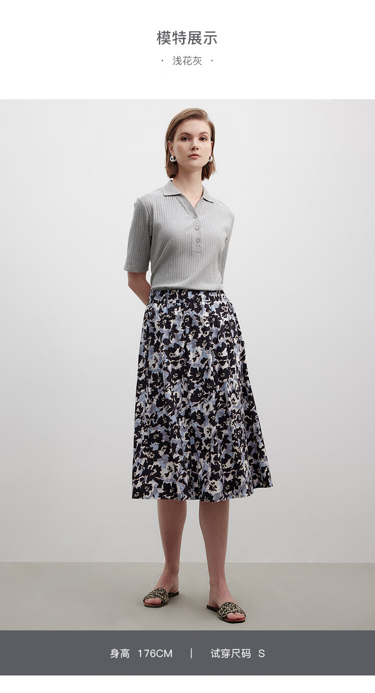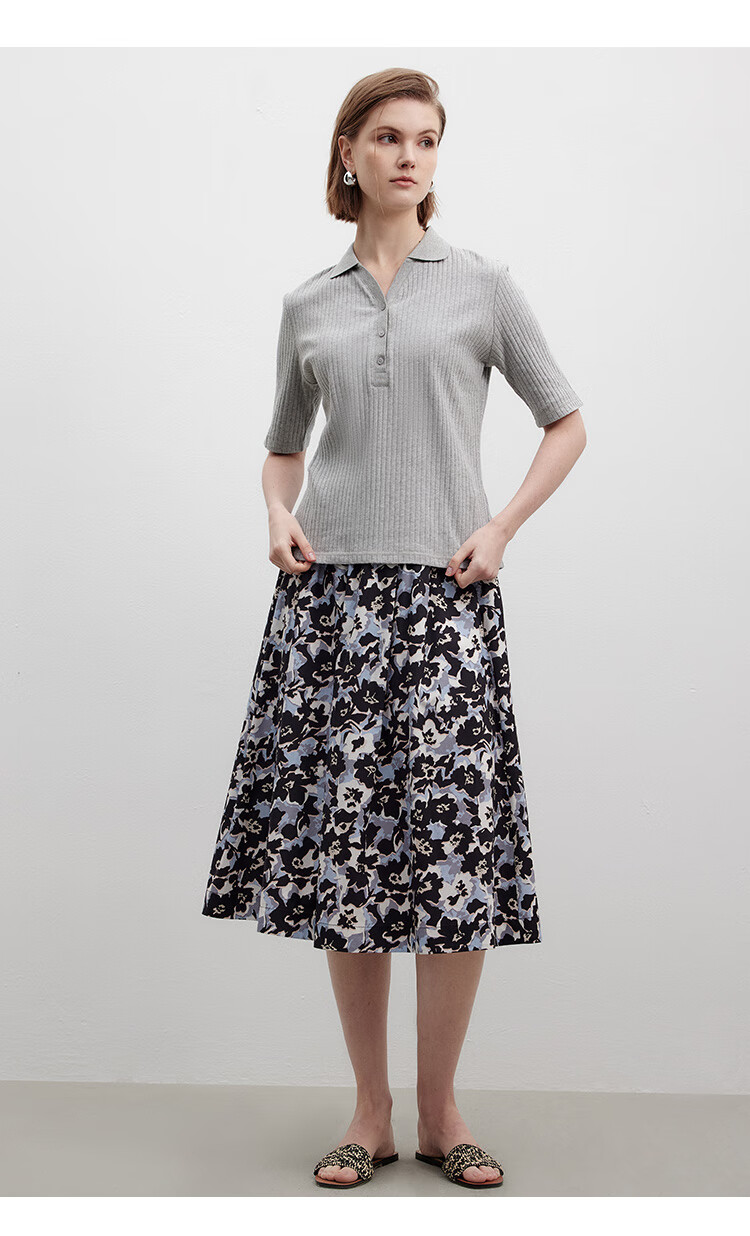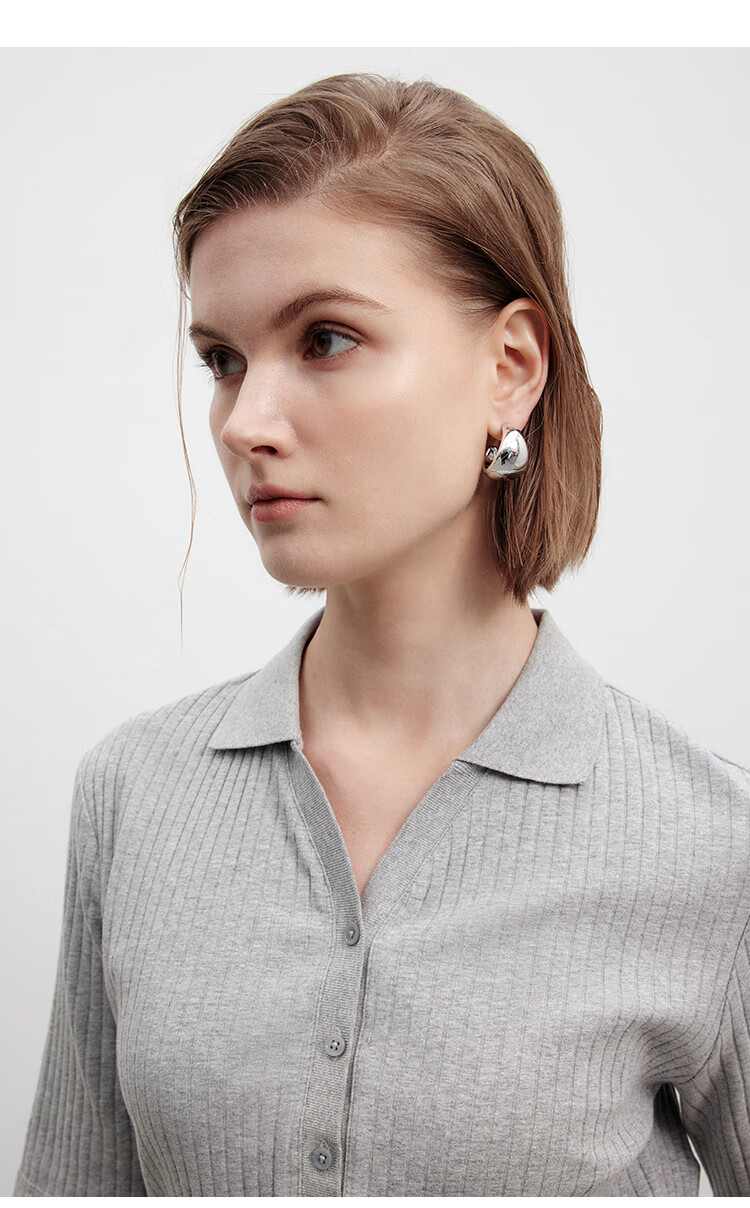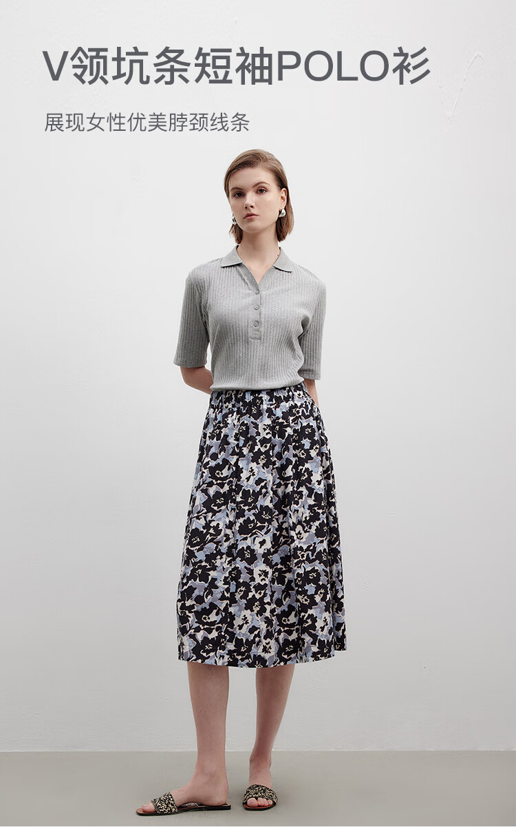 Marc O Polo/MOP printemps et été nouveau pull slim à manches courtes col en V pour femme, haut col polo simple et léger, gris fleuri clair 962 S /165