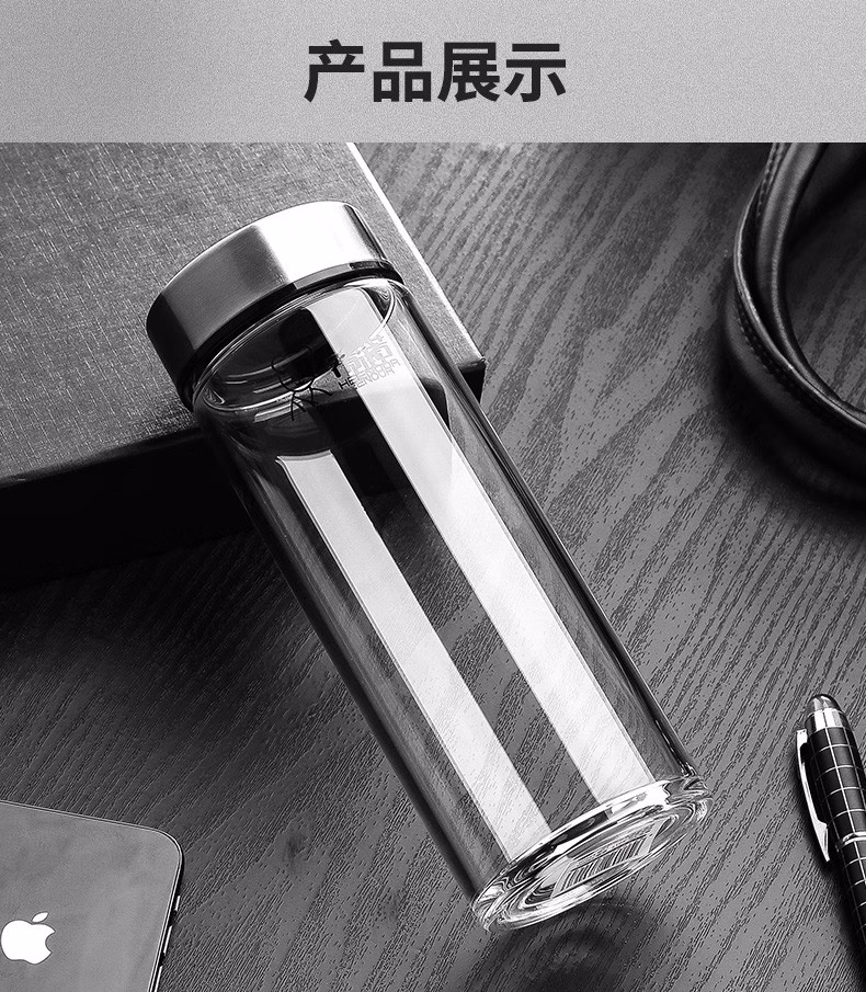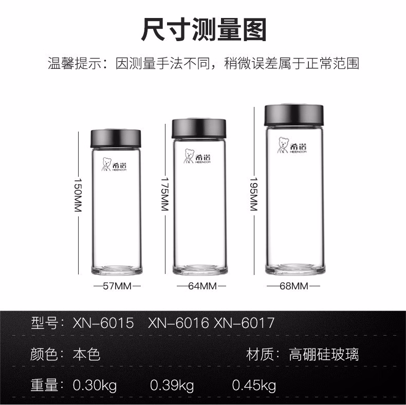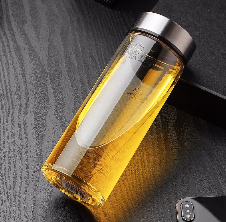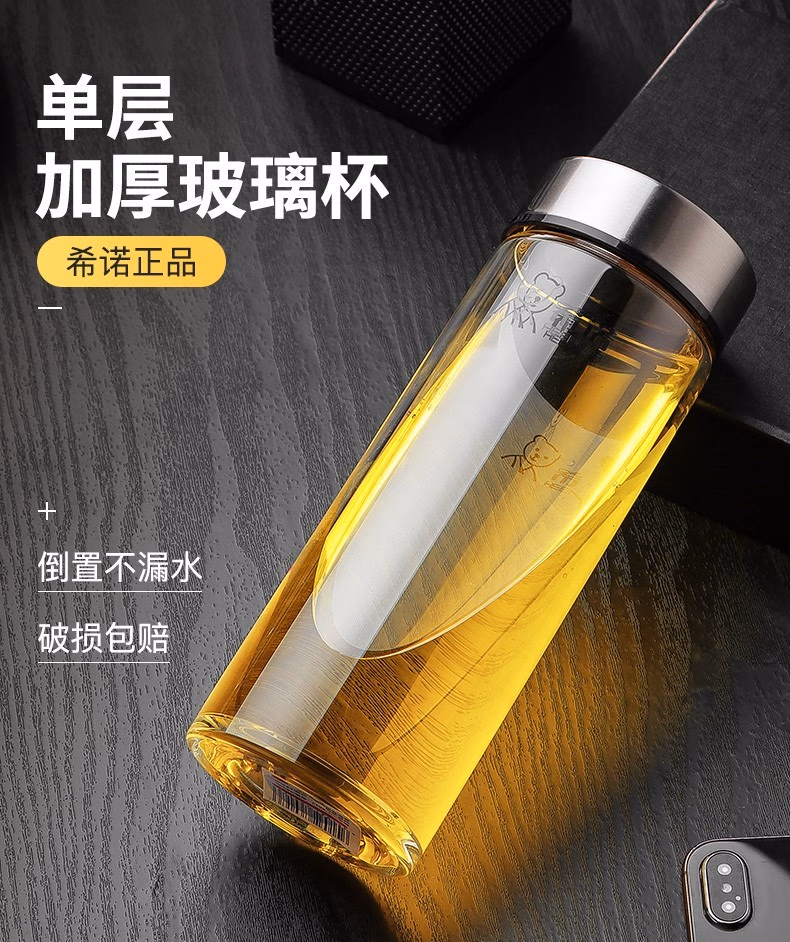 Taza de agua transparente portátil resistente al calor de vidrio de una sola capa Xino para hombres y mujeres XN-6015/601 6191 color verdadero 410 con red de té 0 ml