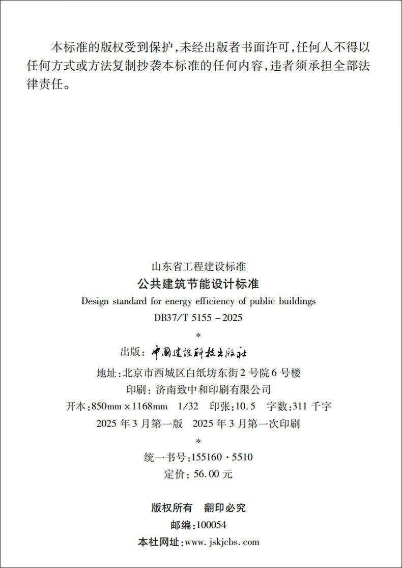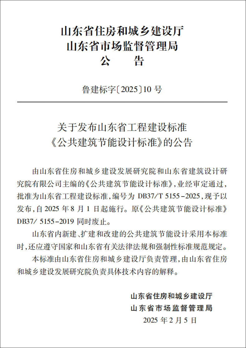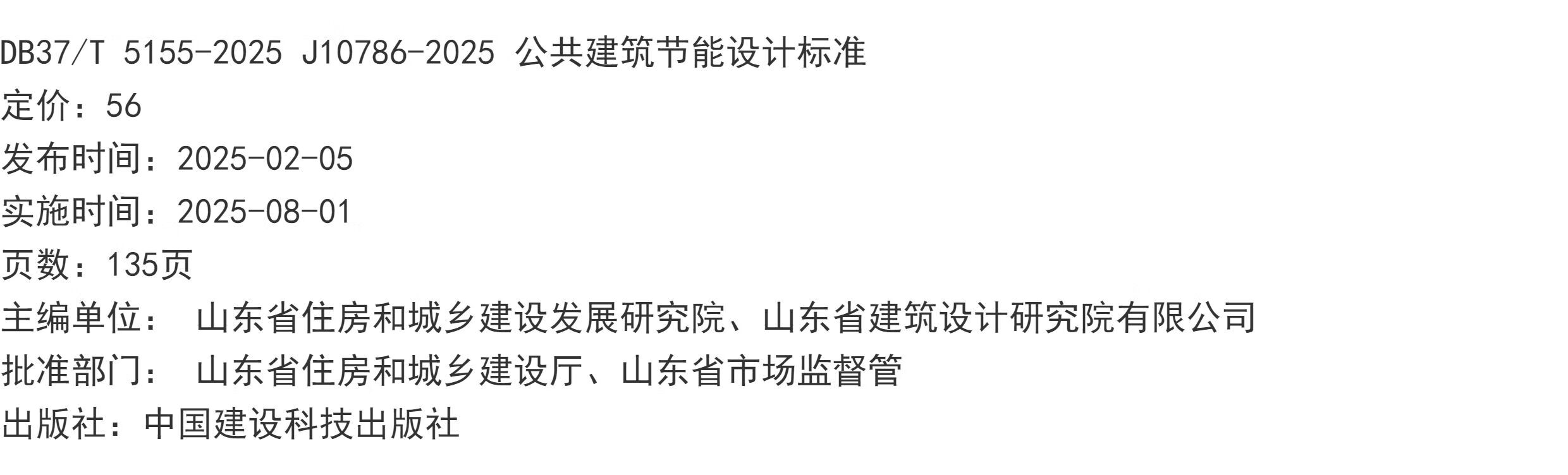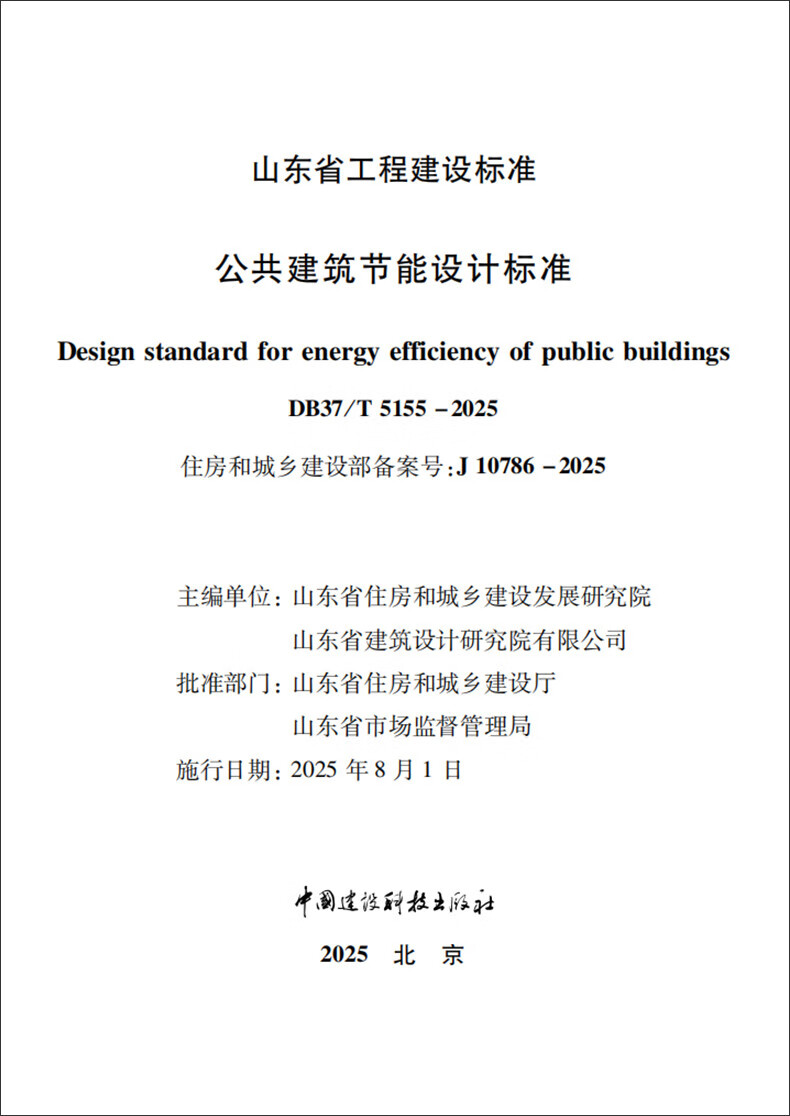 Shandong Provincial Engineering Construction Standard DB37/T 5155-2025 J10786-2025 Public Building Energy Saving Design Standard Replaces DB37/5155-2019 Implemented on August 1, 2025