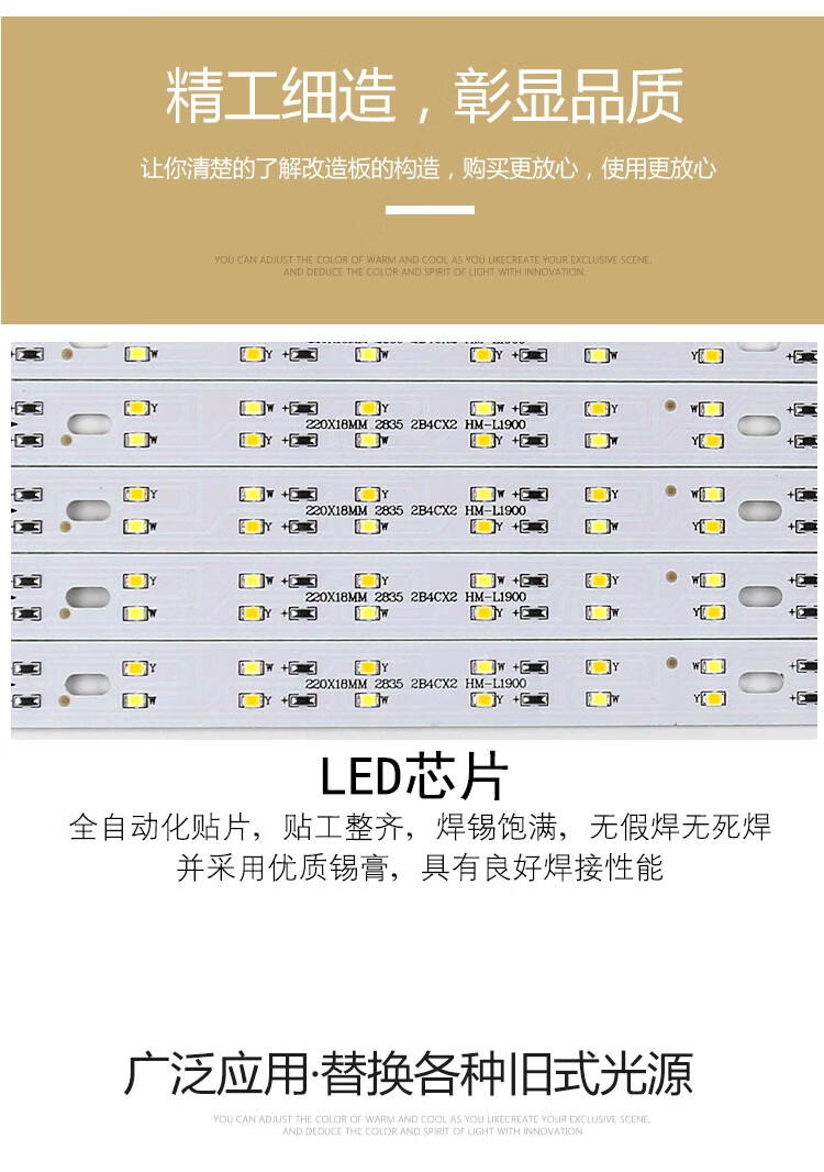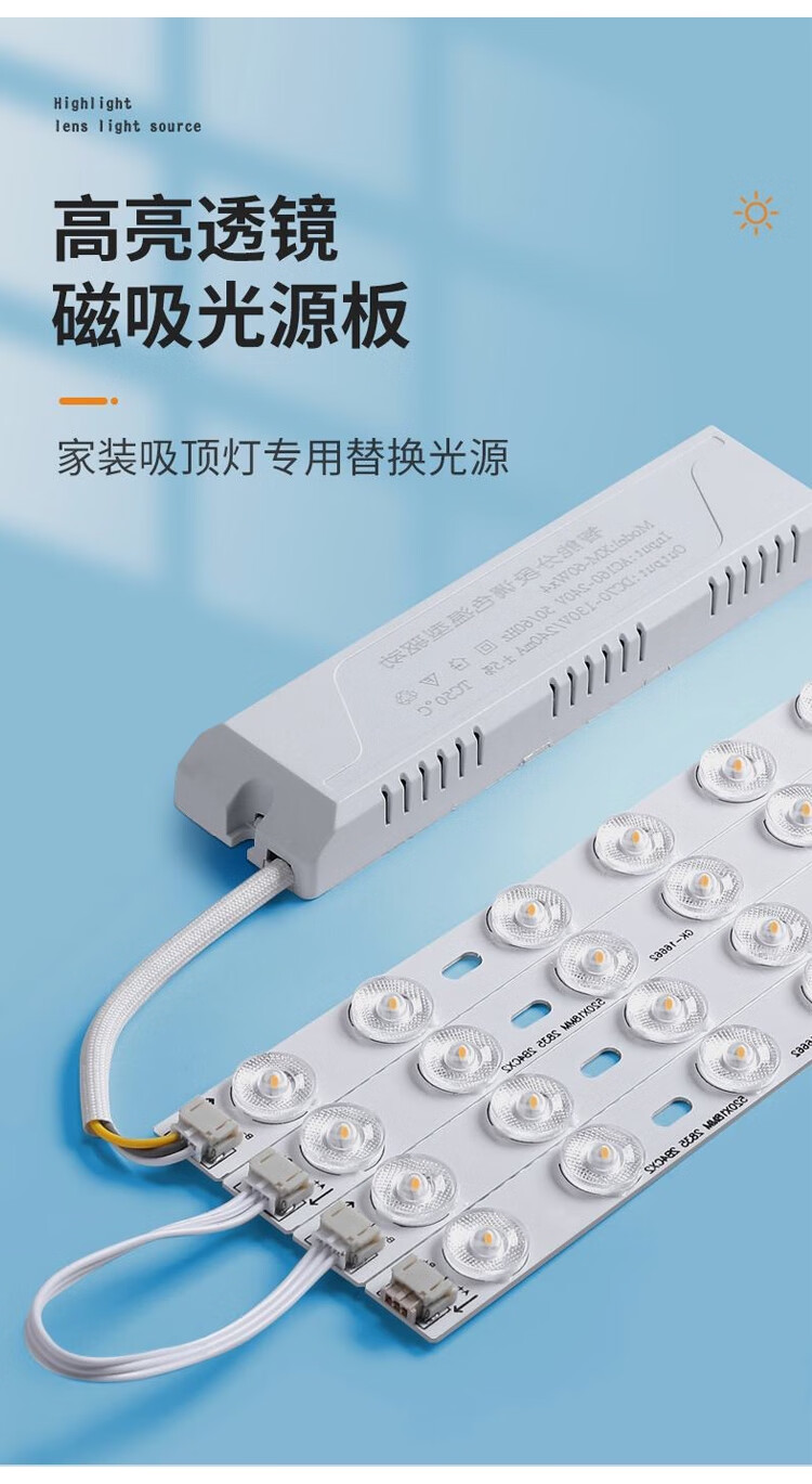 Pupan Tira de luz LED Sala de Estar Dormitorio Modificación de mecha de Techo Tira de lámpara de Repuesto Tablero de luz Largo Mecha Lente Fuente de luz Luz de Tres Colores para el hogar 695 mm 2 Tiras 40W Luz de Tres Colores