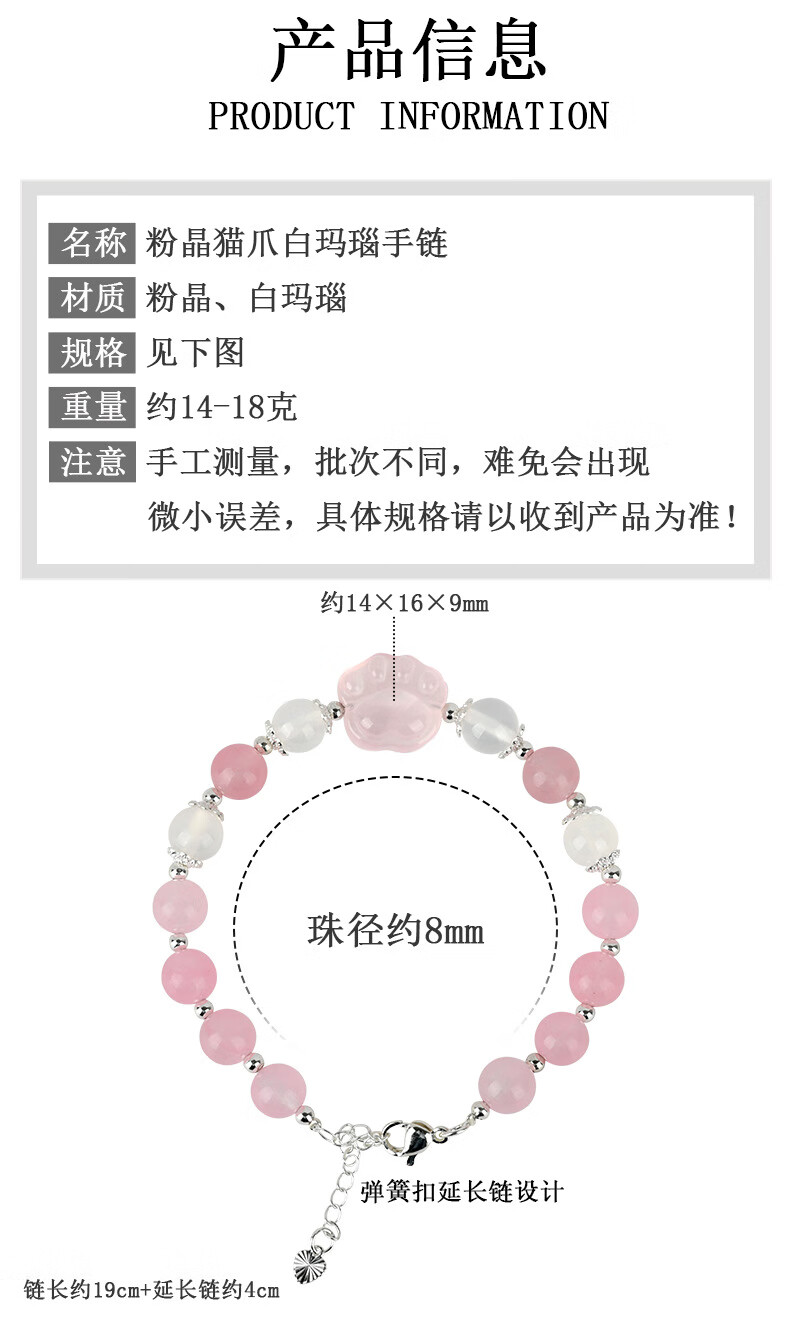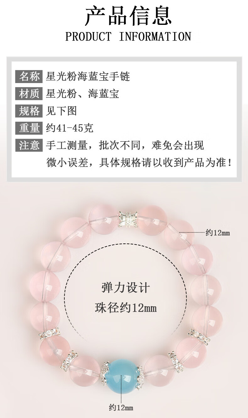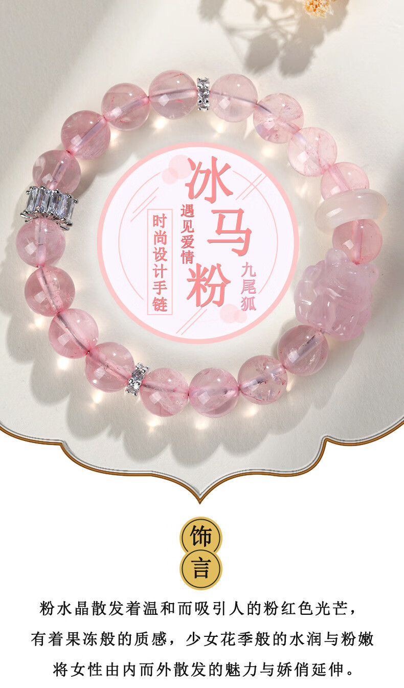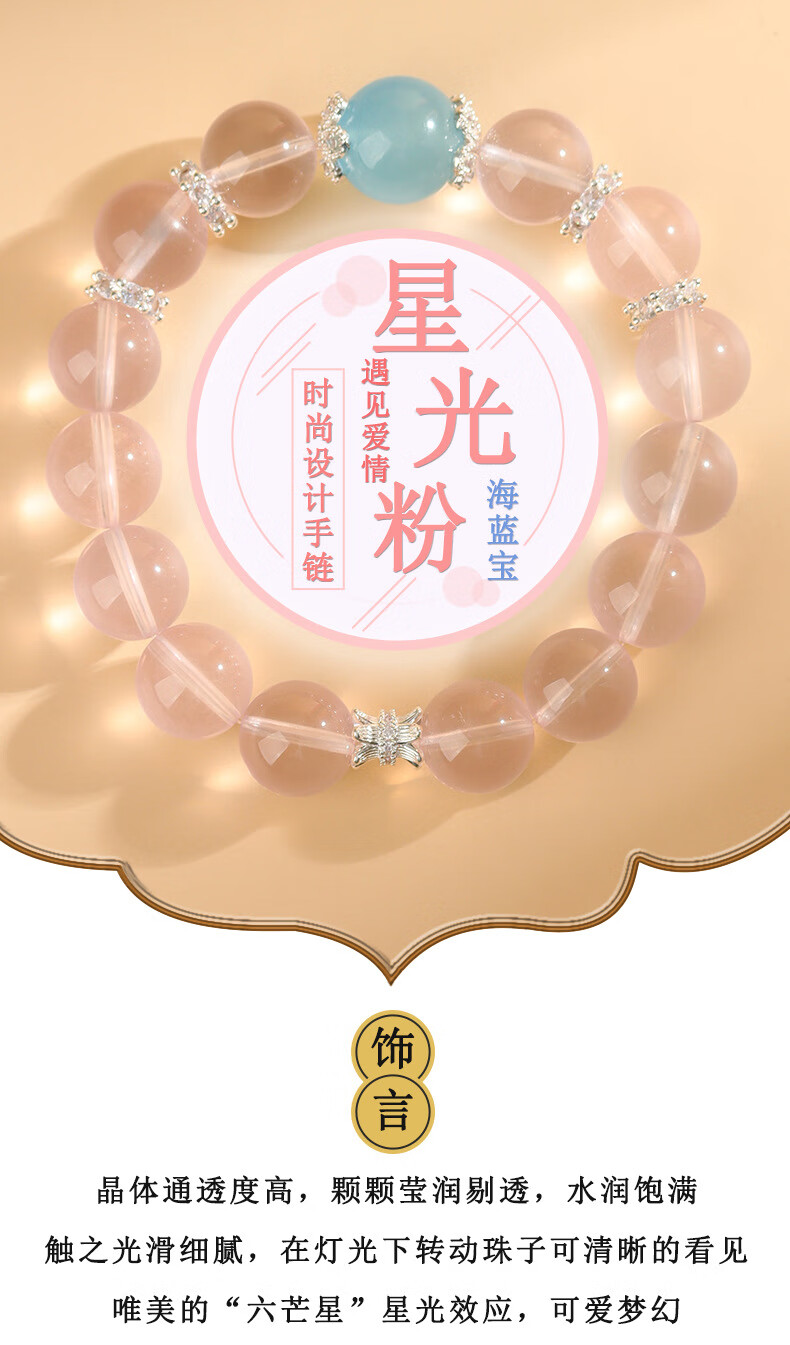 莫桑比克星光粉天然水晶海蓝宝手链粉晶猫爪九尾狐跑环白水晶手串 Z1479粉晶白水晶手链