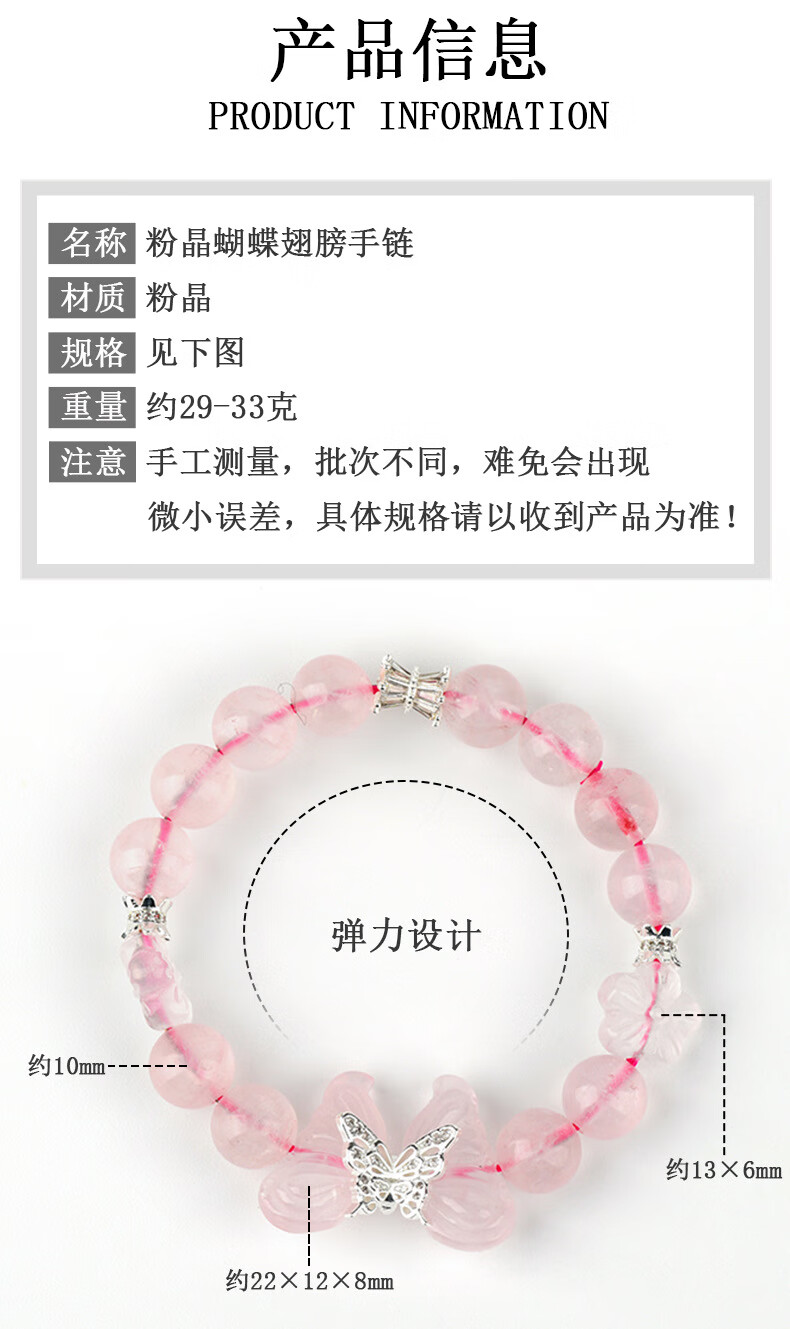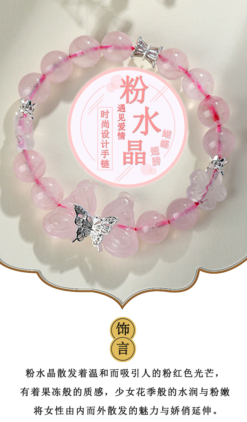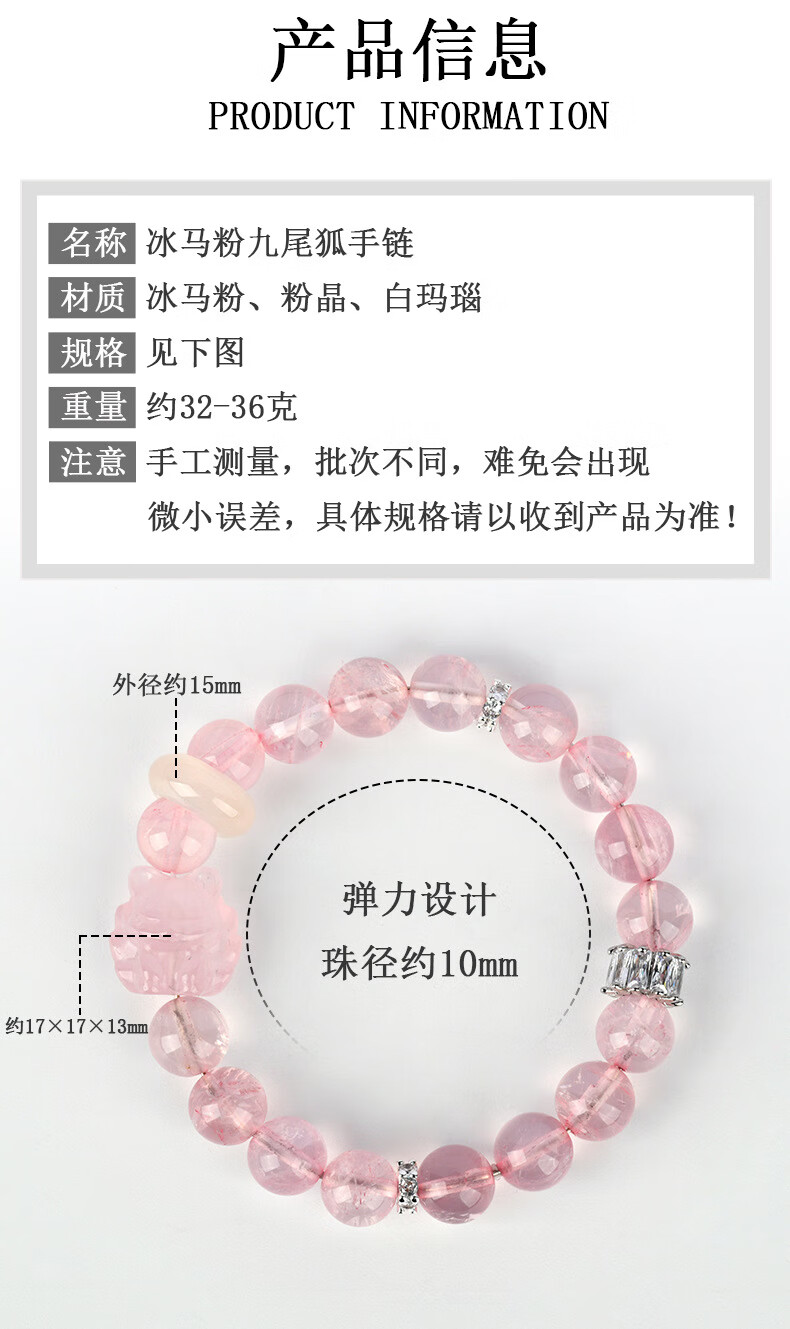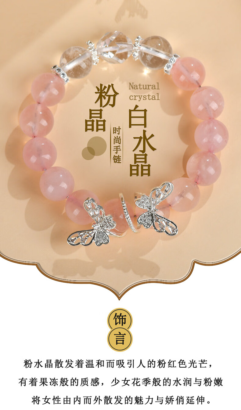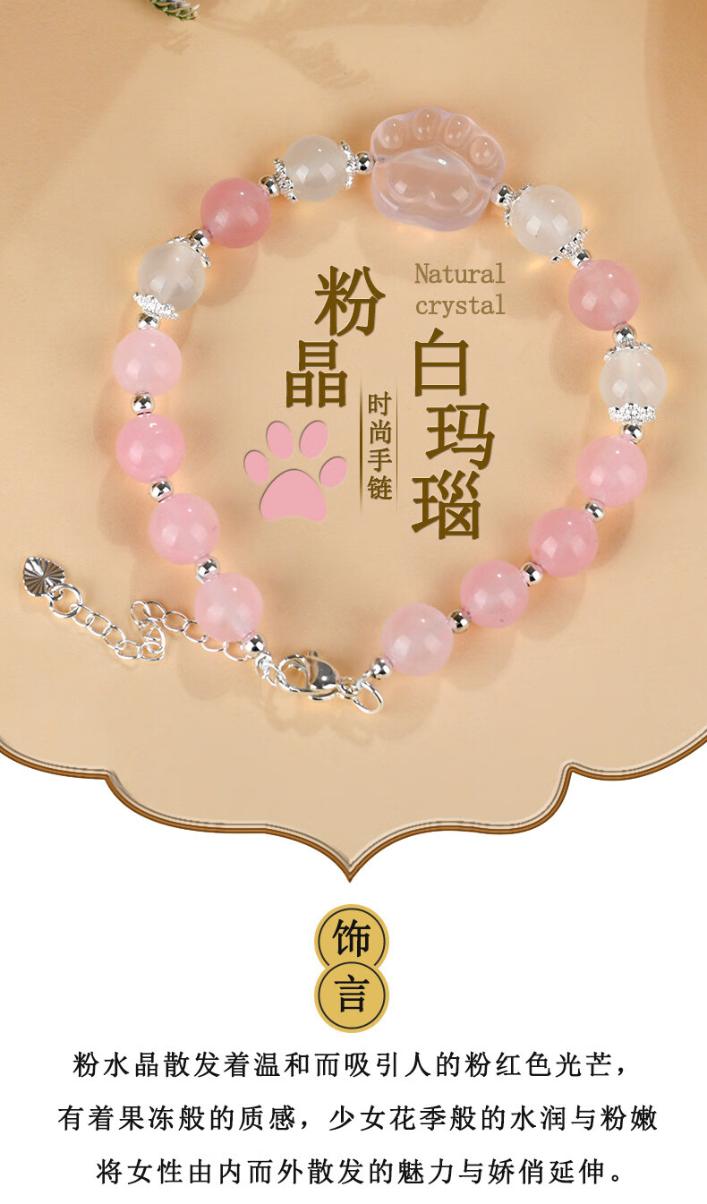 莫桑比克星光粉天然水晶海蓝宝手链粉晶猫爪九尾狐跑环白水晶手串 Z1479粉晶白水晶手链