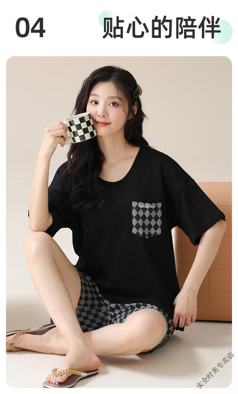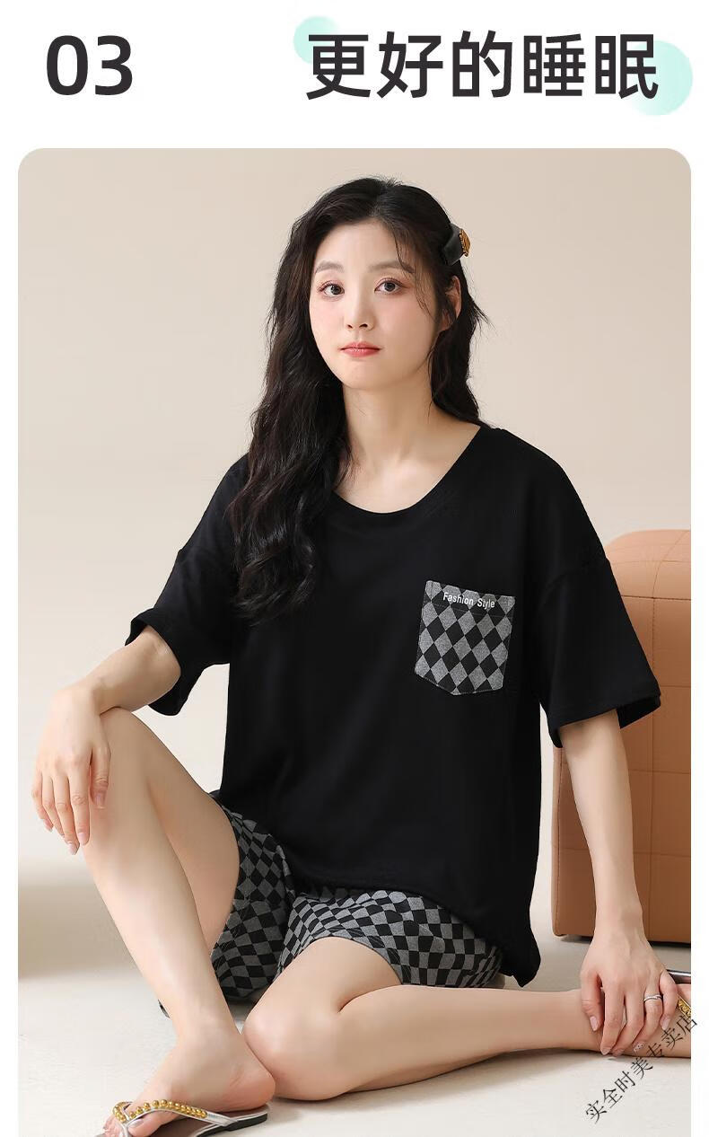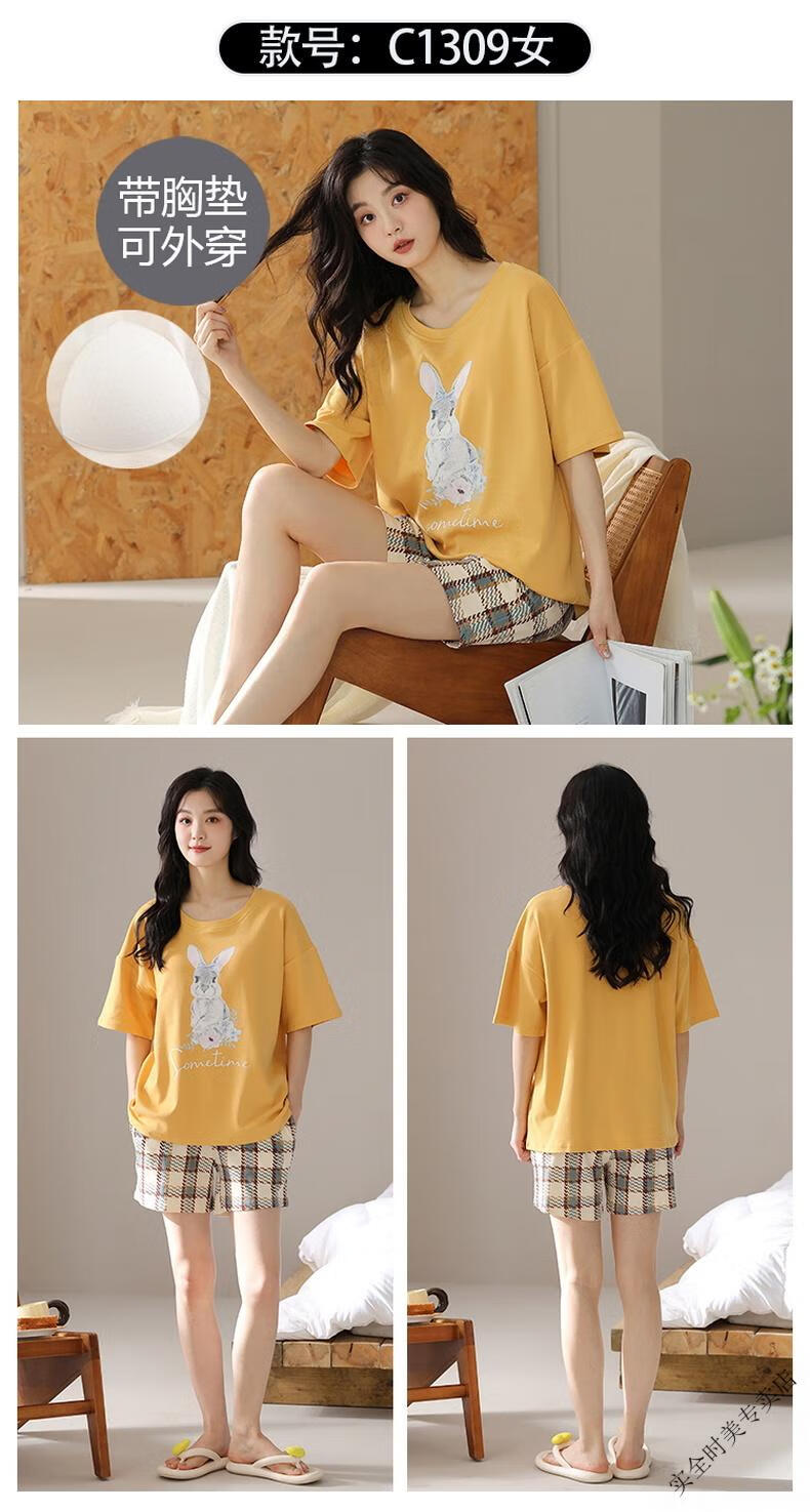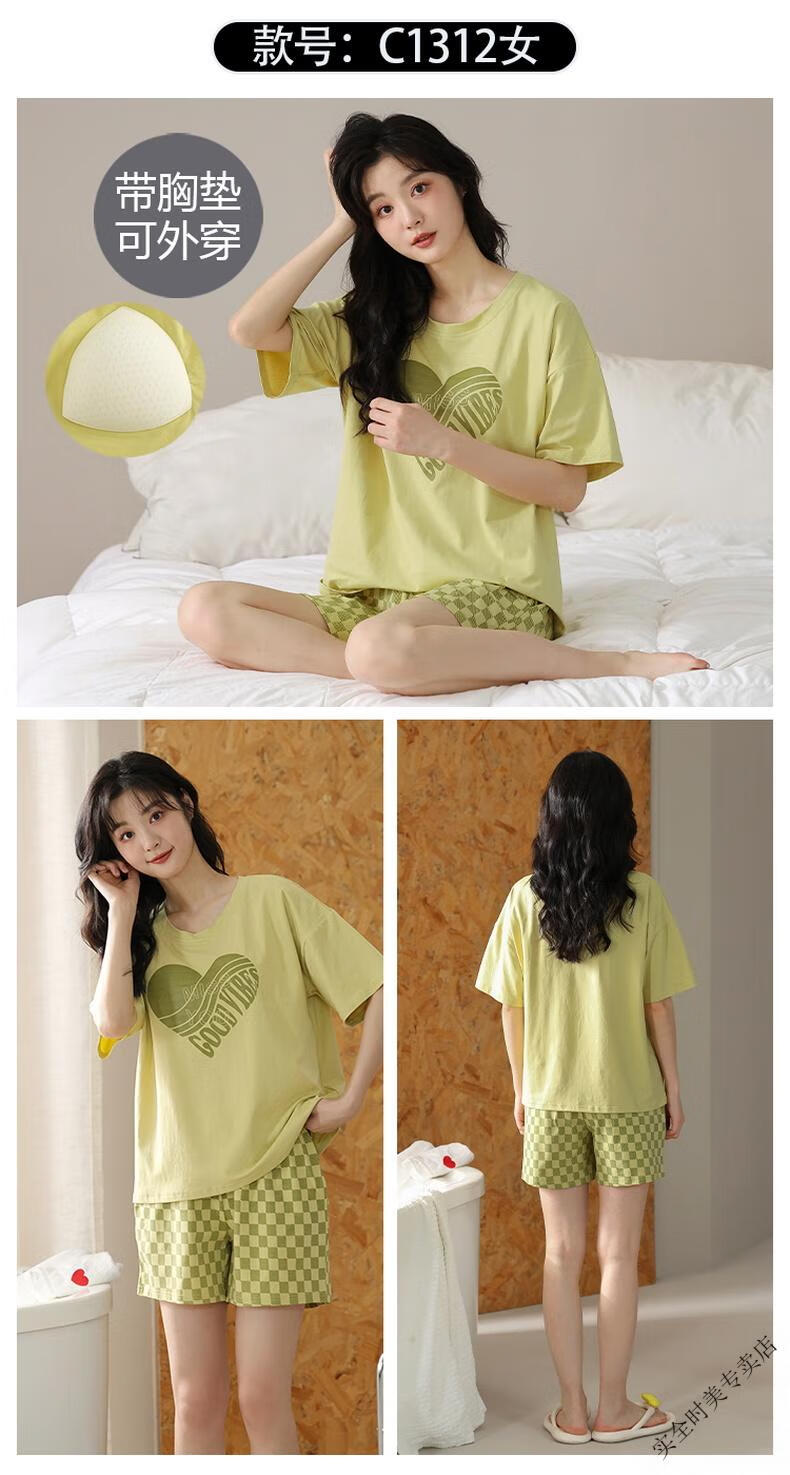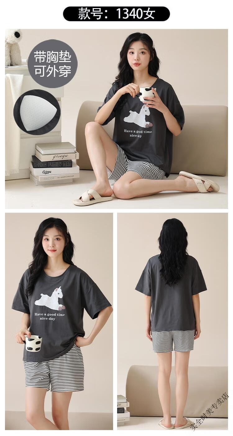 猫人(MiiOW)睡衣女纯绵防螨级短袖短裤带胸垫可外出夏天套装家居服 CKL-1355 【固定胸垫】 M 建议【80-100斤】