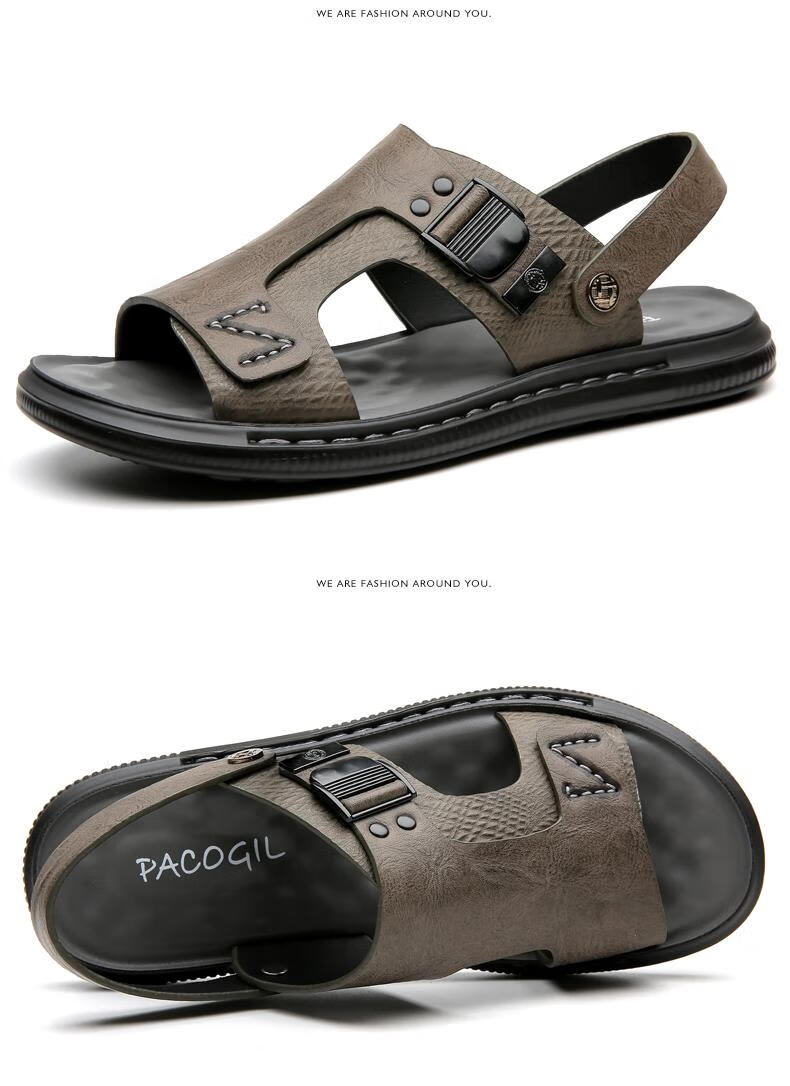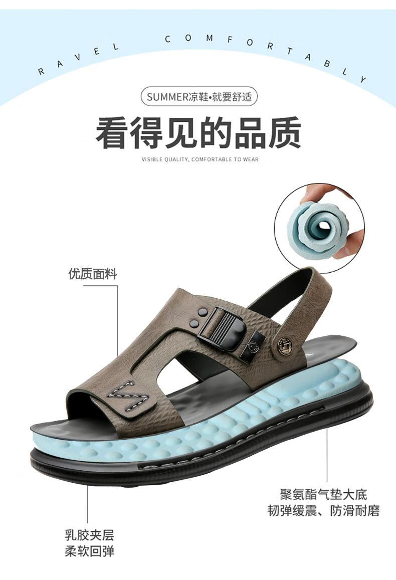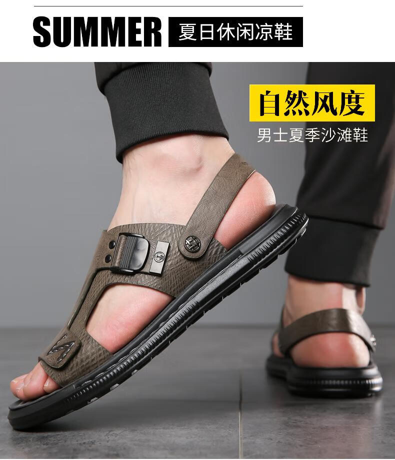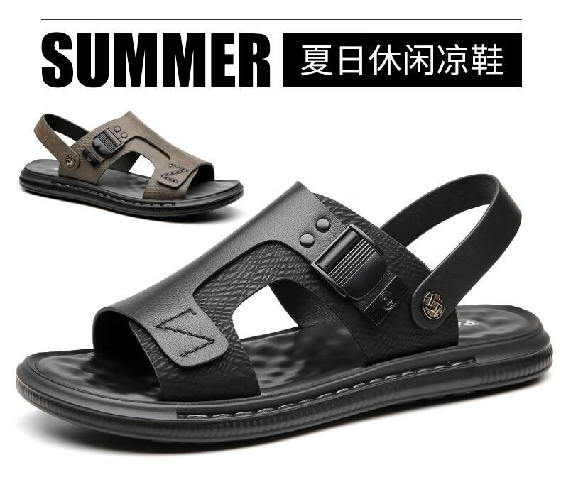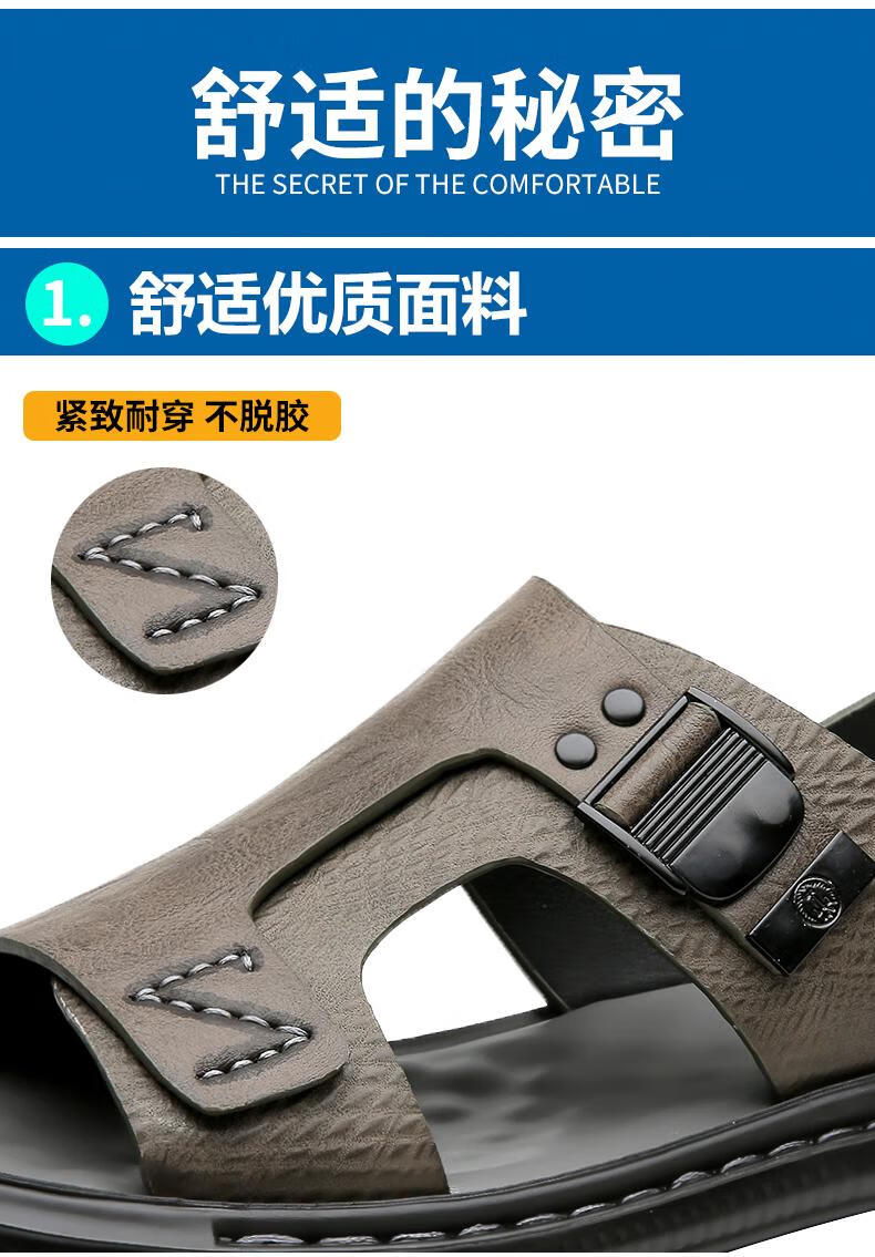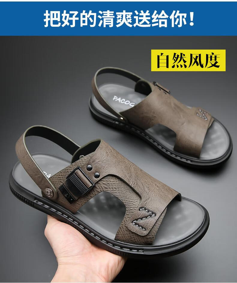 啄木鸟凉鞋男夏季2025新款透气男士真皮外穿休闲软底沙滩防水两用凉拖鞋 2306灰色 38