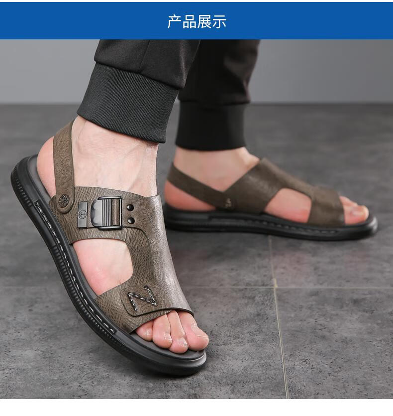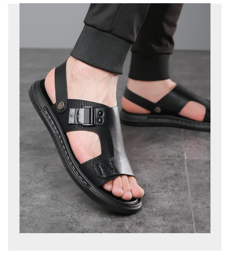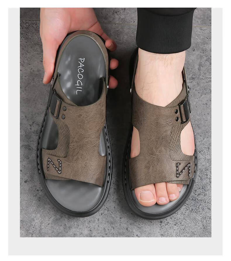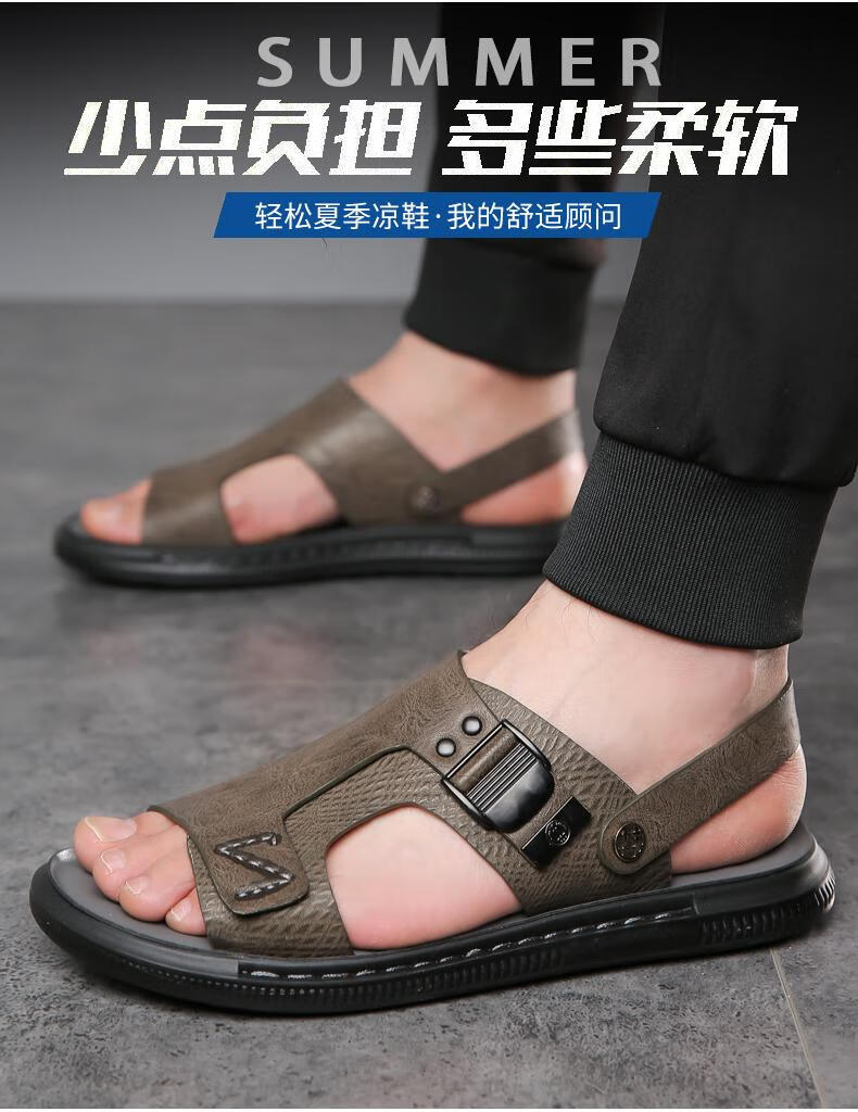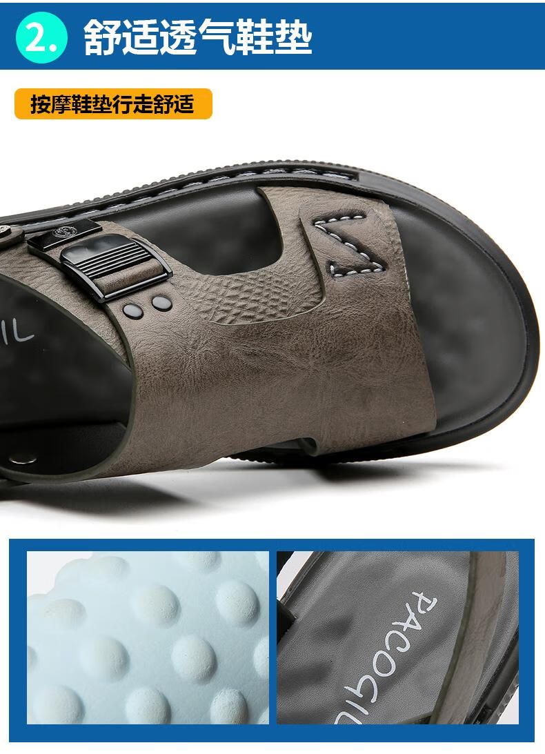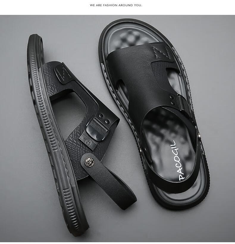 啄木鸟凉鞋男夏季2025新款透气男士真皮外穿休闲软底沙滩防水两用凉拖鞋 2306灰色 38