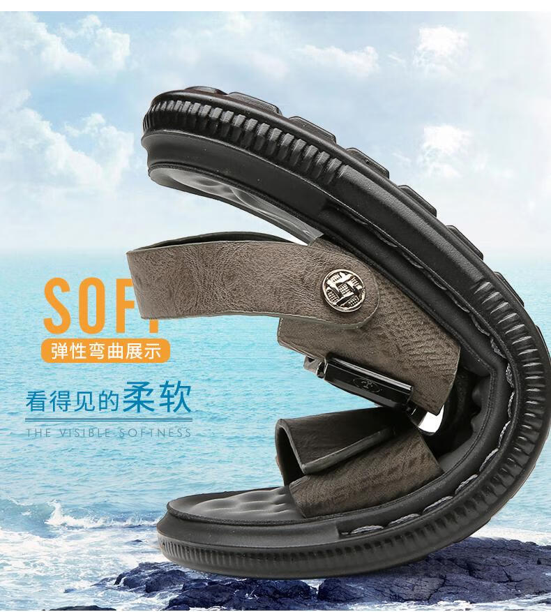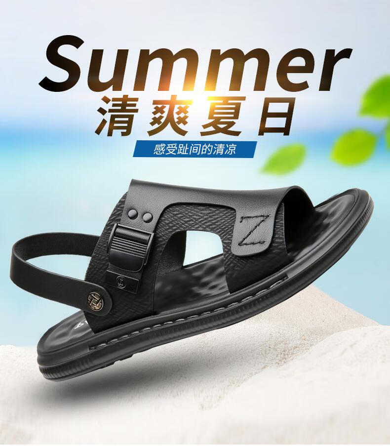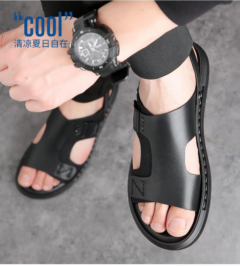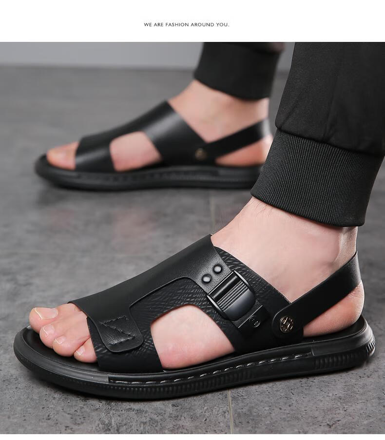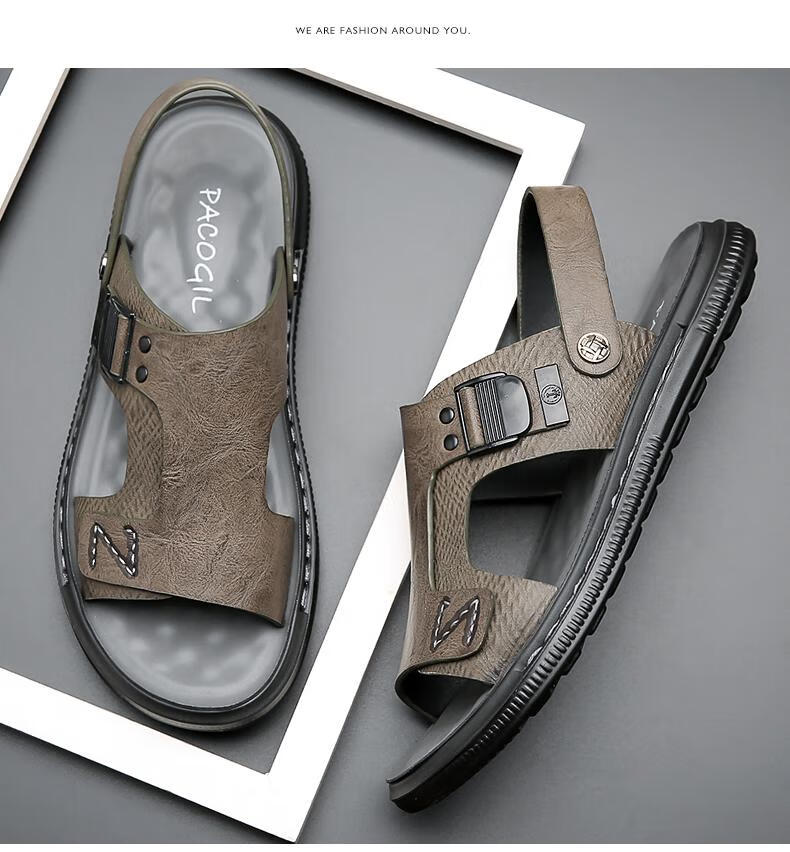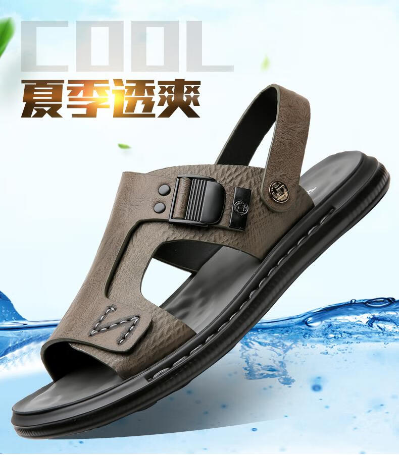 啄木鸟凉鞋男夏季2025新款透气男士真皮外穿休闲软底沙滩防水两用凉拖鞋 2306灰色 38