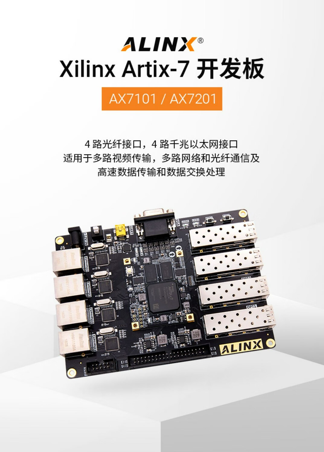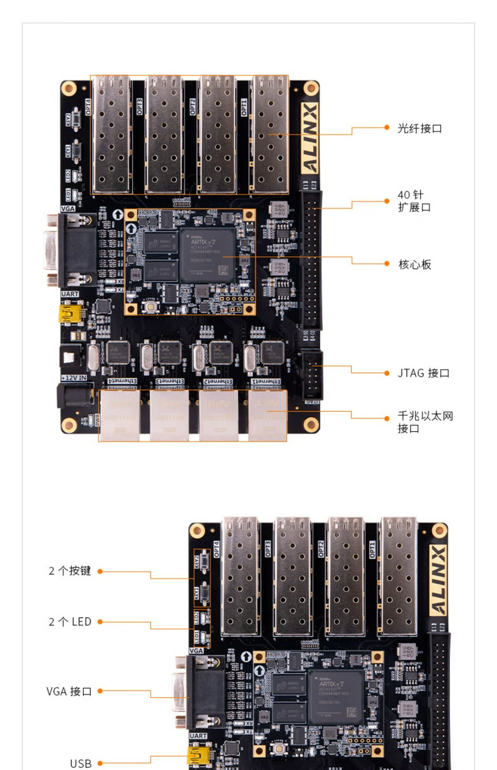 Carte de développement FPGA noir or A7 Artix7 Fiber Ethernet AX7101 XILINX AX7101 AN9767